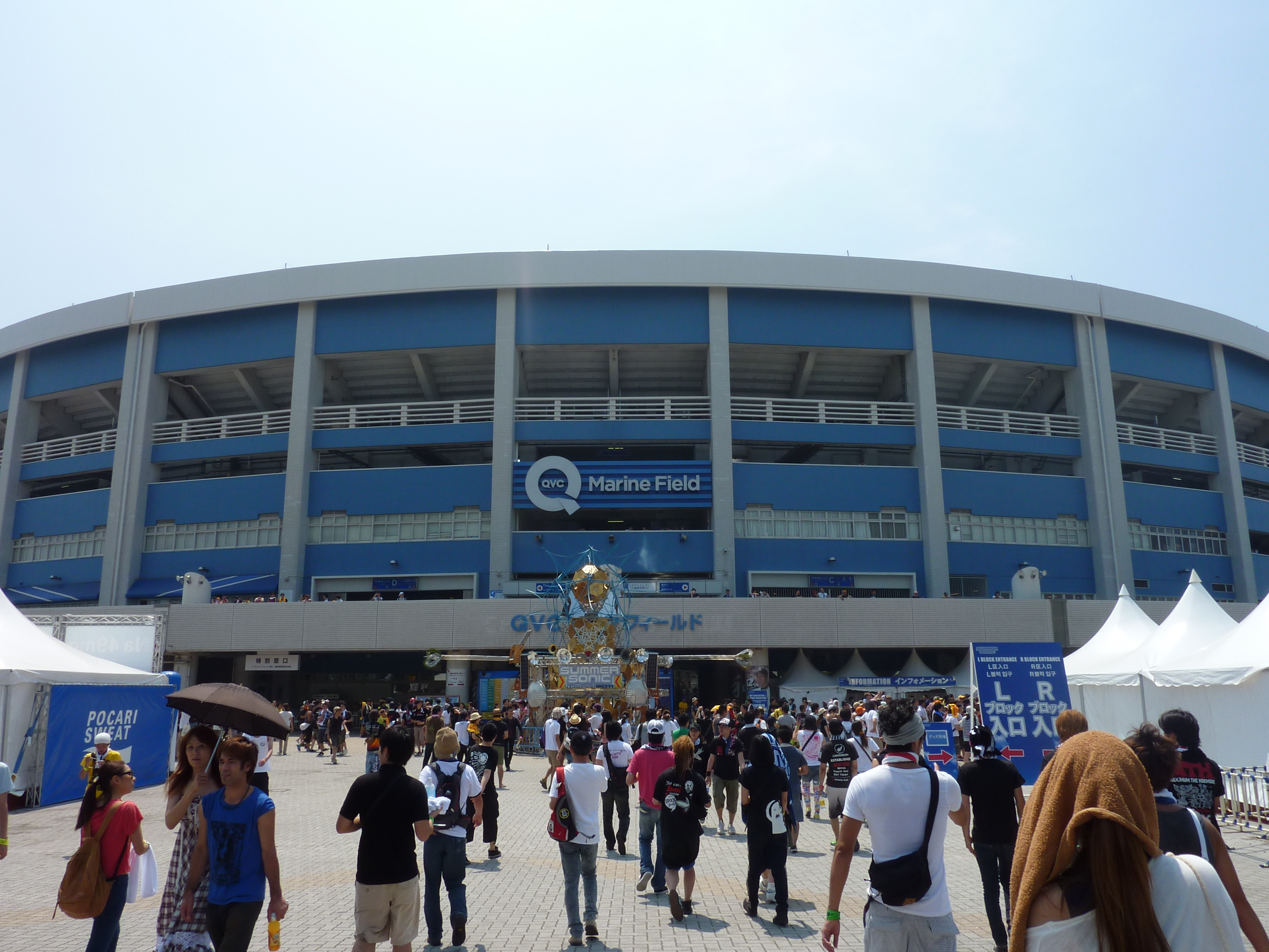 Contrairement aux autres scènes, celle-ci n’était pas dans le centre de convention initial, le Makuhari Messe, mais au Marine Stadium, le stade de base-ball local. Pendant plus de 8 heures sont passés: Hollywood Undead (US, mouais), Zebrahead (US, super), Panic! At the Disco (bof), Maximum the Hormone (vu le nom, c’est japonais bien sûr, et ça envoie du séquoïa), X-Japan (grandiose et poignant avec la minute de silence demandé par Yoshiki, vous devinez pourquoi) et enfin Red Hot Chili Peppers (pros).