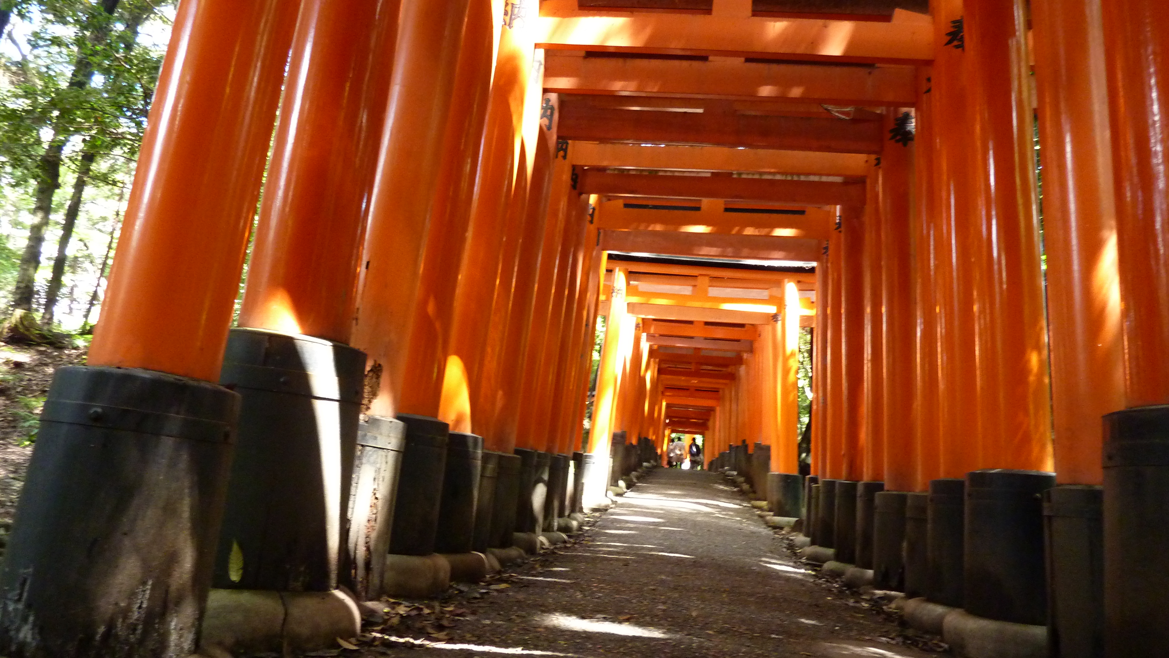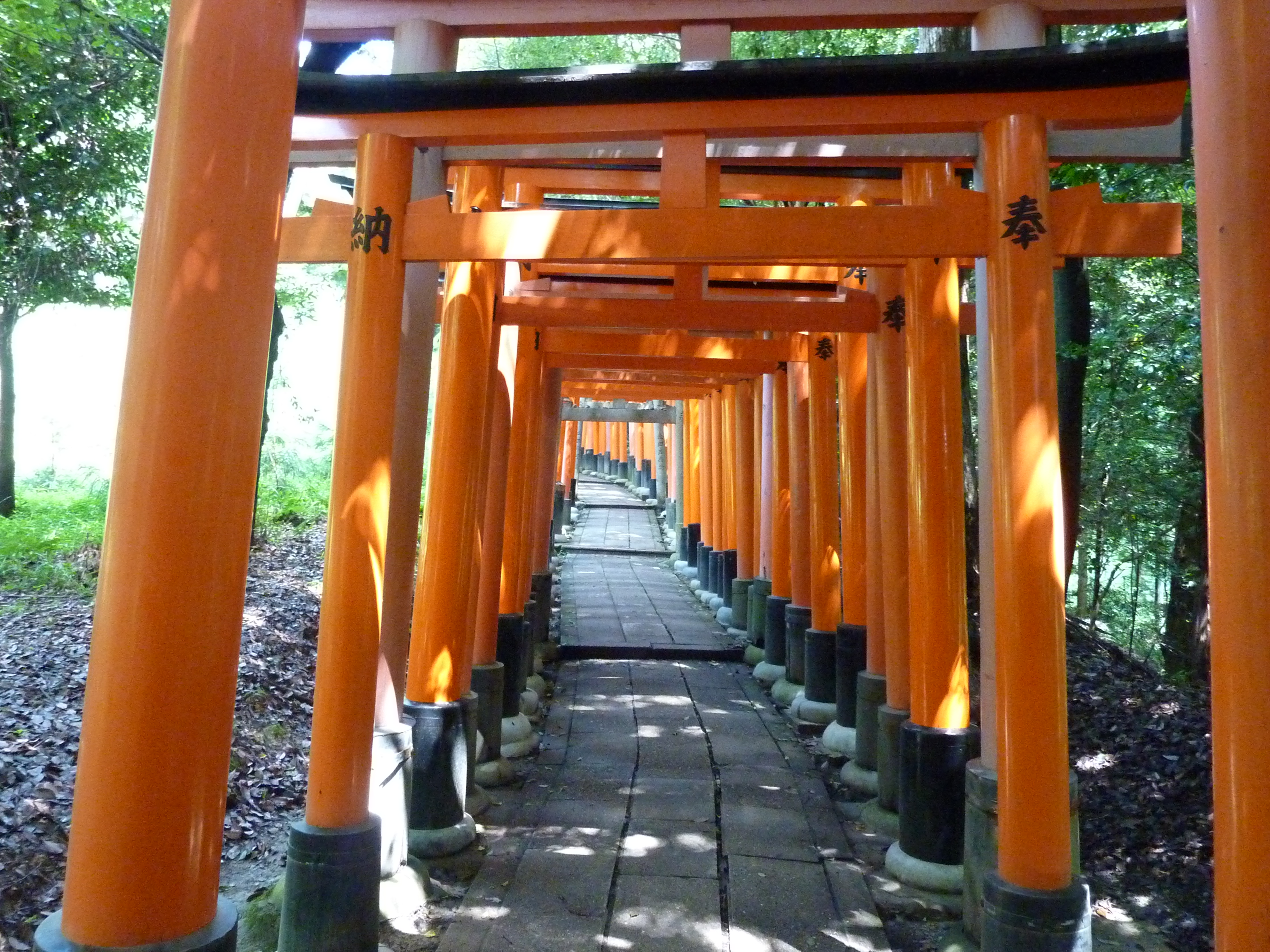 Pas de pluie ce matin sur Kyôto, et plus de migraine, c’est nickel, j’avais prévu de faire 2 temples ce matin puis d’aller à Nara, plus au sud. Le premier temple de la journée, le Tôfuku-ji, un très ancien temple zen. Somptueux, et épargné par la foule. Ca change des derniers jours (week-end oblige). Plus original, le sanctuaire Fushimiinari Taisha, dédié à Iinari, une divinité shintô. Jusquau sommet de la colline voisine serpentent plusieurs chemins abrités de torii juxtaposés. Il y en a des milliers! Je ne suis pas allé jusqu’en haut (il faut environ 2h), mais en ai fait une bonne partie. Pour le pratiquant shintô, ce ne doit pas être simple, il est censé prendre pour le retour le chemin inverse de l’aller!