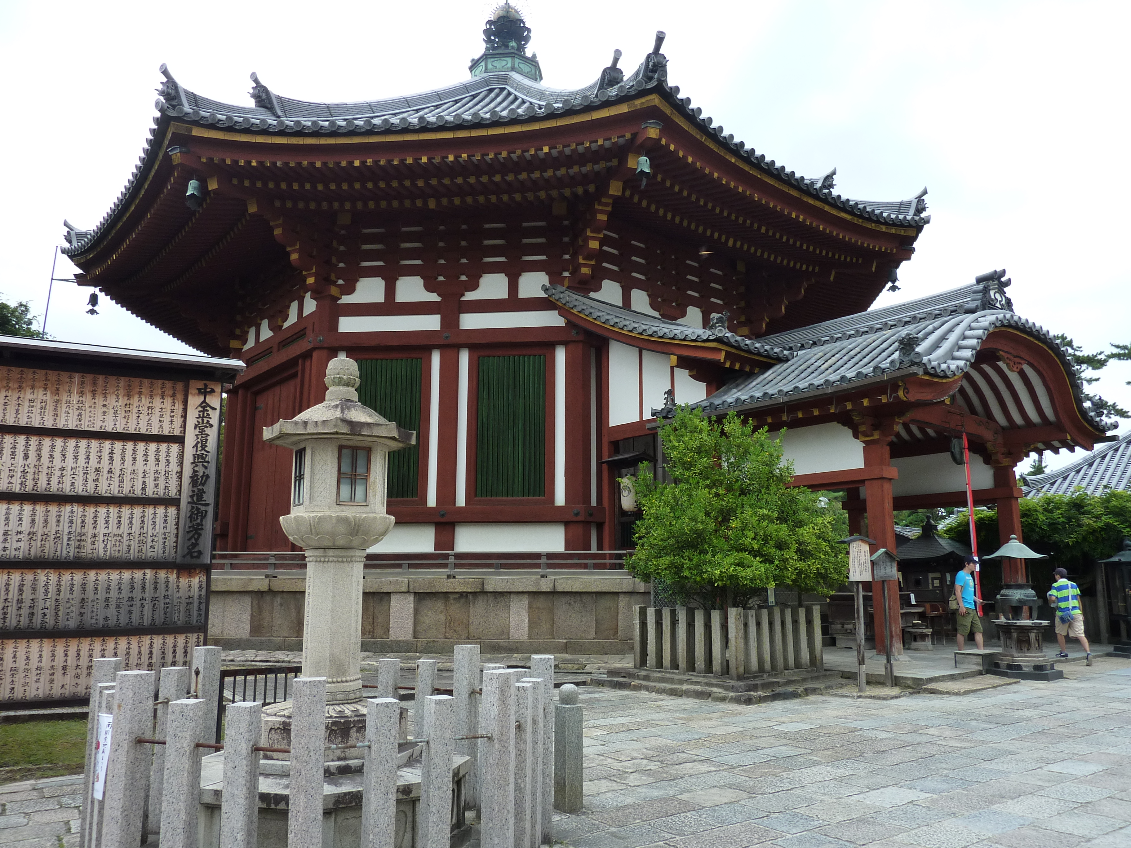 A Nara, la plus ancienne capitale du Japon, les choses à voir ne manquent pas, mais il faut faire une sélection. Pas de chance, tous les endroits que je vais visiter sont en cours de réfaction. Mais si certaines parties des sites ne sont pas visibles, cela reste fichtrement impressionnant. Le Kôfuku-ji avec notamment sa pagode à 5 niveaux, et un peu plus loin un bâtiment octogonal, plutôt détonnant.