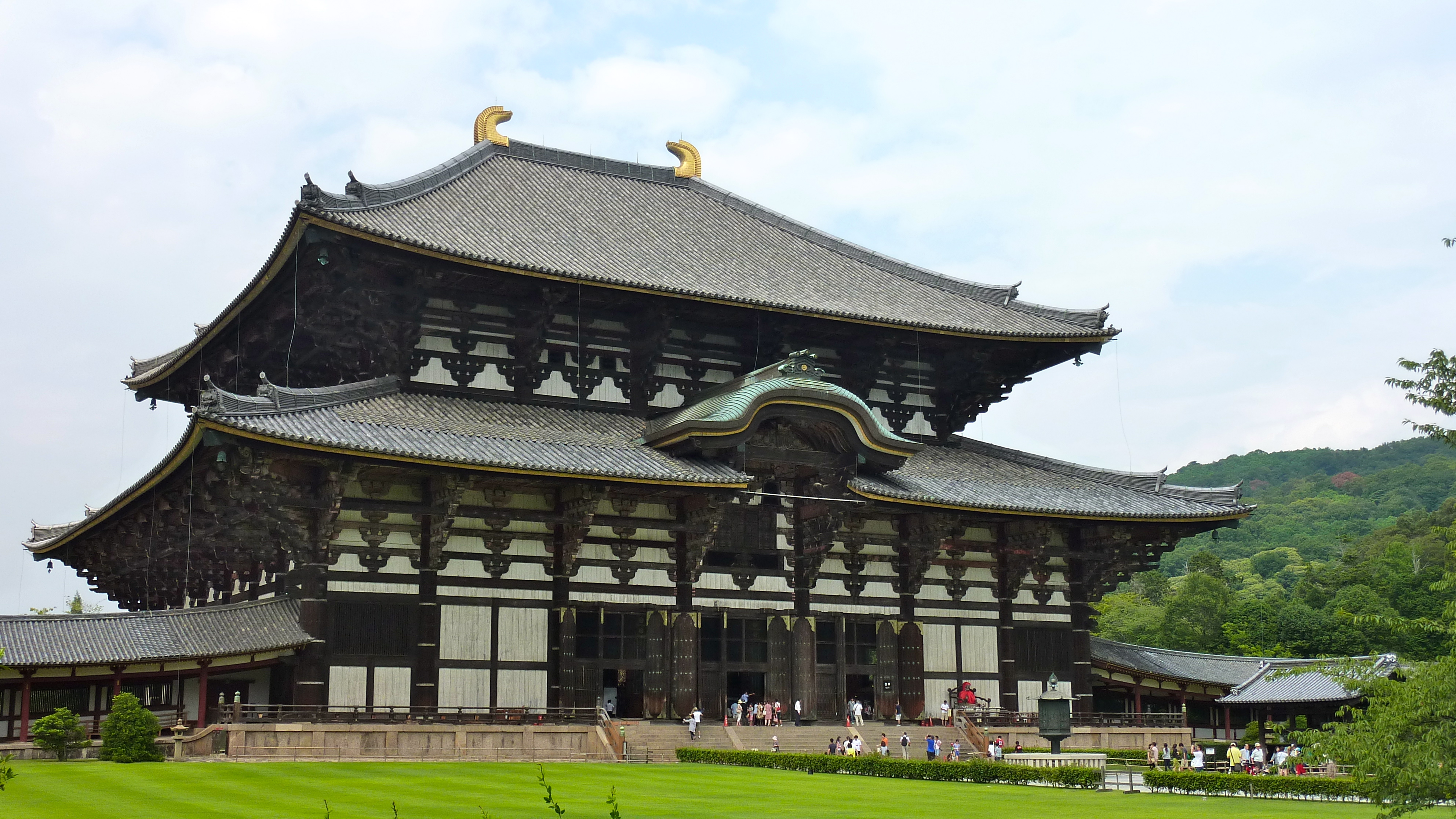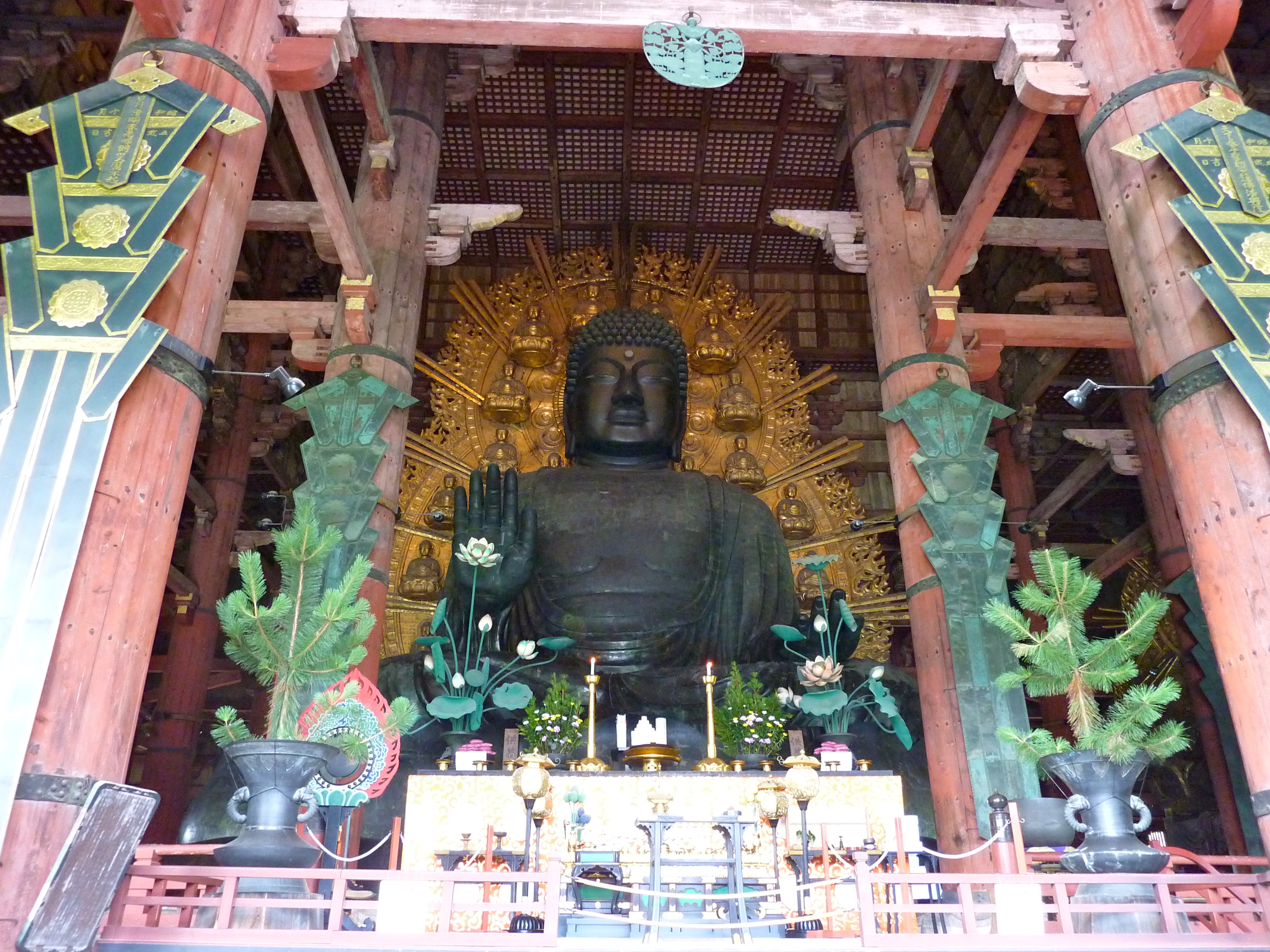 Comme à Miyajima, ici aussi les daims en liberté foisonnent. Par contre les gens les nourissent, ce qui devient comique quand 7 ou 8 daims s’attroupent autour d’un gus. L’endroit le plus bluffant est le Todai-ji. Construit il y a plus de 1200 ans, c’est le bâtiment en bois le plus grand du monde. De plus, à l’intérieur se trouvent plusieurs statues, dont un bouddha en bronze encore plus grand que celui de Kamakura. Dommage qu’à côté se vendent des babioles parfois peu raccord avec la majesté des lieux (j’aime bien One Piece, mais ras-le-bol des porte-clés Chopper).