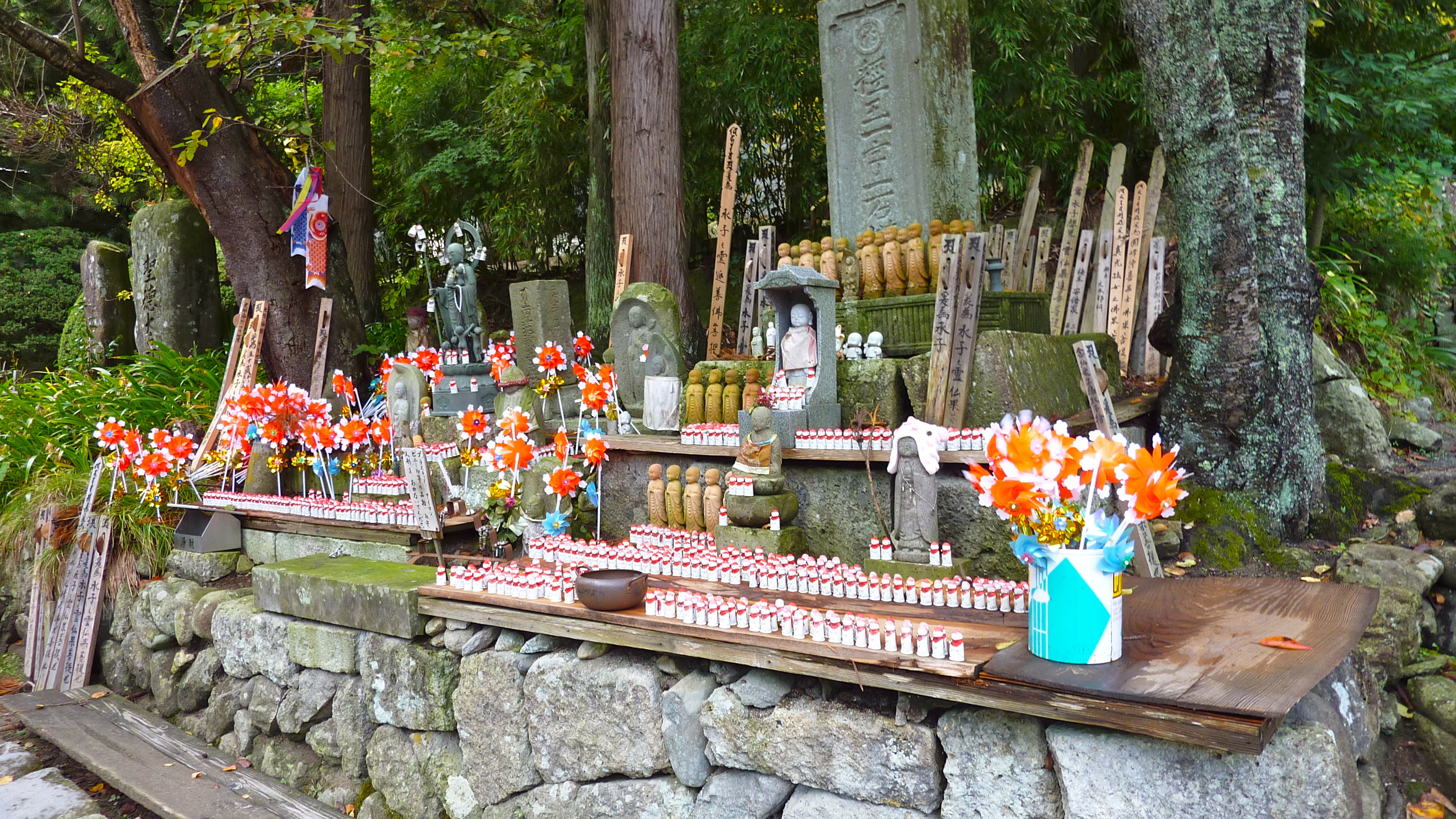 Retour dans la nature aujourd’hui, avec la visite de Yamadera. Yama (山) et Dera (寺) signifiant respectivement montagne et temple, c’est parfaitement cohérent car il s’agit d’un ensemble de temples à fleur de montagne, offrant une vue sur les collines et le village en contrebas.