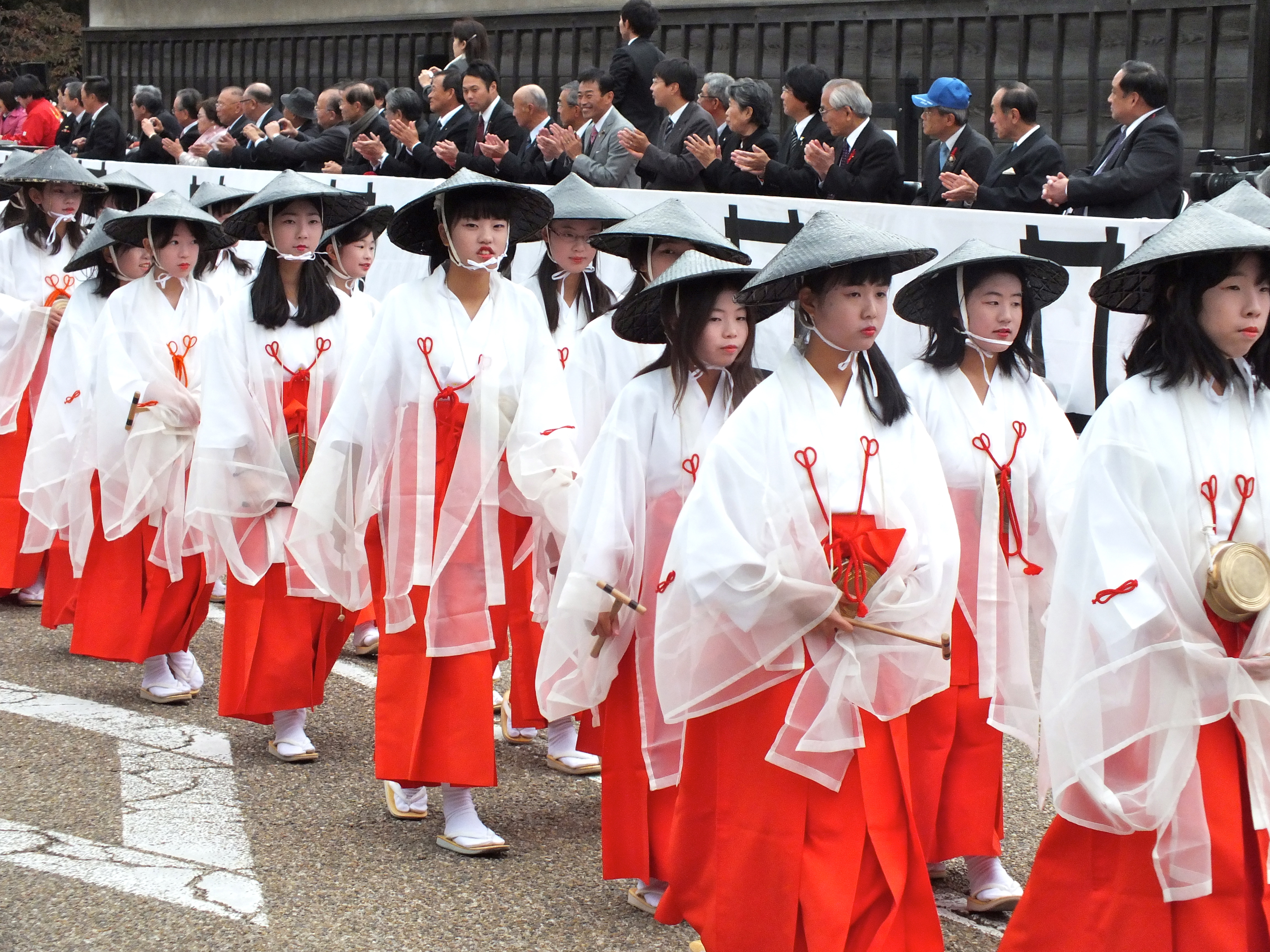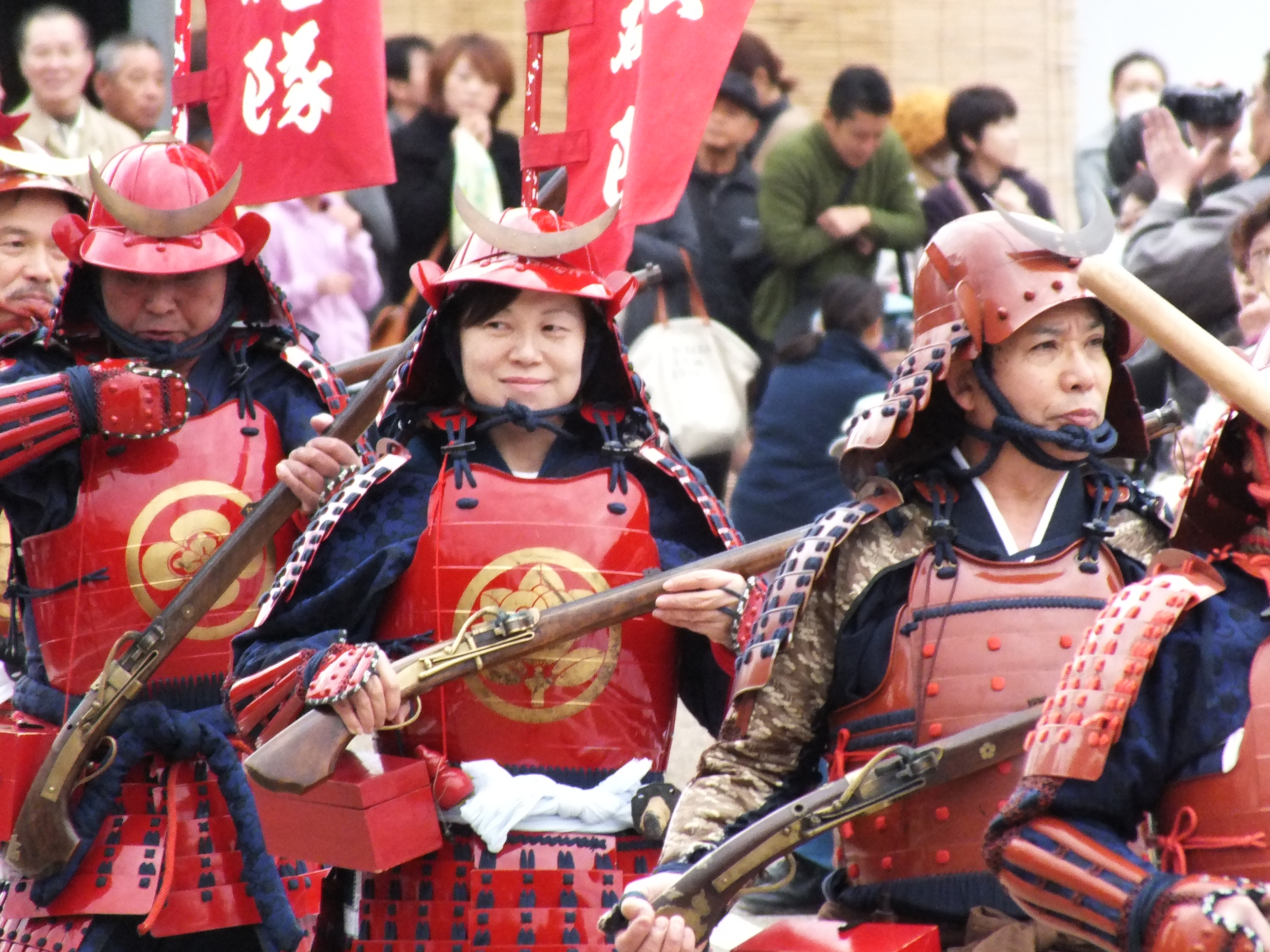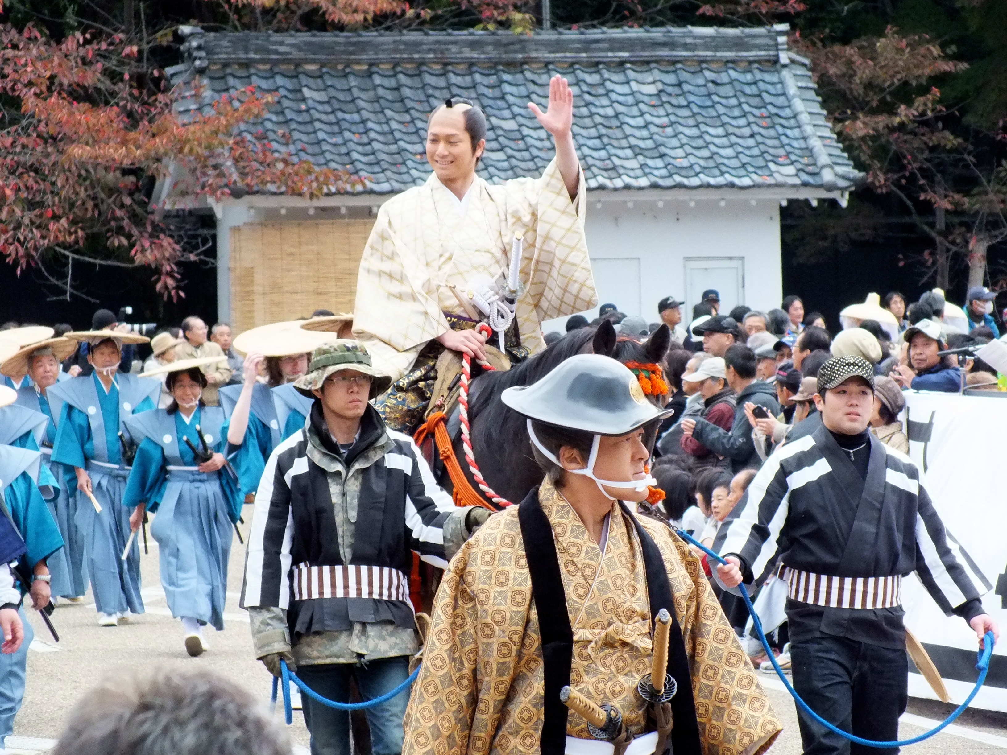 Les premiers passages consistaient en des groupes d’écoliers, de marching band, de twiling baton. Et la miss locale, je me demandais sur quoi j’étais tombé. Les groupes suivants étaient plus sympa, constitués d’enfants, d’ado et d’adultes en tenues d’époques, des Daimyo à cheval, etc.