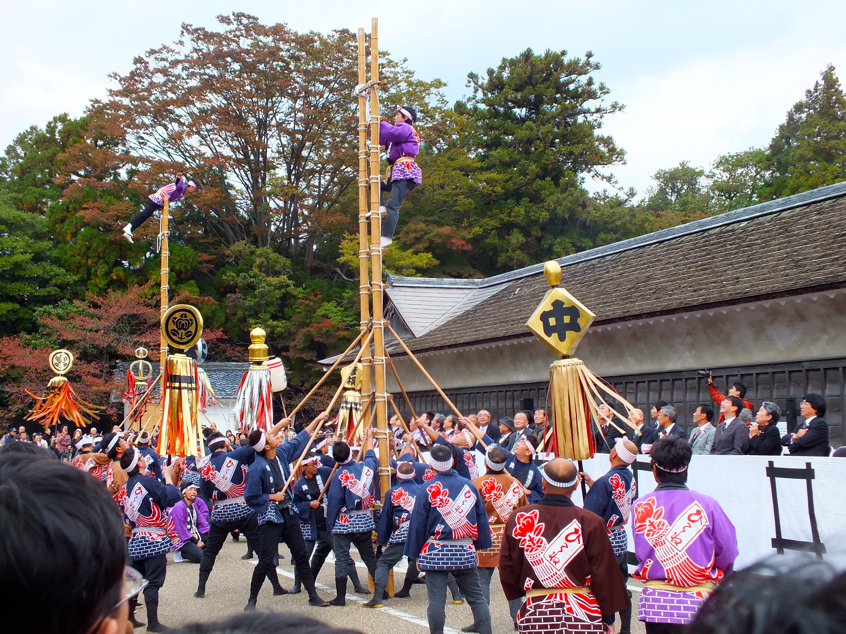 La parade était plutôt bon enfant. Sur la fin il y avait une partie théâtrale, avec des soldats de la période Edo tirant à l’arquebuse (ça a effrayé plus d’un gamin), et une démonstration d’acrobatie sur échelle en bambou.