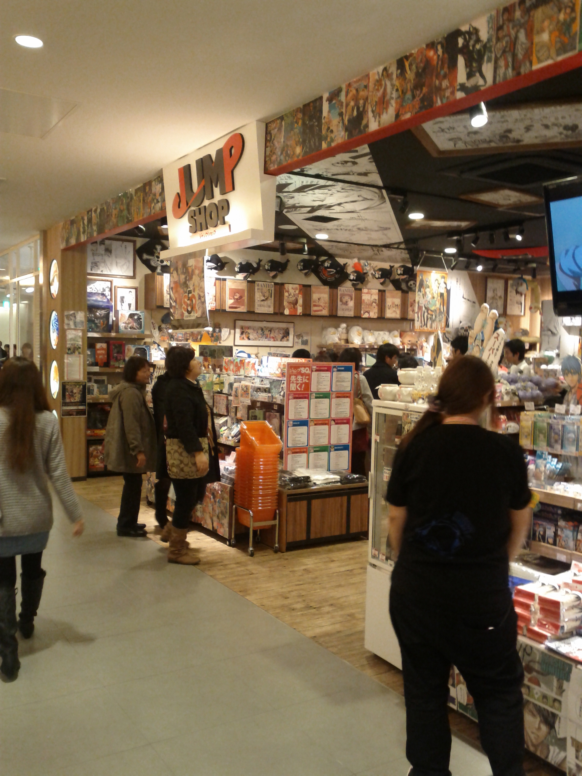 Vers 14h le musée était vraiment plein, devenu une destination privilégiée de ceux importunés par l’humidité. Je suis alors allé à la découverte du centre commercial construit sous le Tokyo Sky Tree. C’était également la foule: Les immeubles se perdant dans les brumes au delà de 12 étages, rares étaient ceux qui, pourtant venu pour ça, montaient sur la plateforme d’observation à 450m. Il n’y avait pas la queue pour prendre son billet aujourdh’ui. Le centre commercial est bordélique -tout comme la gare qui y mène- mais contient des boutiques intéressantes pour qui cherche du merchandising de jeux, manga et anime: Boutique Ultraman, Jump, NHK, K-On, etc.