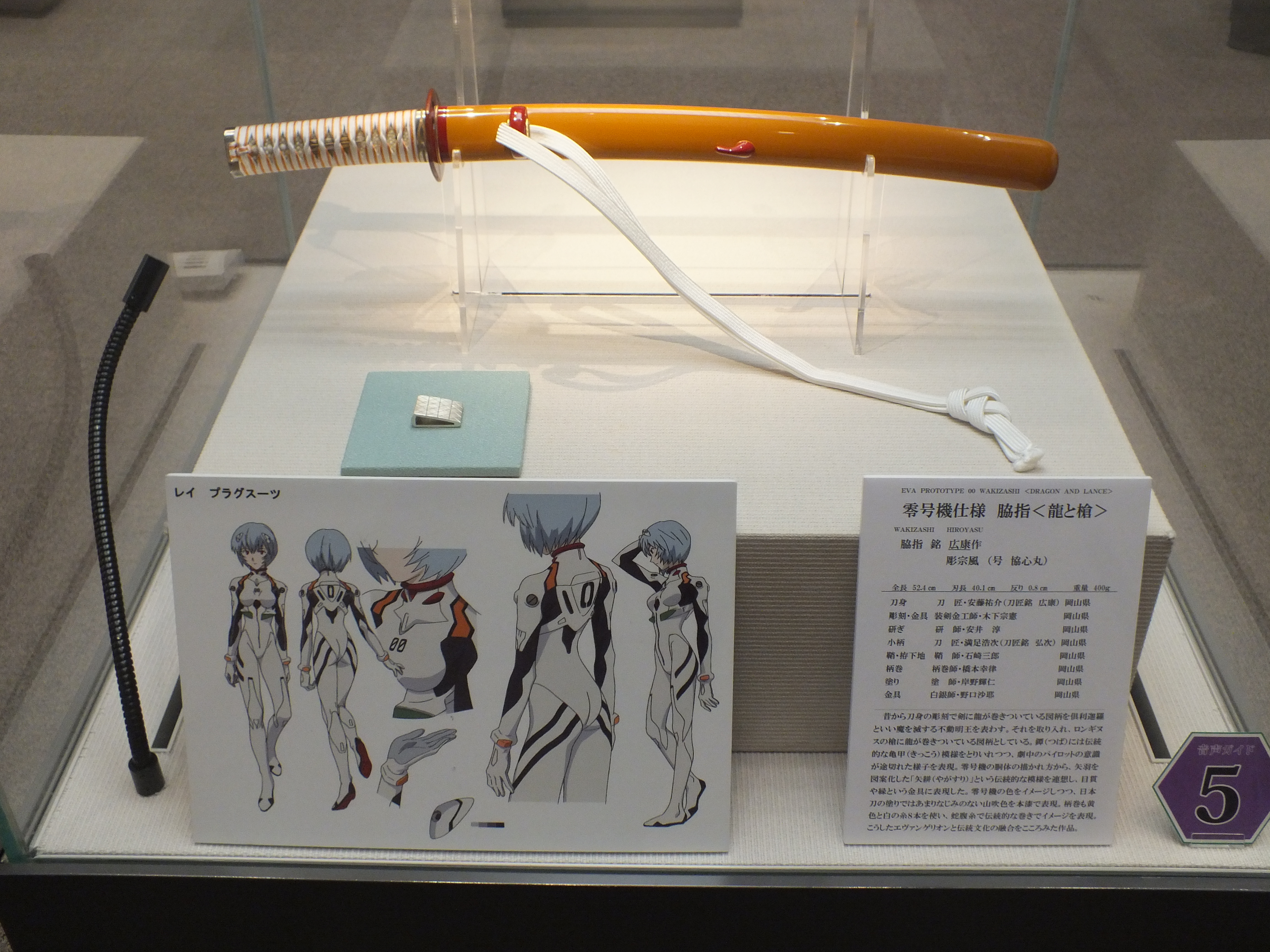 Le processus de fabrication d’un sabre est décrit par des planches et des vidéos, plusieurs artisans renommés ayant été mis à contribution pour reproduire les armes utilisées par les personnages et les robots géants de la série… Le clou étant une reproduction de la Lance de Longinus, correspondant à deux lames entrelacées.