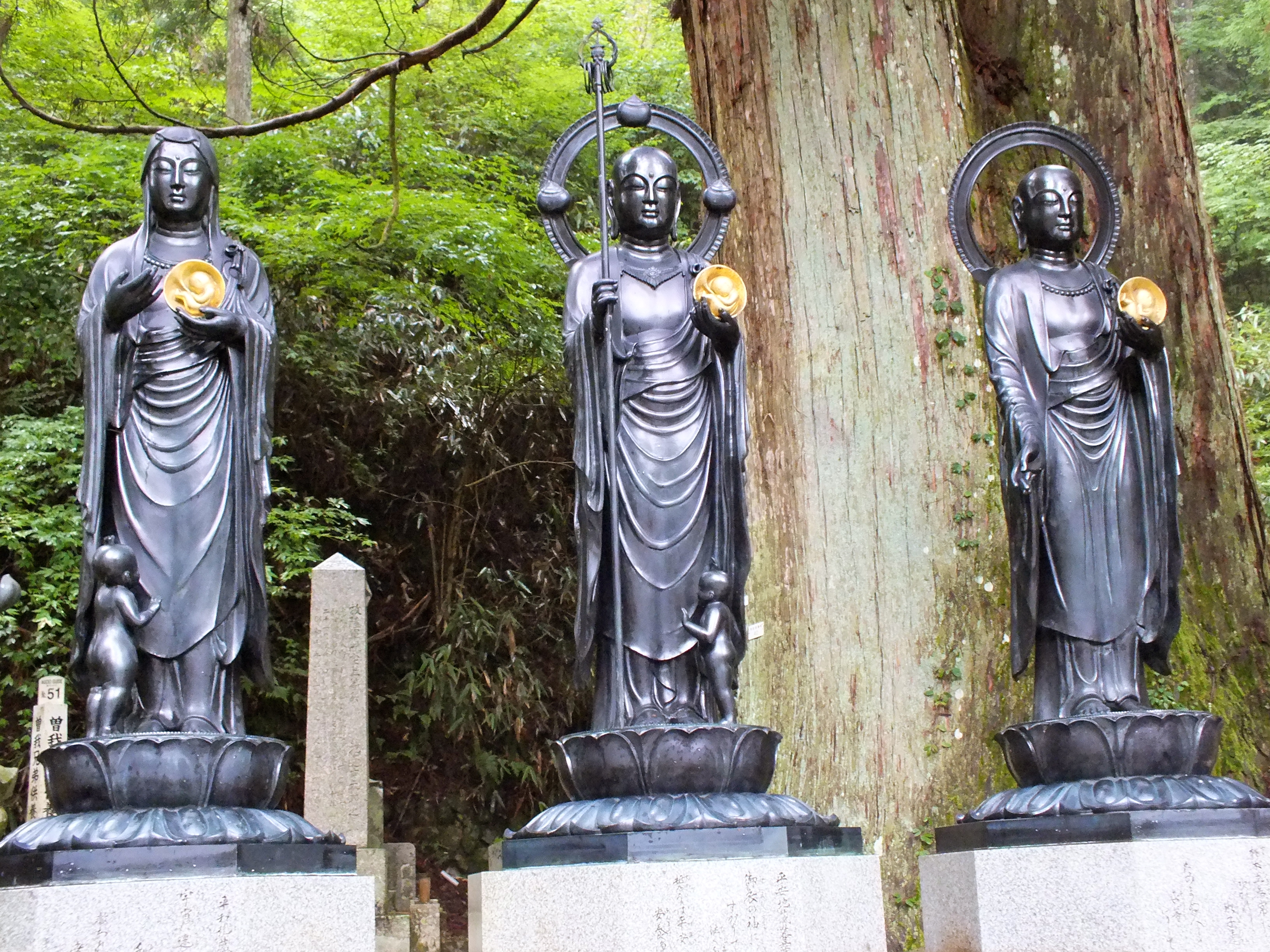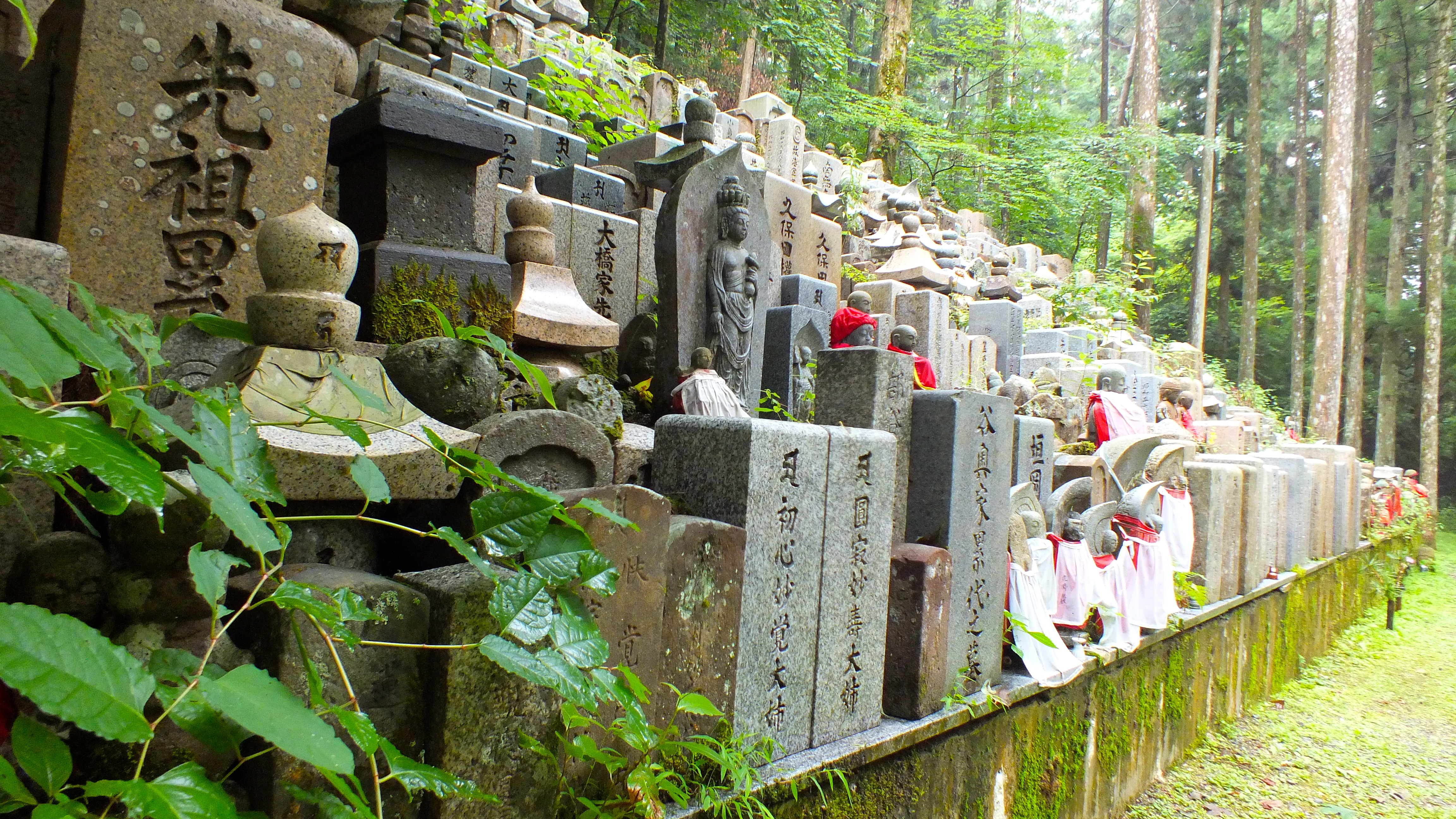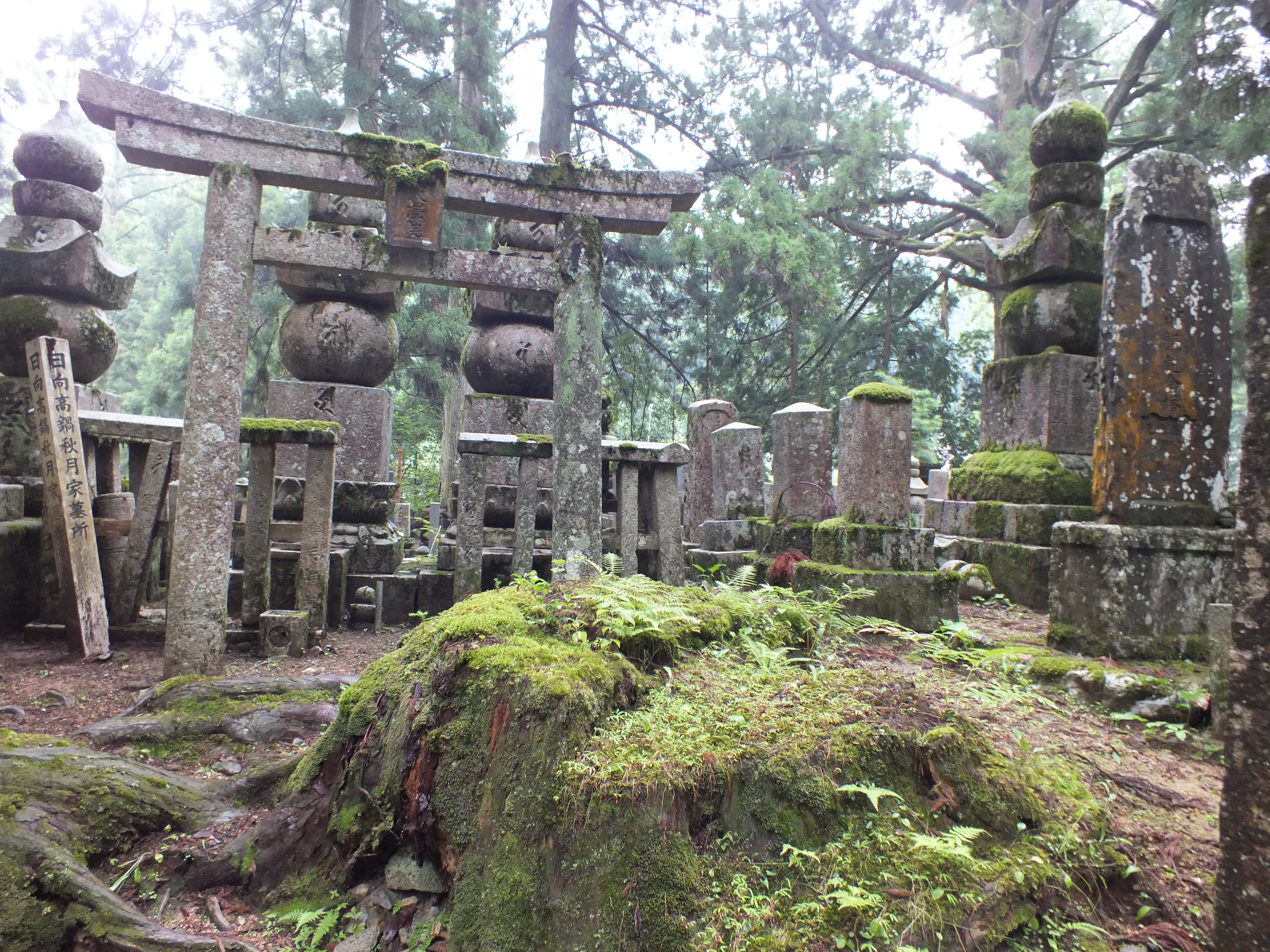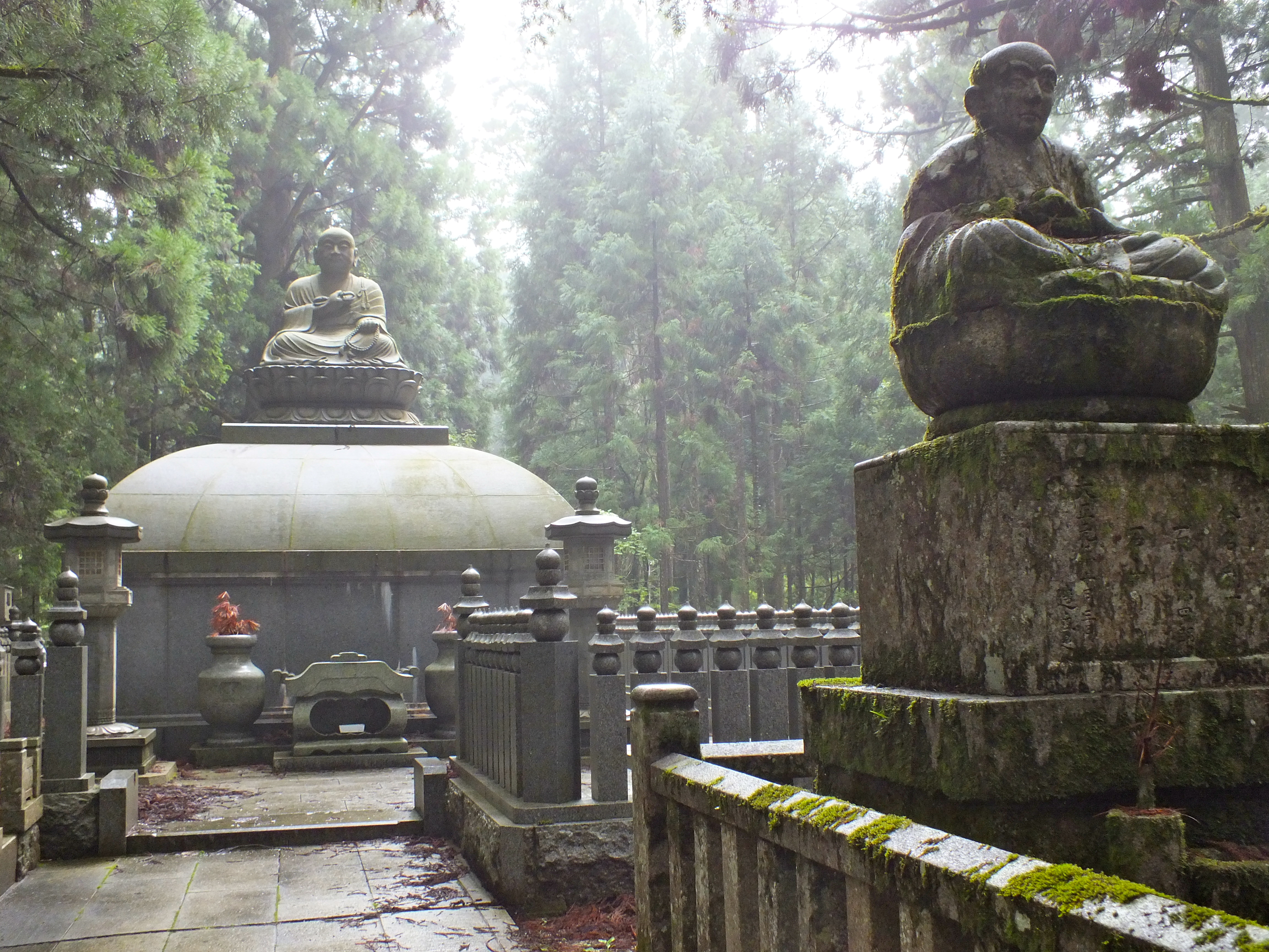 Je vais alors à l’autre bout de Kôya, voir le temple Okunoin, le mausolée de Kûkai. Les différents chemins qui y mènent traversent d’innombrables rangées de stèles. Elles constituent le plus grand cimetière du Japon (plus de 200,000).