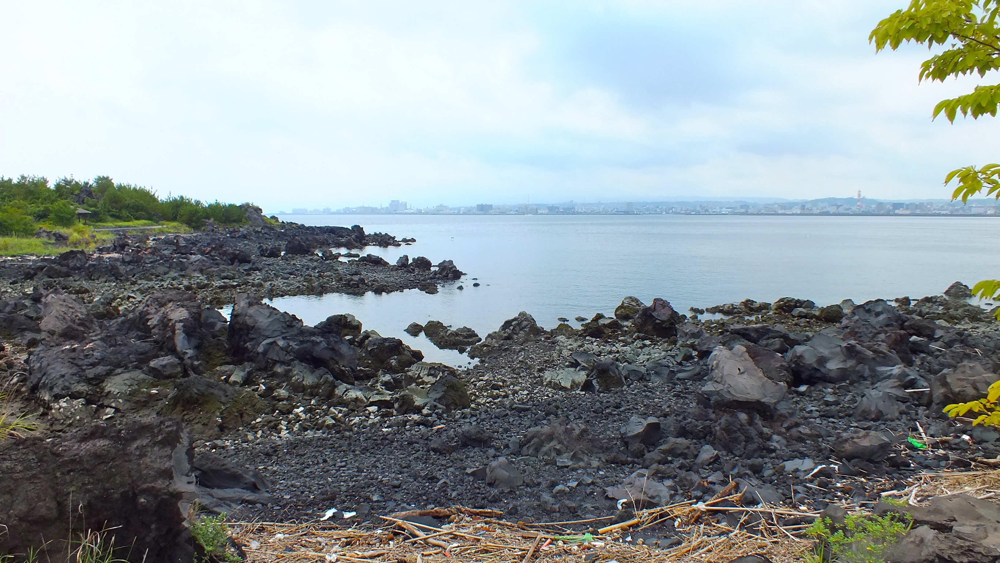 À voir la côte, on comprend l’origine volcanique de l’île. Point de sable ou de rochers polis par les marées, mais de gros blocs noirâtres. Un peu partout sur l’île on trouve de grandes étendues de cendres.