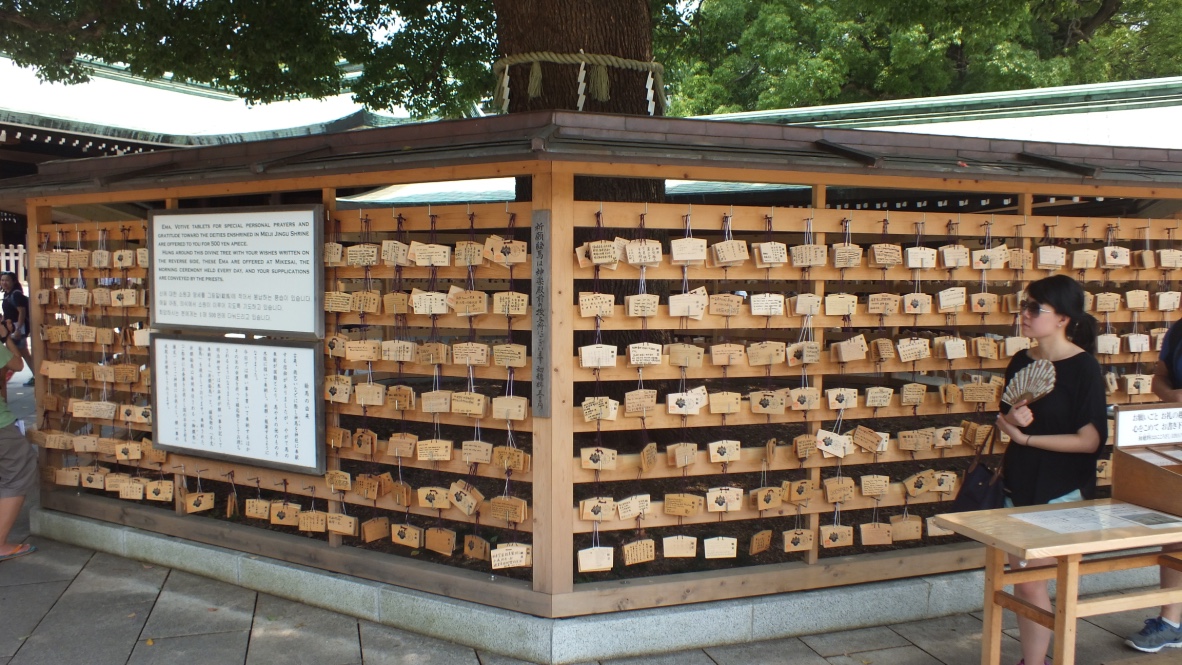 Tout à côté, nous faisons une toute petite partie du parc Yoyogi. Nous passons sous d’immense torii pour attendre le temple Meiji. Et croiser 2 nouveaux mariages.
