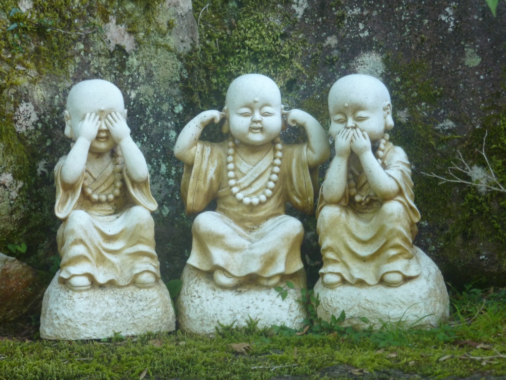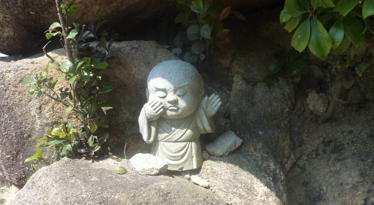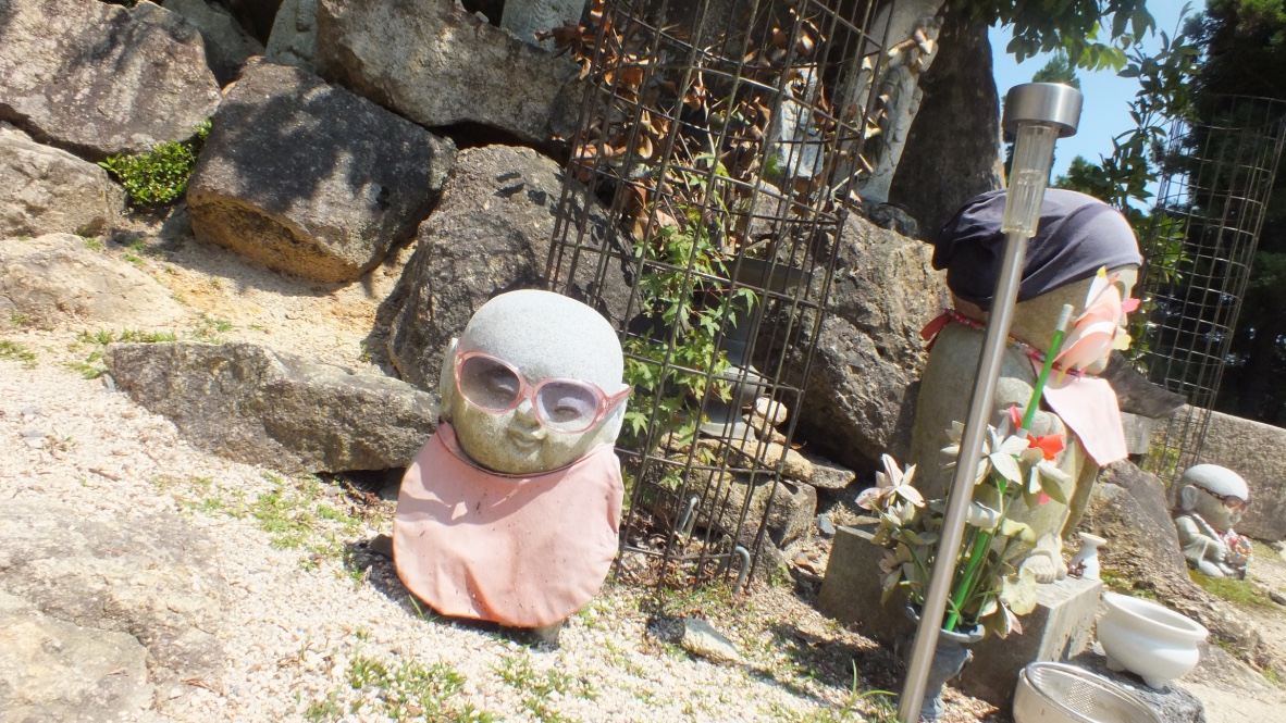 Un peu partout par terre se trouve de petites figurines de Jizô en pierre pas toujours sérieuses, et souvent affublés d’accessoires.