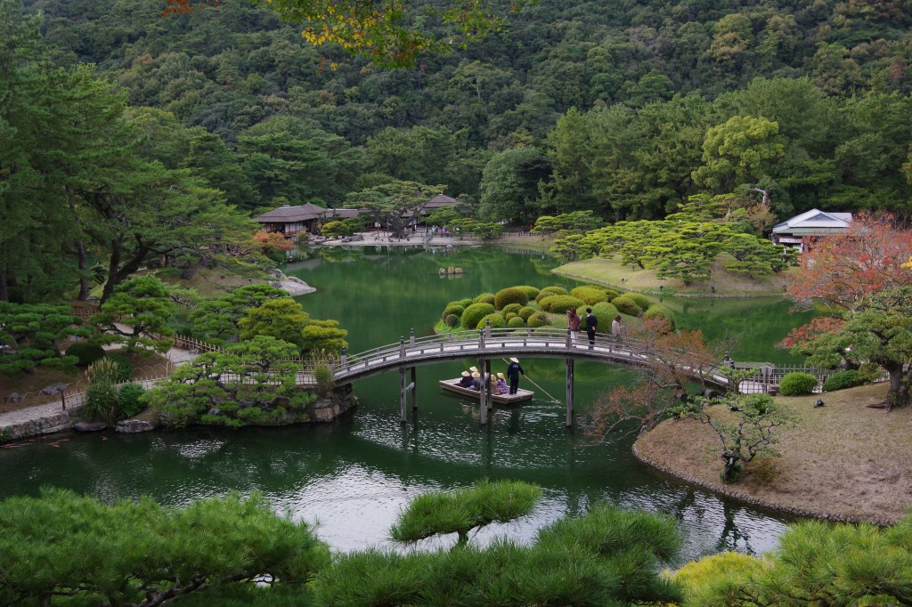 Et repartant vers Takamatsu, je descends au Ritsurin Kôuen, dit-on l’un des plus belles jardins du Japon. Je trouve que le jardin visité avec Valentine en 2015 à Kanezawa était plus belle encore, mais le jardin Ritsurin est beaucoup plus vaste, avec 6 ou 7 étangs.