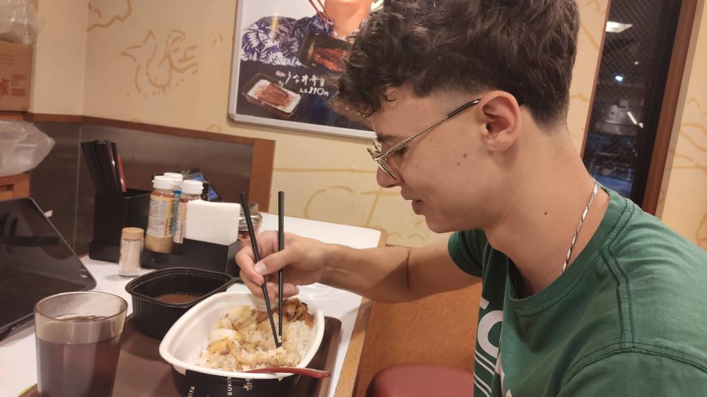 On reste dans le même quartier pour se poser casser la croute dans une enseigne Sukiya. Riz et anguille pour bibi, Curry et boeuf pour mon accompagnateur en pleine croissance.