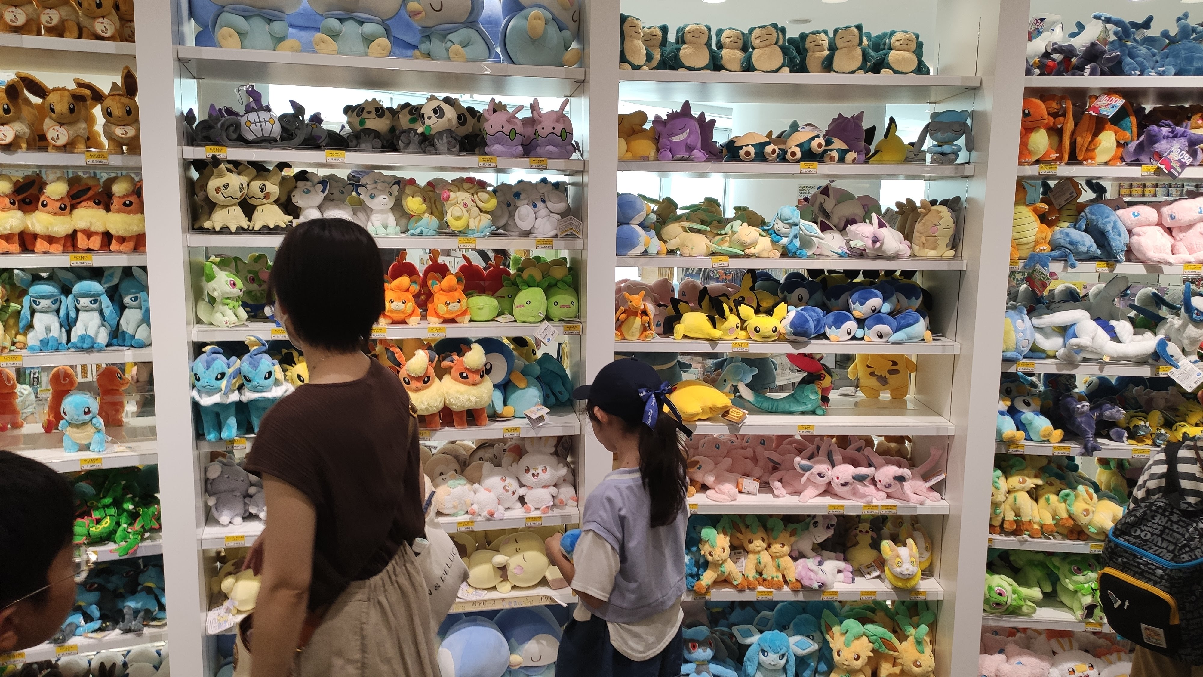 Afin de trouver une petit peluche de Ronflex (aka Kabigon ici), qui je précise n’est pas pour moi, nous allons dans le saint des saints de la pokémanie: Le Pokémon Center DX. Pas facile à trouve le bougre, quand Googlemaps décide de faire nawak avec le petit point bleu sensé indiquer notre présence. Vous savez quand il passse en mode sheitan, à effectuer des 180° et des translations de 2 rues d’un coup. J’ai déjà une commande d’un évoli de la part de ma seconde filleule, on retournera donc dans le magasin, ça nous donnera une chance de prendre notre revanche sur Googlemaps.