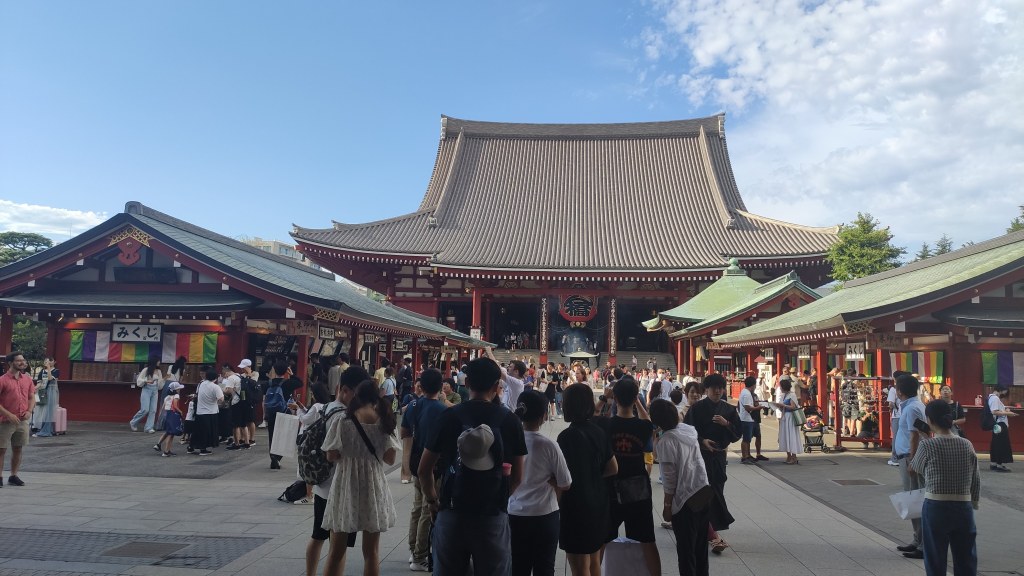 Après ce lundi riche en stress et émotions, mais pauvre en satisfaction nous restons tranquilles ce mardi 1er août pour requincage. Un énorme orage éclate dans la matinée. Je dois le braver juste le temps d’un aller-retour à un combini pour le repas du midi. Combini pris d’assaut par des acheteurs de parapluies. Vers 16:00 il ne pleut quasiment plus, nous en profitons pour aller dans le quartier d’Asakusa, avec une rue très touristique face au Sensô-ji.