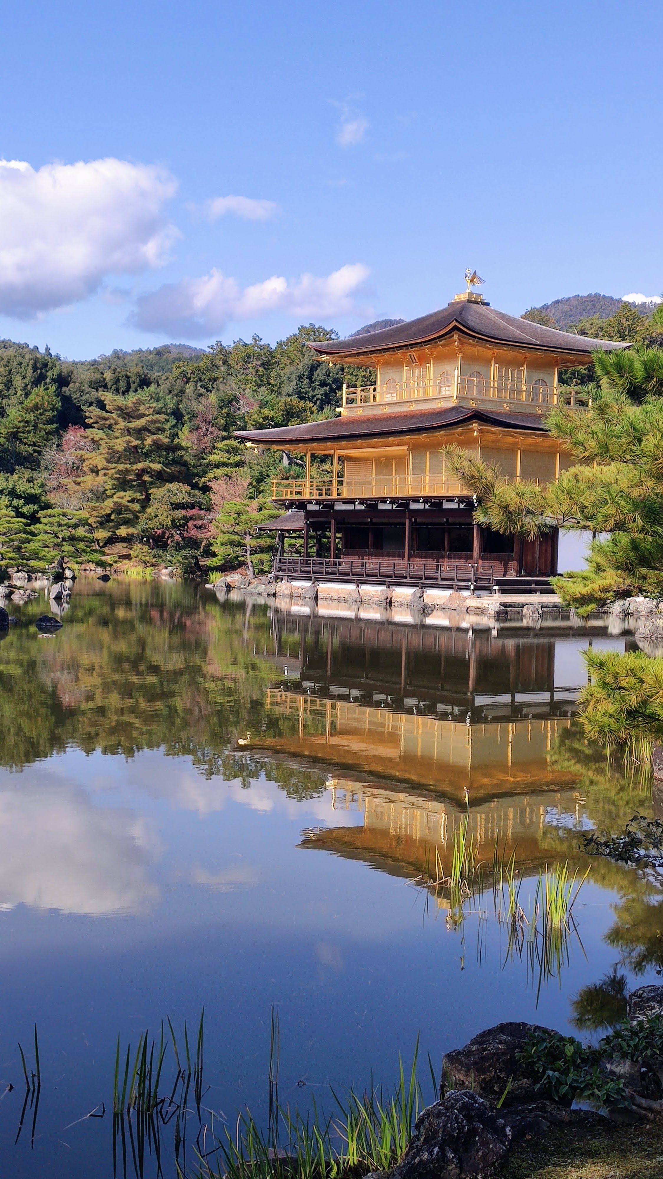 La journée est belle et lumineuse comme une femme amoureuse, le pavillon d’or est beau sous le ciel azur et dans son écrin d’eau et de verdure. Ça en jette!
