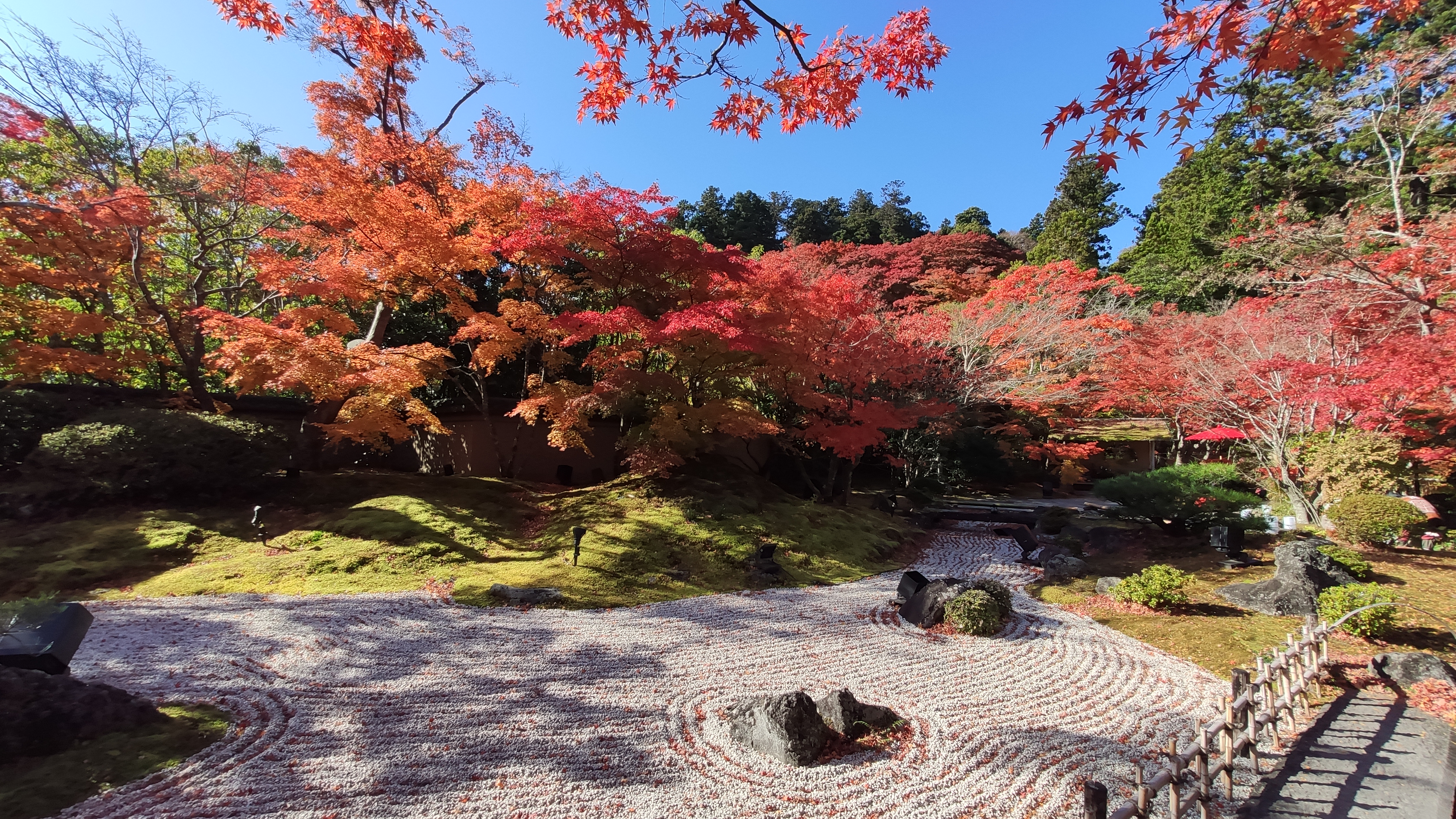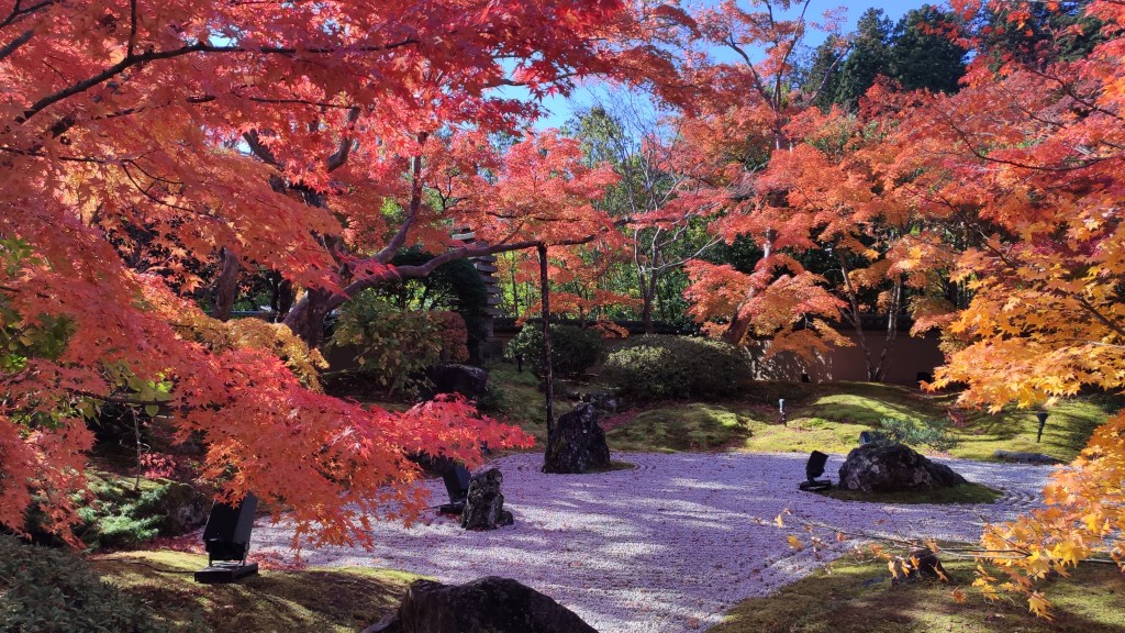 Ainsi, l’Entsu-in, temple renfermant un autre mausolée (celui du petit fils de Masamune Date, toujours dans les bons coup) voit son jardin minéral sublimé par les teintes des arbres qui l’entourent.