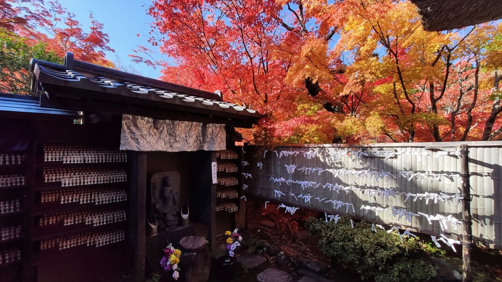 Le temple Zuigan-ji mitoyen s’est lui aussi paré de ses plus belles couleurs. Construit sous sa forme actuelle par Masamune Date (décidément!!), son bâtiment principal est visitable avec des intérieurs qui ne sont pas sans rappeler le château de Nijô que nous visitâmes deux jours plus tôt, si je puis me permettre ce rappel subjonctif. Il existe aussi un petit musée renfermant des vestiges plus anciens de toute la région de la baie de Matsushima.