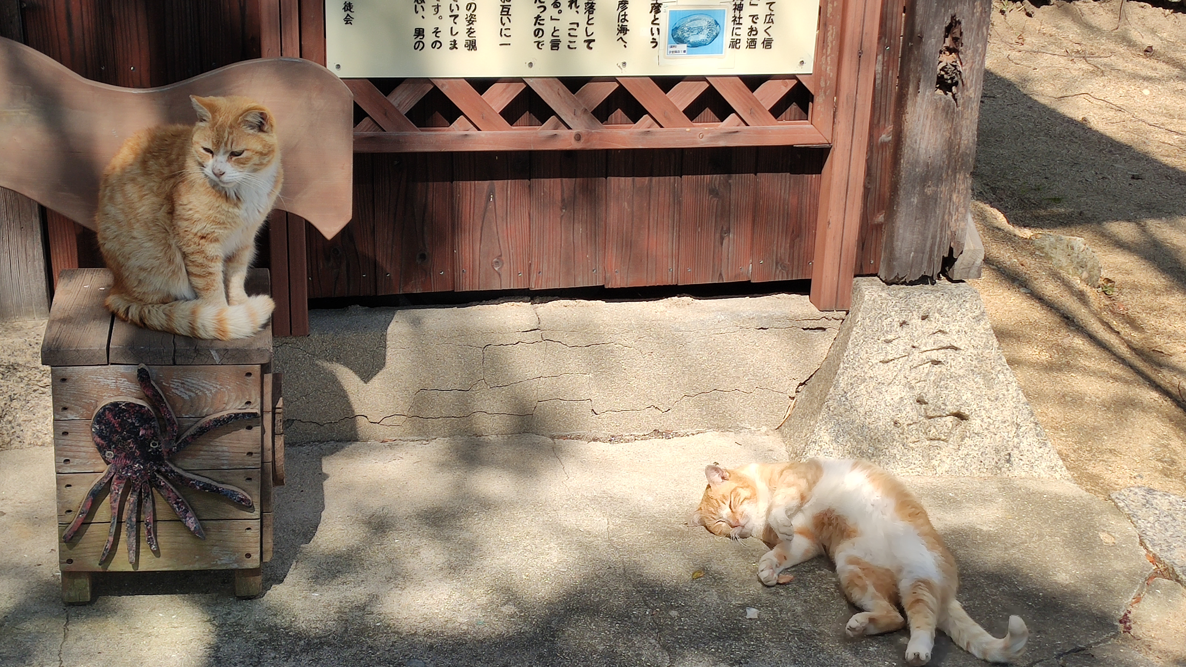 L’occasion ici aussi de croiser des chats en train de s’adonner à une de leurs activités favorites: glander au soleil. Par ce que je ne l’ai pas encore mentionné, mais des chats ici il y en a vraiment plein.