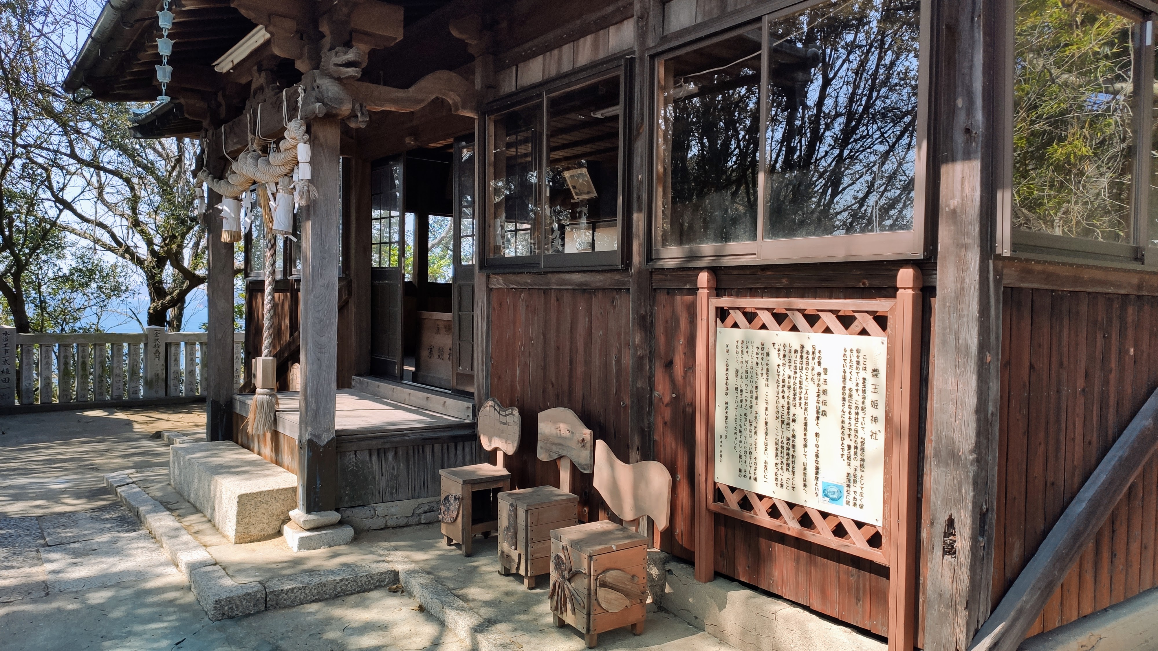 Le long du chemin je ne croise guère que 3 marcheurs, ce qui n’est pas déplaisant. En revenant sur le port, je monte au sanctuaire Toyotamahime, dévolu à la naissance heureuse.