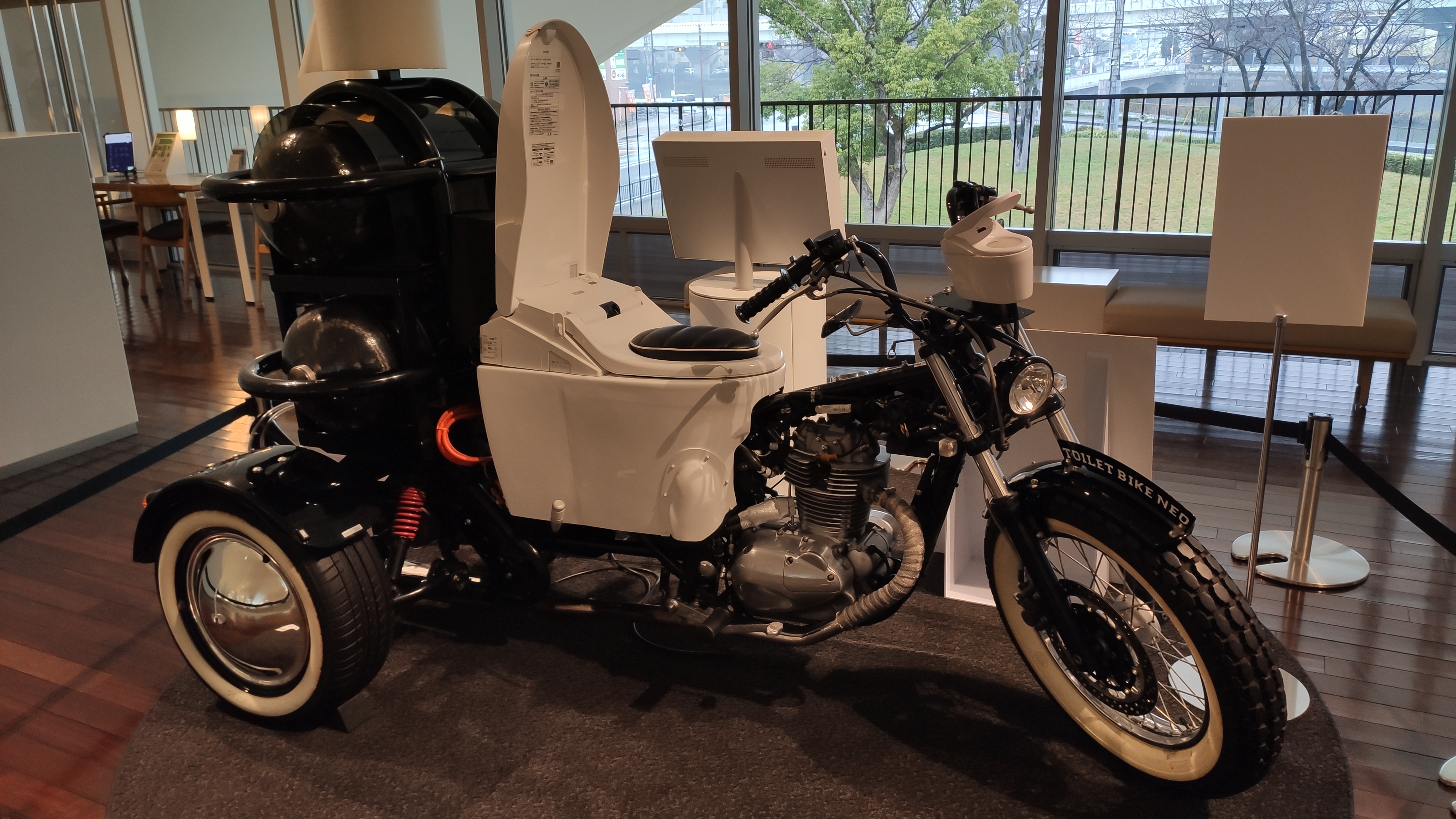 Les toilettes spécialement faites pour les sumos m’ont étonné, mais le clou c’est le “Toilet Bike Neo”, qui carbure aux déjections animales. Le siège en forme de WC c’est juste de la déco, le Japon souvent fringe sur le bon goût.