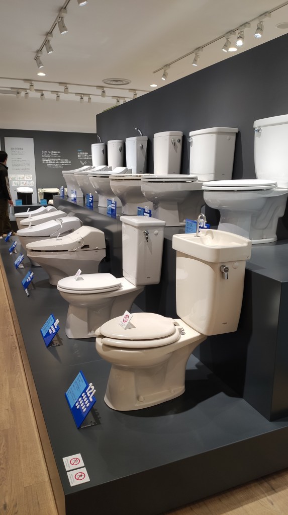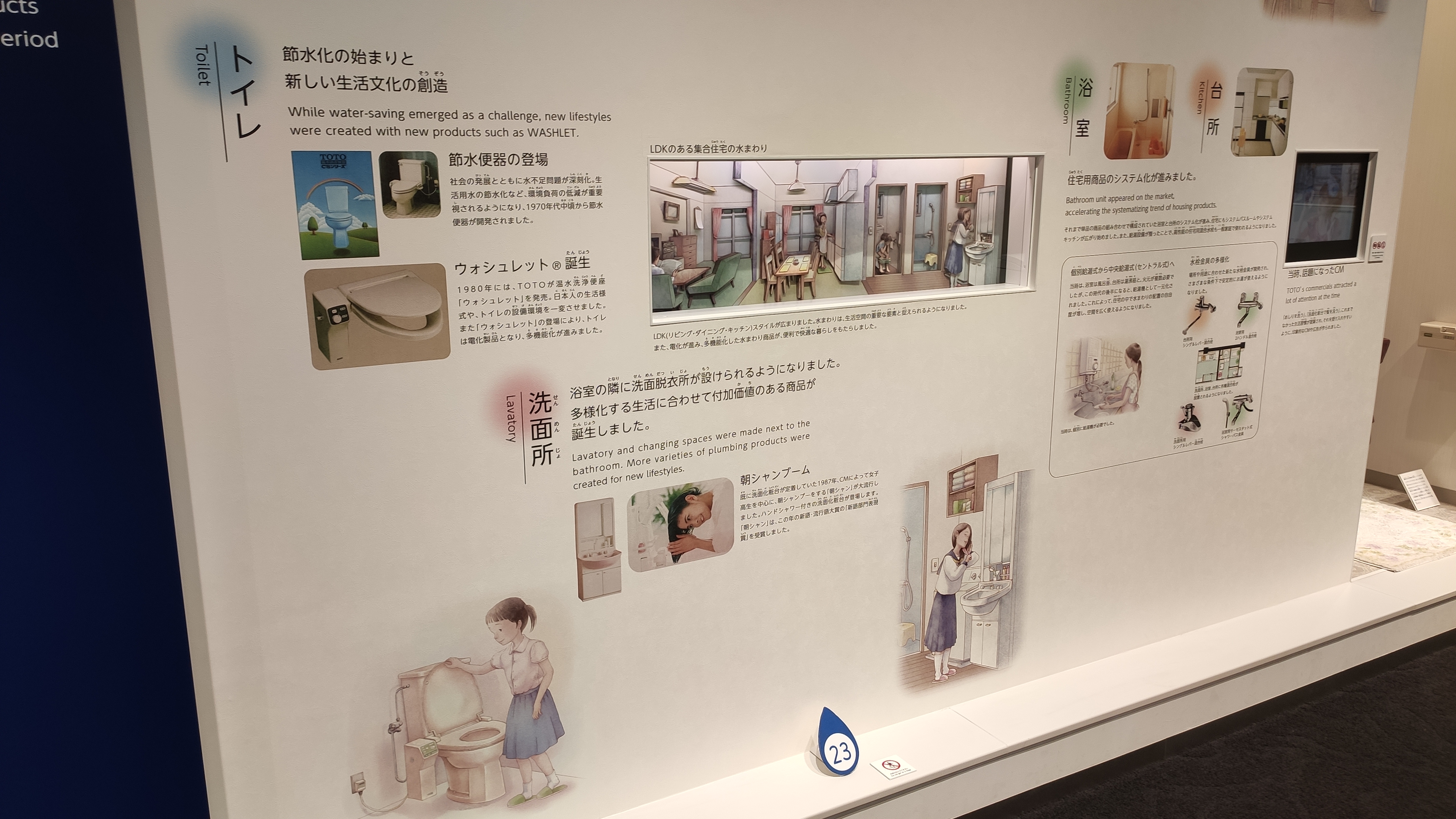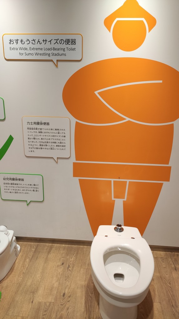 Toto a été fondé ici, à Kitakyûshû. L’entreprise est implantée sur une sacrée surface dans la ville, le musée fait partie de ce complexe. Ce n’est pas à proprement parler un musée des toilettes japonaises, mais un musée (à la gloire) de la marque. Des débuts dans la porcelaine, jusqu’à tout ce qui touche aux sanitaires, robinetterie, faïence. Et comme on est au Japon, il y a beau avoir un habillage ludique, c’est traité très sérieusement. Super audio guide, avec à la fin de chaque exposé un bruit de “ploc!”, ahahah.