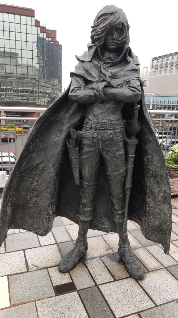 Après cette visite aussi instructive qu’étonnante, je retourne près de la gare pour le musée du manga de la ville. On passe devant une statue qui rappellera leur enfance à Luc, Gwen, Erwan et tant d’autres. Et oui, Leiji Matsumoto le papa de Captain Harlock (Albator) est natif de la région.