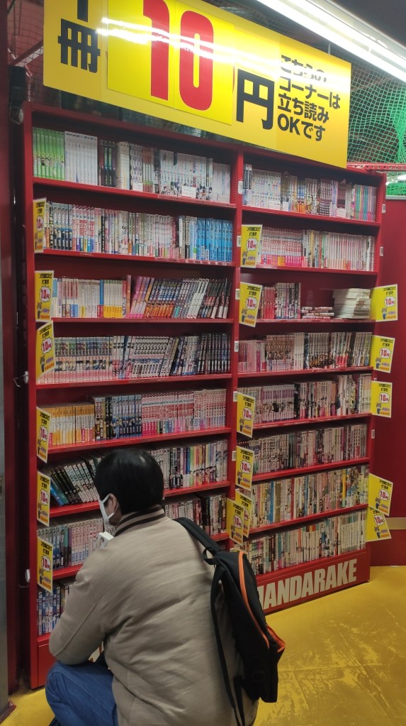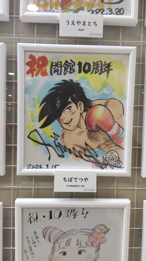 Le musée est au 6e étage d’un bâtiment entièrement consacré à la pop culture. Gros choc, c’est une sorte d’Akihabara vertical en concentré. Il y a pléthore de magasin dont plusieurs Mandarake avec un nombre fou de figurine d’occasions, de cartes à collections, de jeux et manga (certaines étagères où ils sont à 10 yens / pièce), Animate, Gee Store, C-labo, Gamers, un café Demon Slayer, des gatchapons autour de Chainsaw Man, etc.