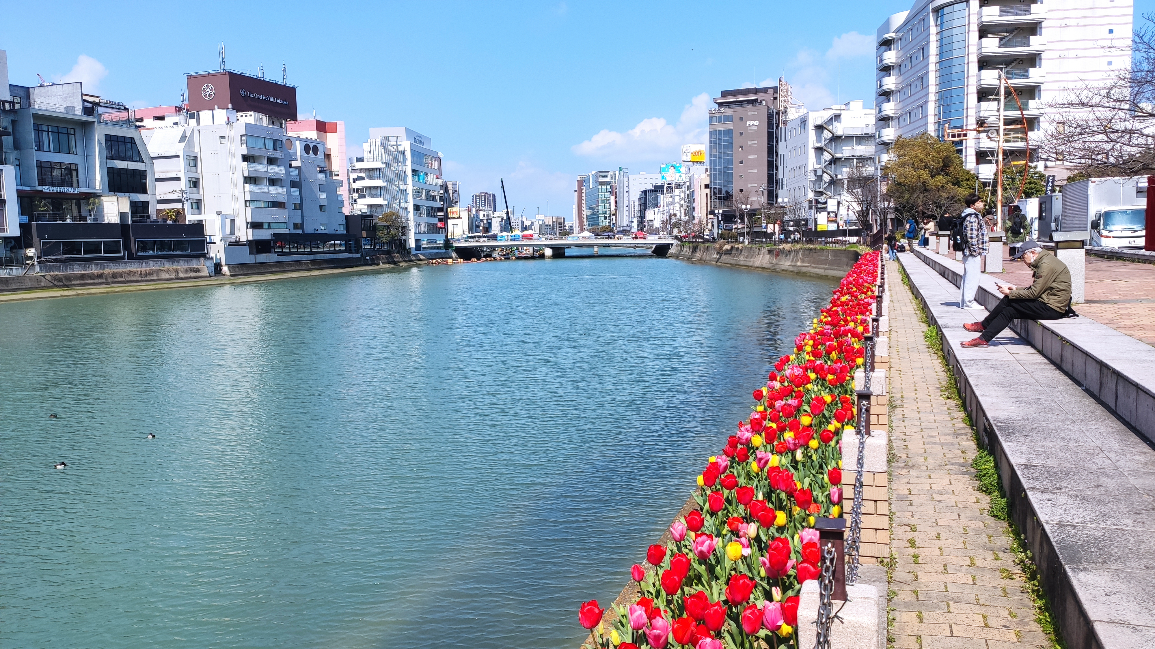 Je me promène ensuite un peu au hasard en suivant les canaux fleuris. Il y a de grands centres commerciaux, parfois en souterrain, comme le Tenjin Chikagai. On pourrait appeler cela une déambulation shopping, mais je n’achète rien. C’est une simple déambulation en fait.