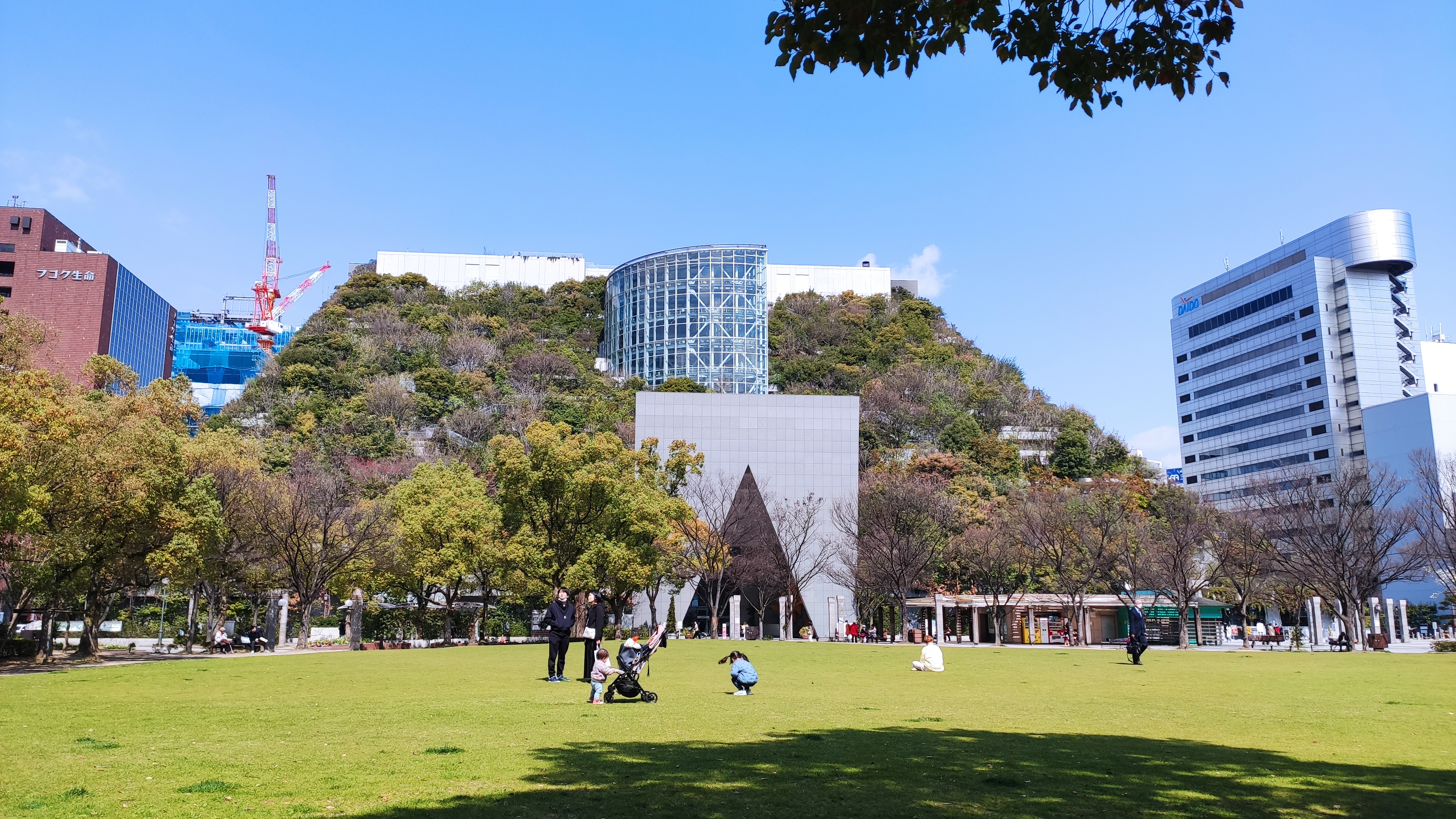Je remarque quelques buildings à l’architecture originale, tel celui de la salle de concert ACROS avec un extérieur en paliers végétalisés. Le nom ACROS est acronyme signifiant “Asian Cross Road Over the Sea”. Je suis un peu déçu, ça n’a aucun rapport avec l’organisation secrète dans Excel Saga, cette extraordinaire série parodique de près de 30 ans.