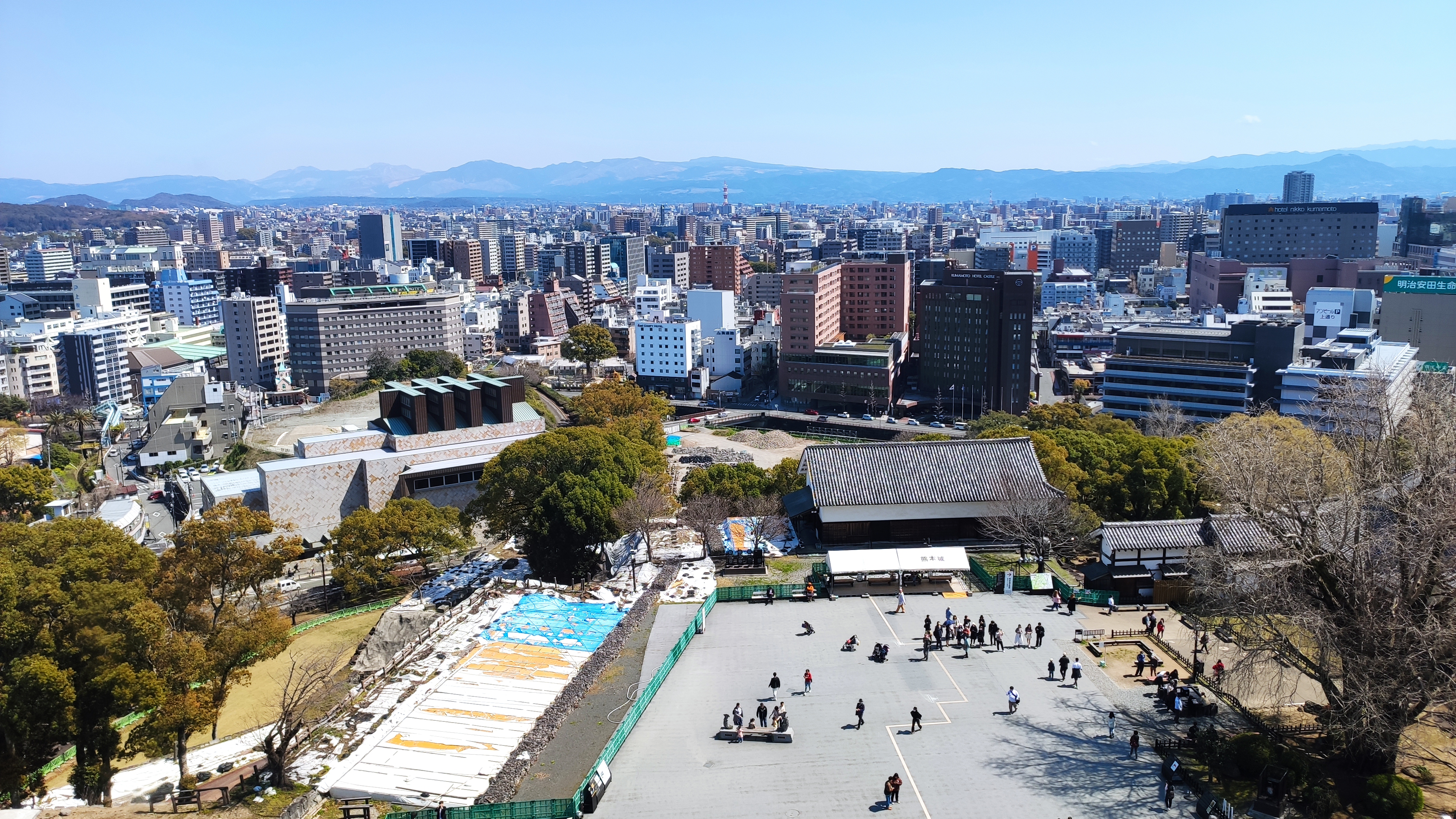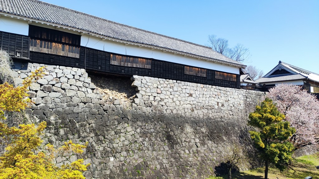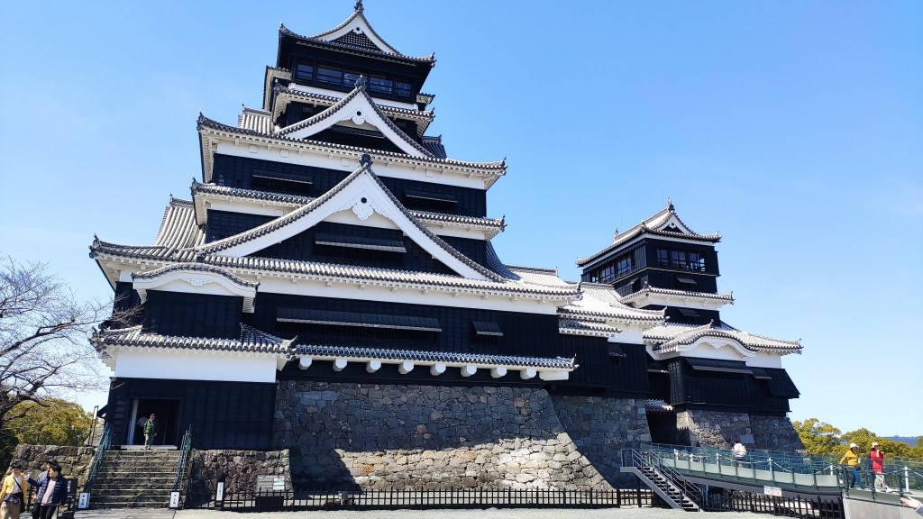 Le château de Kumamoto est absolument magnifique. Toutefois, il n’est pas d’époque, c’est une reconstruction moderne, en béton armé, qui s’efforce de garder l’aspect du bâtiment original détruit en 1877 lors de la révolte des samurais. Par contre d’autres éléments, murs d’enceinte et Yaguras (tours) sont d’origine et restaurés. En 2016 un tremblement de terre les a à nouveaux abîmés et d’autres travaux sont en cours, jusqu’à 2038!
