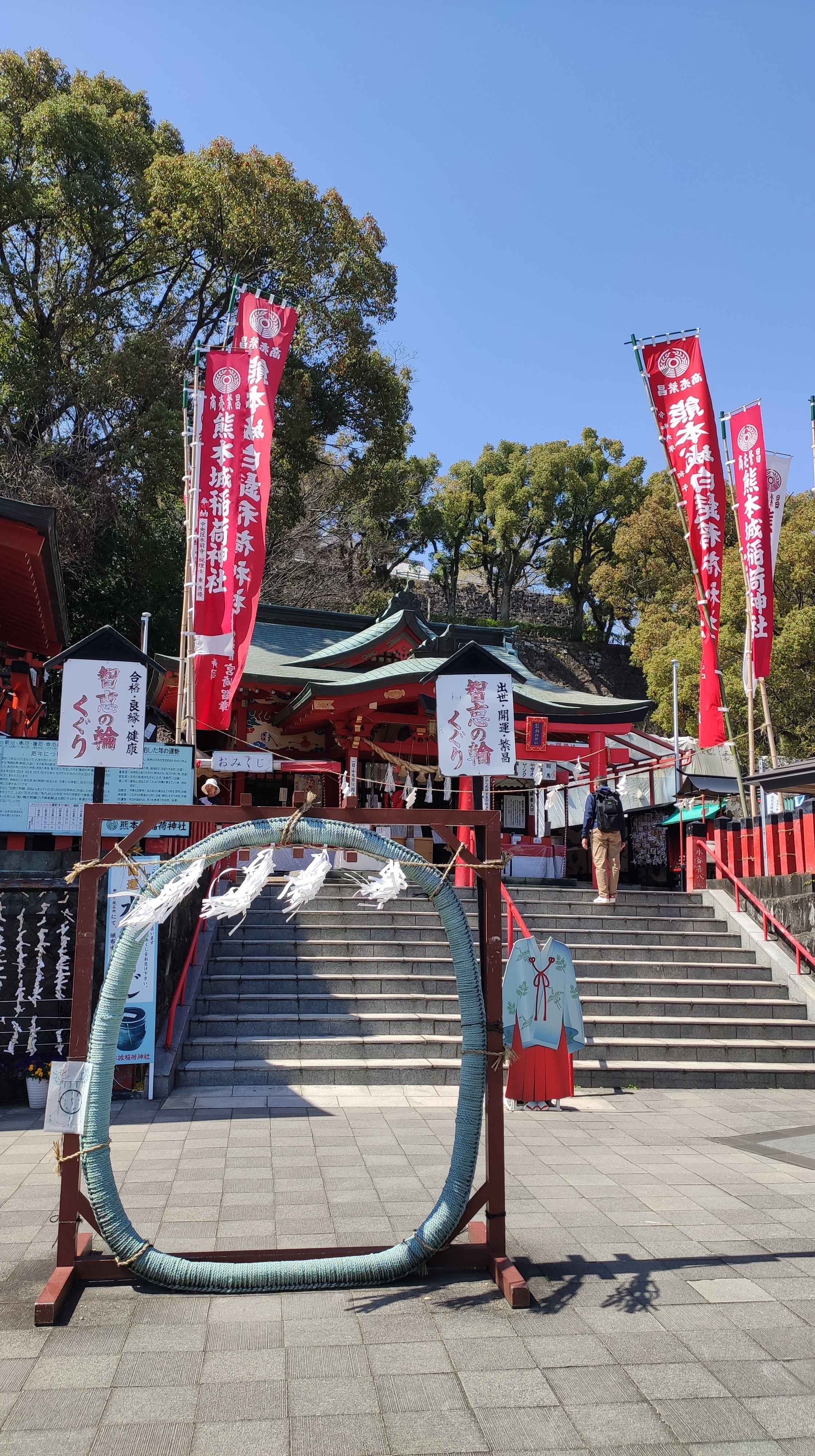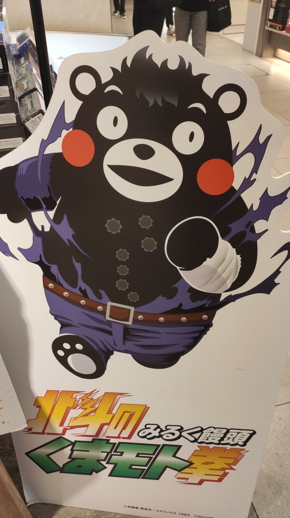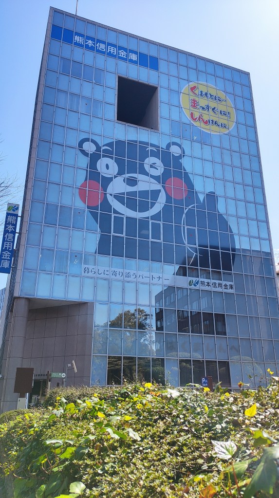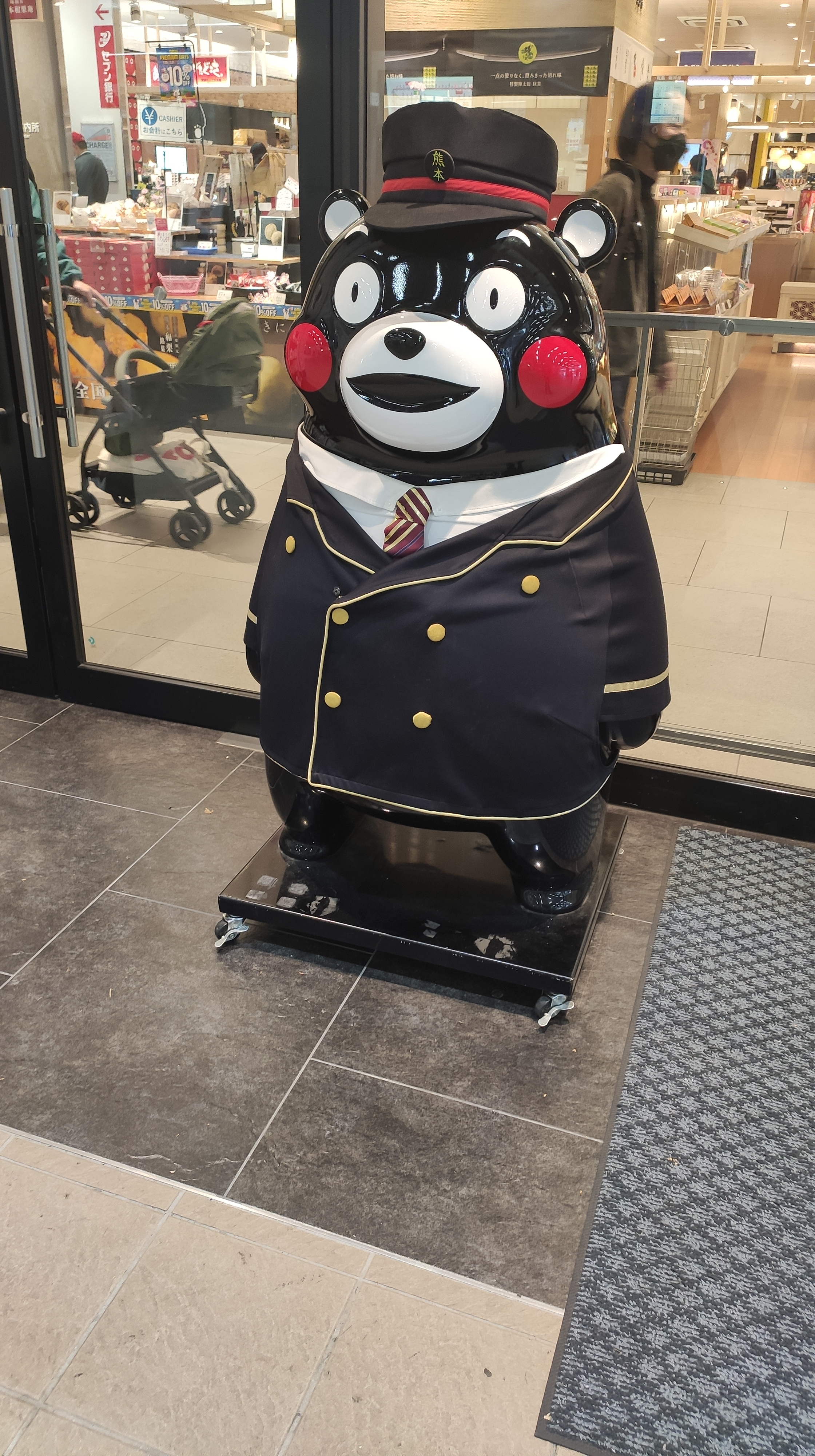Au fil de la journée j’ai régulièrement croisé Kumamon, la mascotte de la préfecture de Kumamoto (déjà rencontré quand j’étais passé il y a longtemps dans la ville de Kagoshima). C’est un ours enjoué avec les joues rouges. Est-ce parce qu’il pique un fard, a froid ou est bourré? Non, c’est le petit détail pour le rendre plus kawaii.