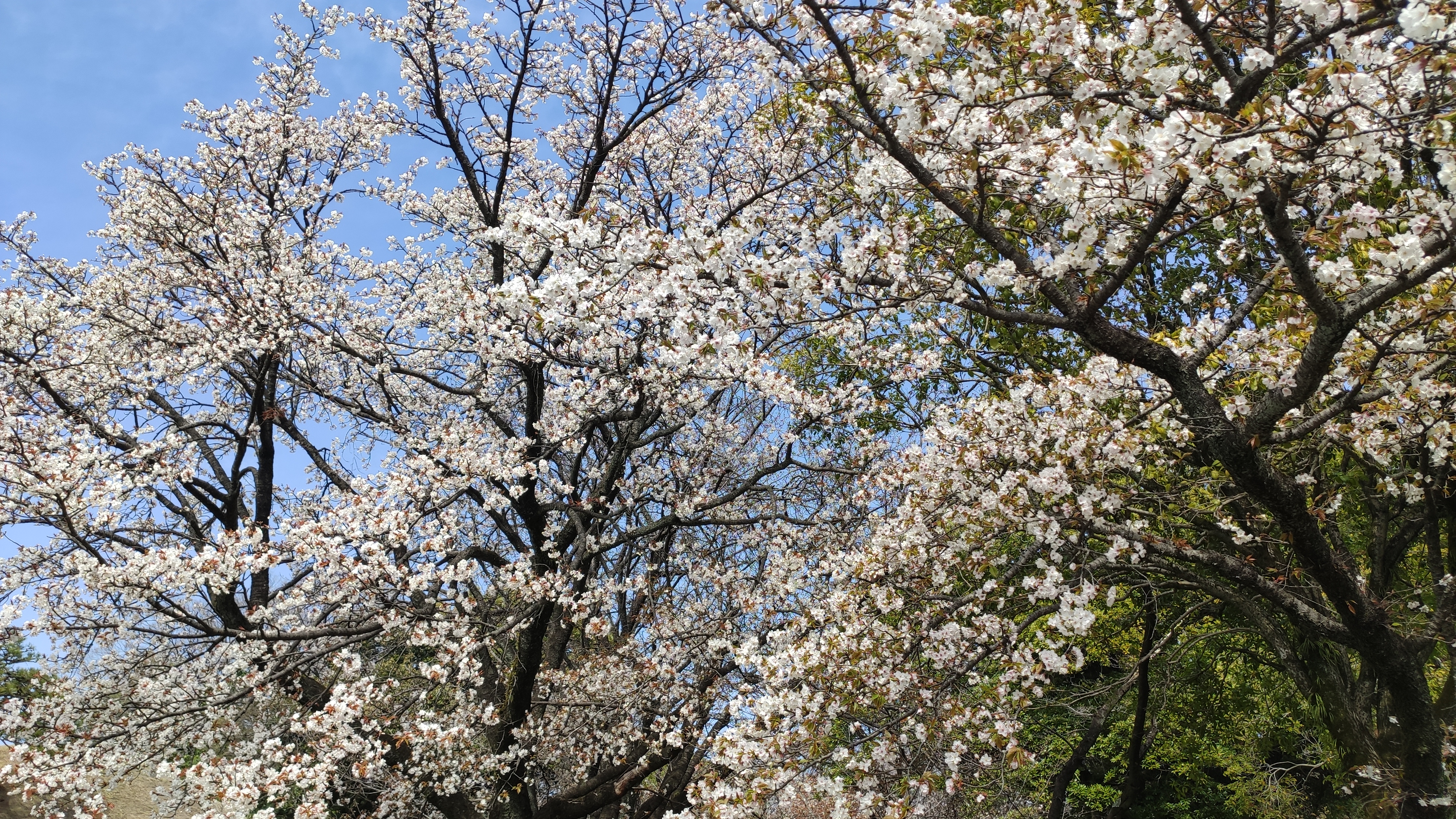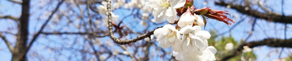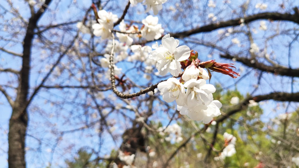 Quelques jolis cerisiers blancs sont en fleur, mais pas encore de sakura bien rose.
