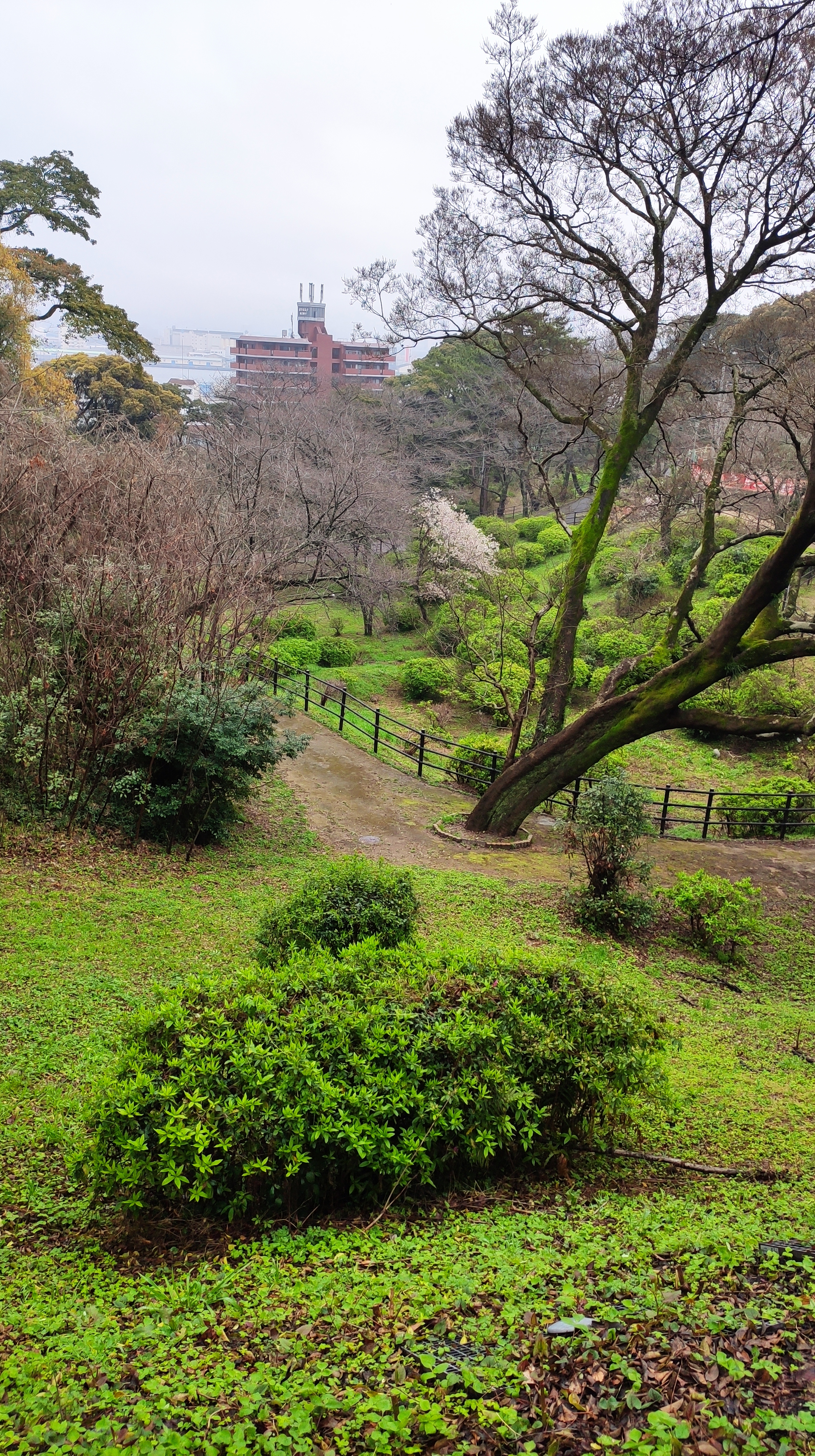L’expérience se déroulait dans un bâtiment collé au stade de baseball de l’équipe de la ville, pas loin de la tour de Fukuoka, perdue dans le brouillard et invisible malgré ses 234m. Ce n’est pas le bon jour pour admirer le paysage au loin. J’enquille alors 3 parcs de la ville.
