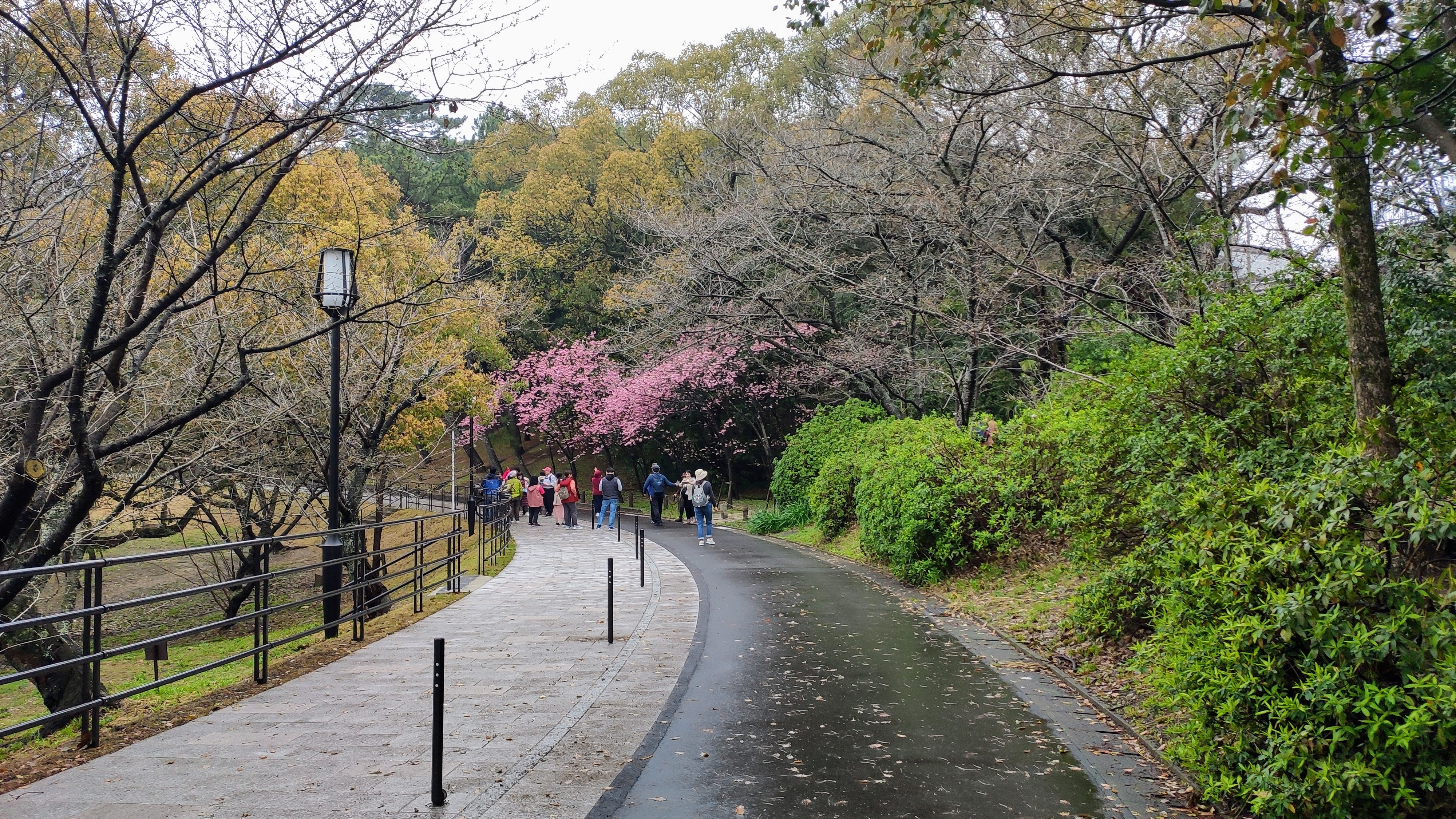 Enfin, le parc Maizuri, le plus grand, avec de grands espaces de promenade et des terrains de sport. A partir de dans 3 jours y est organisé un festival pour admirer les cerisiers en fleur. Ici aussi quelques arbres isolés ont de l’avance.