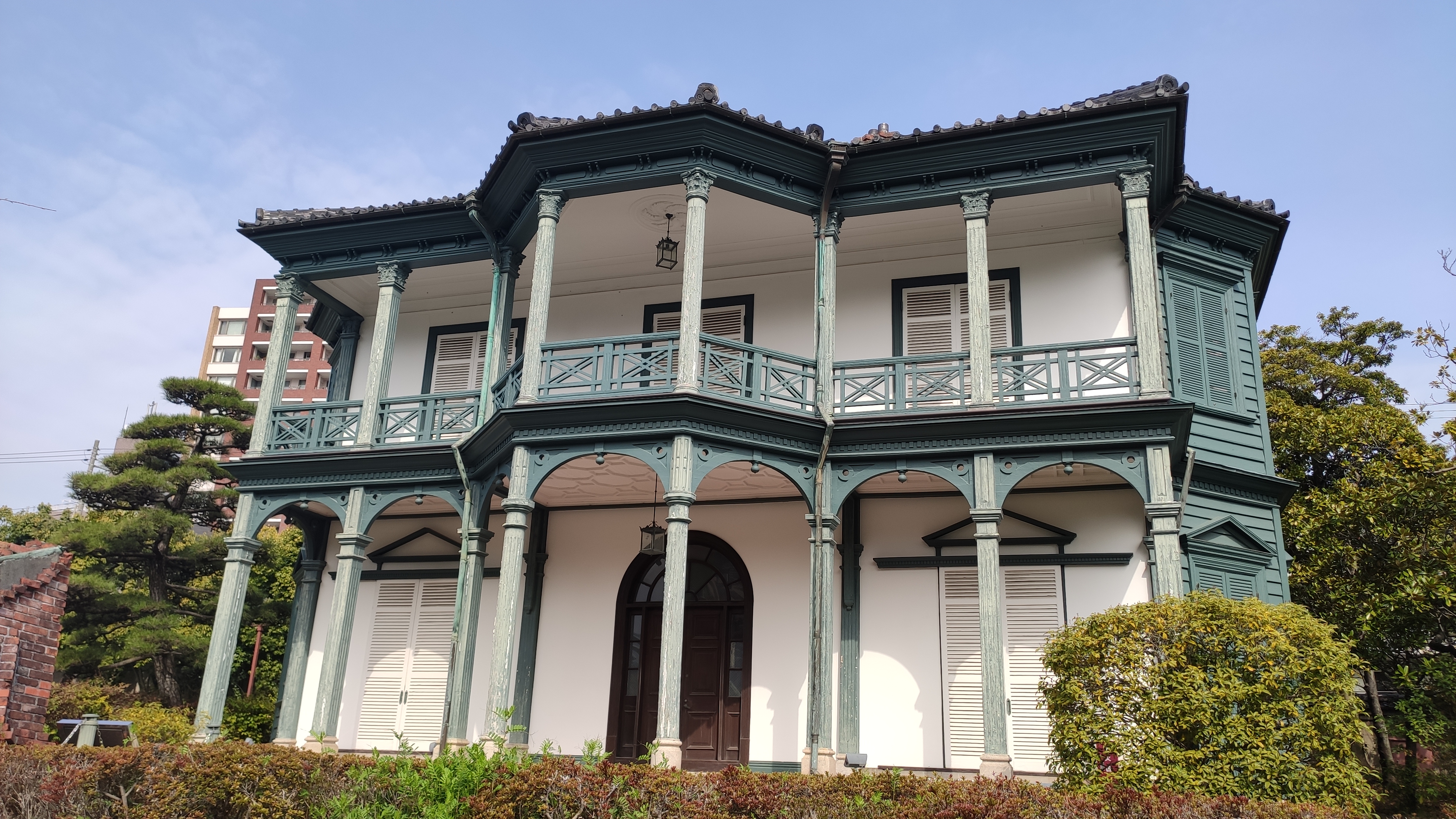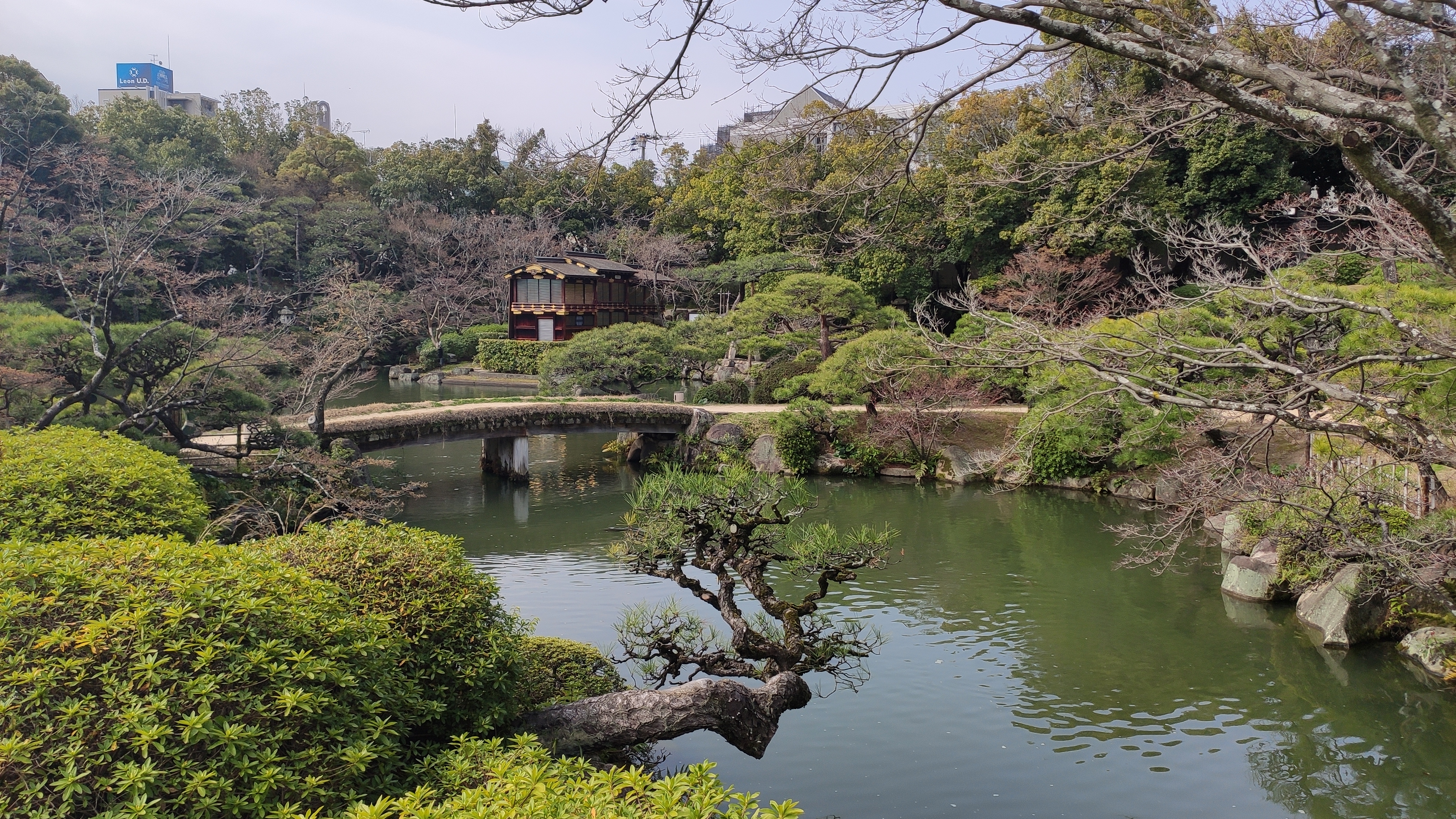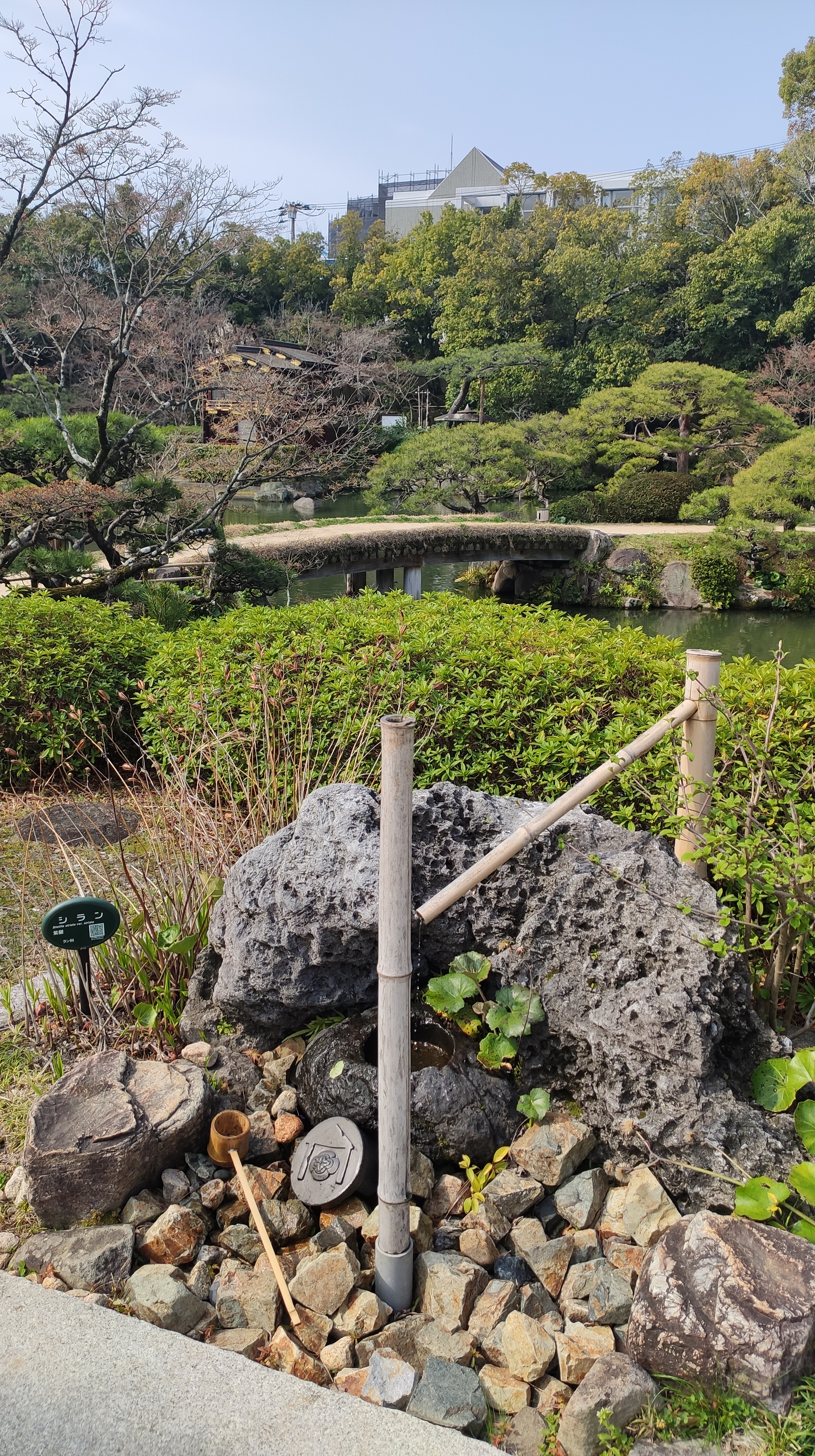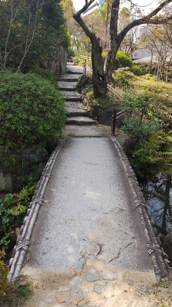 Le Sorakuen n’est pas très grand, pourtant à l’entrée on propose des pamphlets dans une douzaine de langues, dont le français. On me le remet en me disant “merci bonjour”. De rien. Il y a un grand bâtiment claaaaass à l’arrière où sont organisés des banquets, mariage, séminaire d’entreprise AVEC VUE. Le jardin était à l’origine sur le terrain d’un notable qui deviendra le maire de Kobe. Il y a quelques bâtiments de style européen (maison, étables).