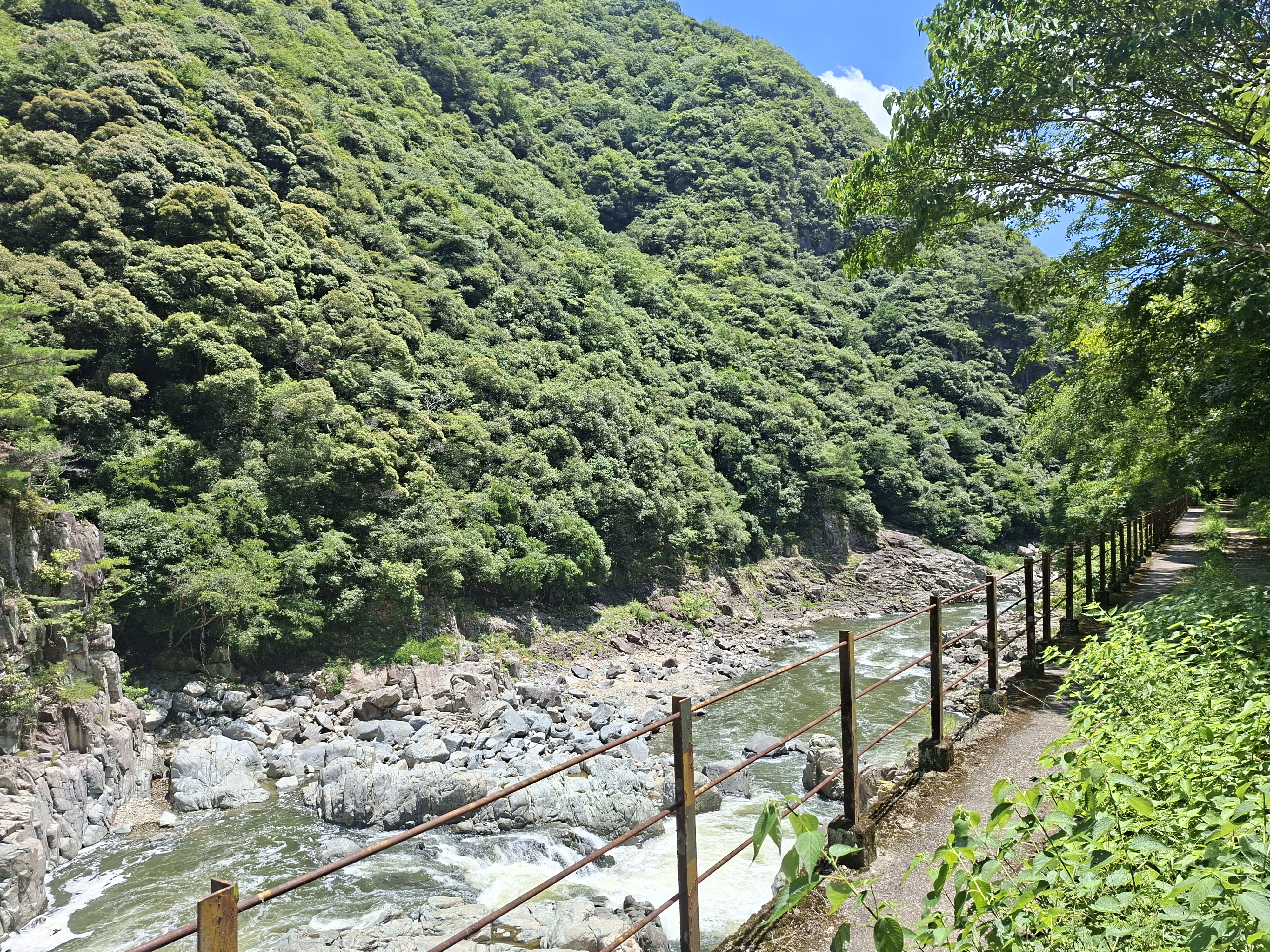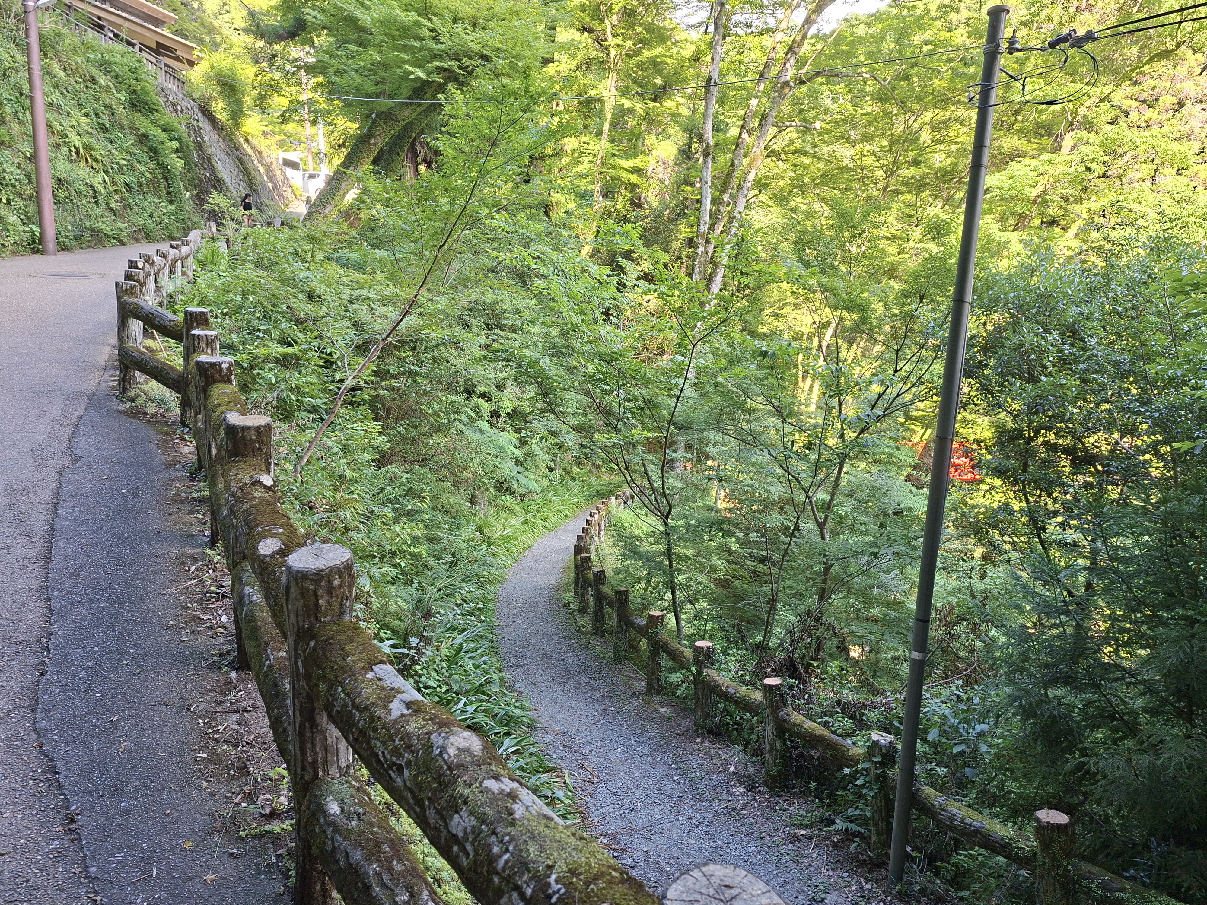 Nous enchainons deux trains pour aller ensuite au park Mino-o. Le chemin pour se rendre à la cascade du même nom évoque par moment le mont Takao, mais en beaucoup plus court et avec des inclinaisons acceptables. Il y a quelques autres promeneurs, mais ça ne se bouscule pas là non plus! La chaleur y est suportable, merci la forêt, merci les arbres, merci la vie.