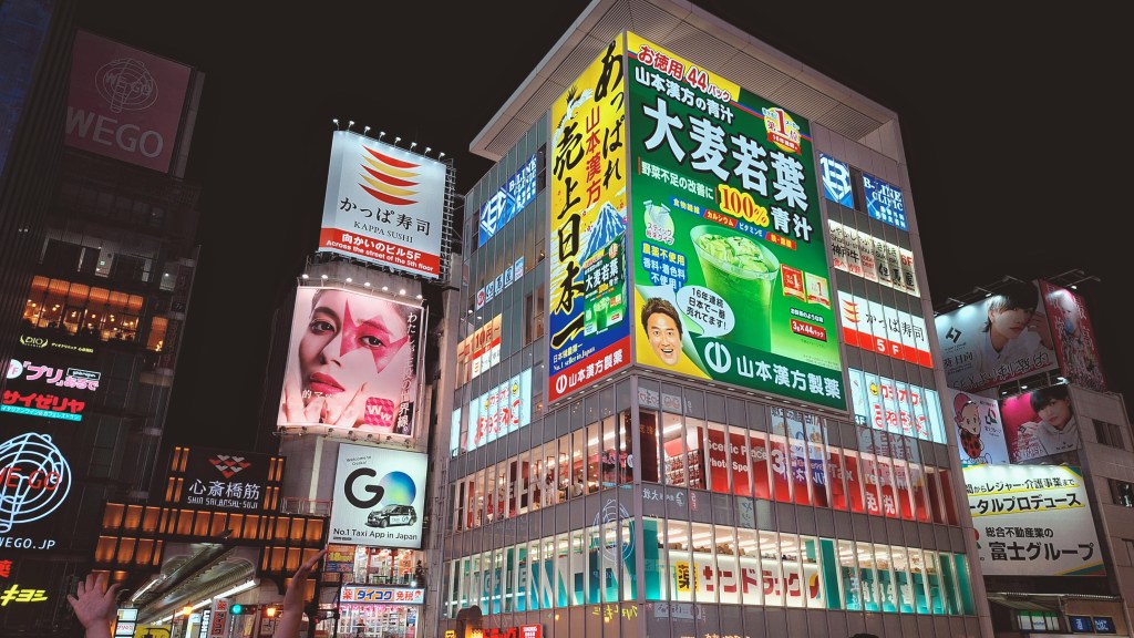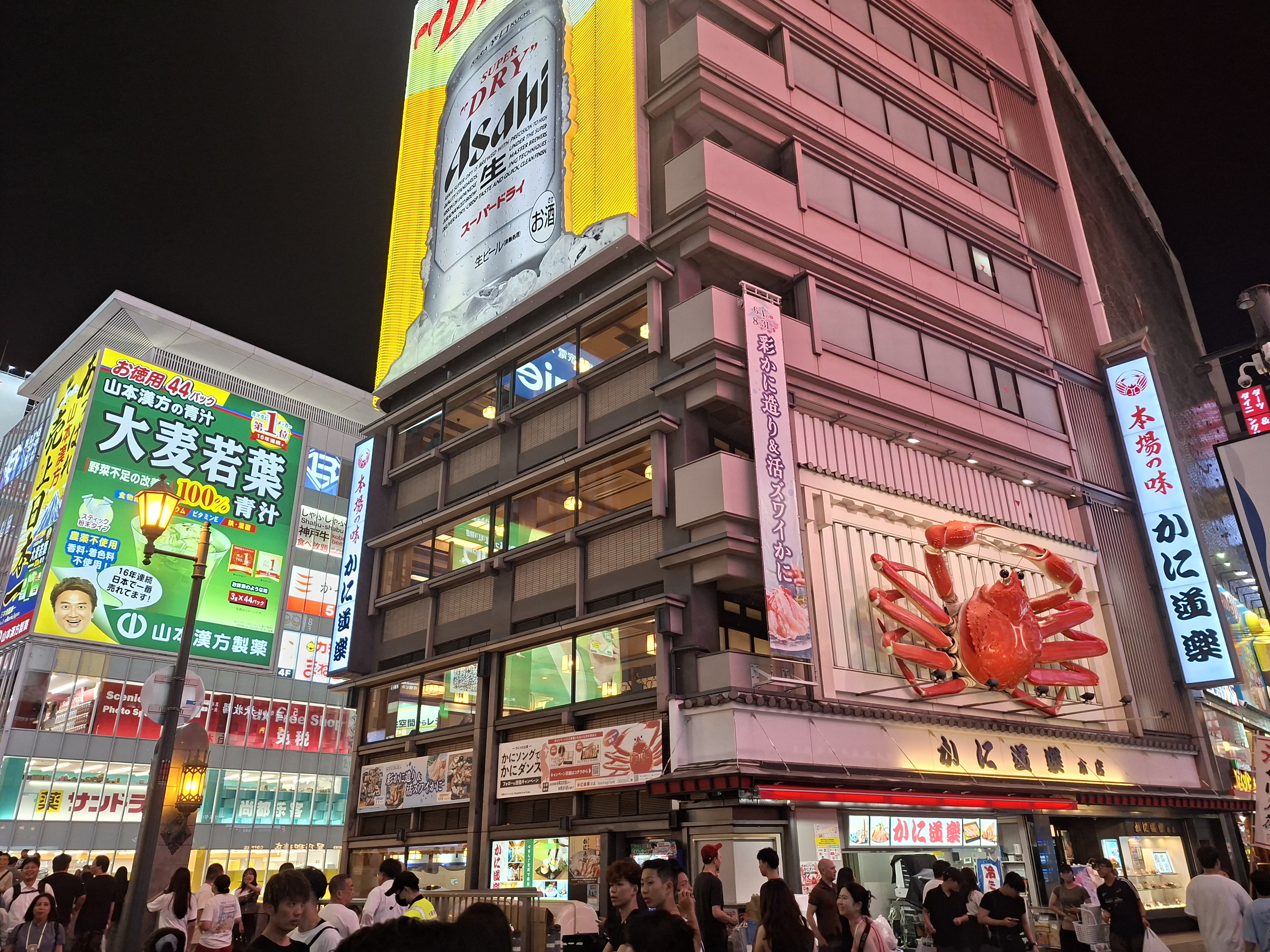 Bien qu’on ait marché toute la journée, Emma ne se fait pas prier pour qu’on aille en sortant du restaurant faire un tour de nuit dans le quartier de Dotonbori, célèbre pour ses rues et ses canaux animés et vibrants à ce moment de la journée. Un peu l’impression d’être dans un jeu de la franchise Yakuza/Ryu ga Gotoku.