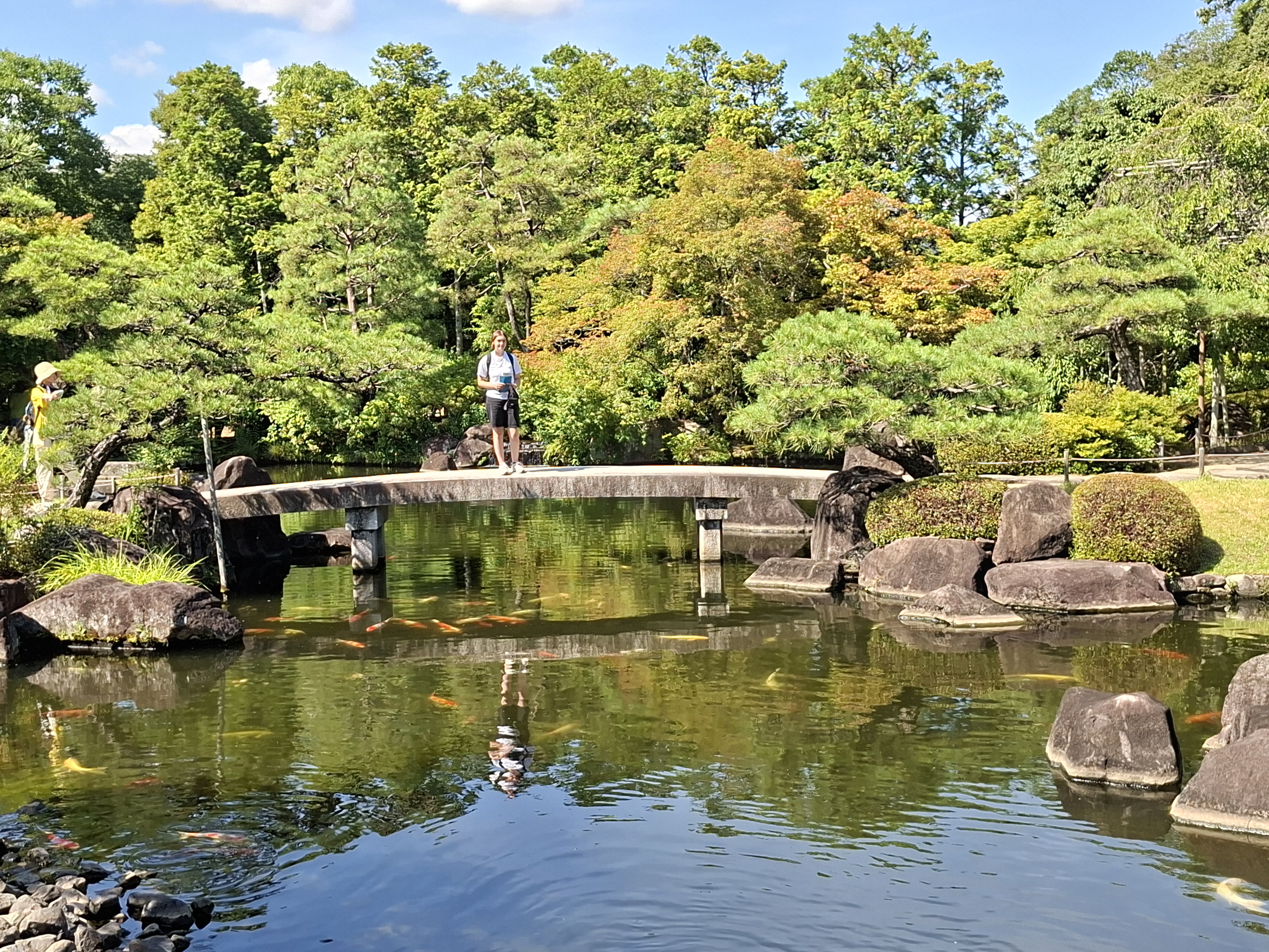 Ce jardin japonais est assez vaste, moins flambloyant qu’en automne, mais c’est la saison pour les fleurs de lotus et de nénuphar! A noter, quelques squatteurs de gloriette. Mais que fais la police? Ah oui, des selfies.
