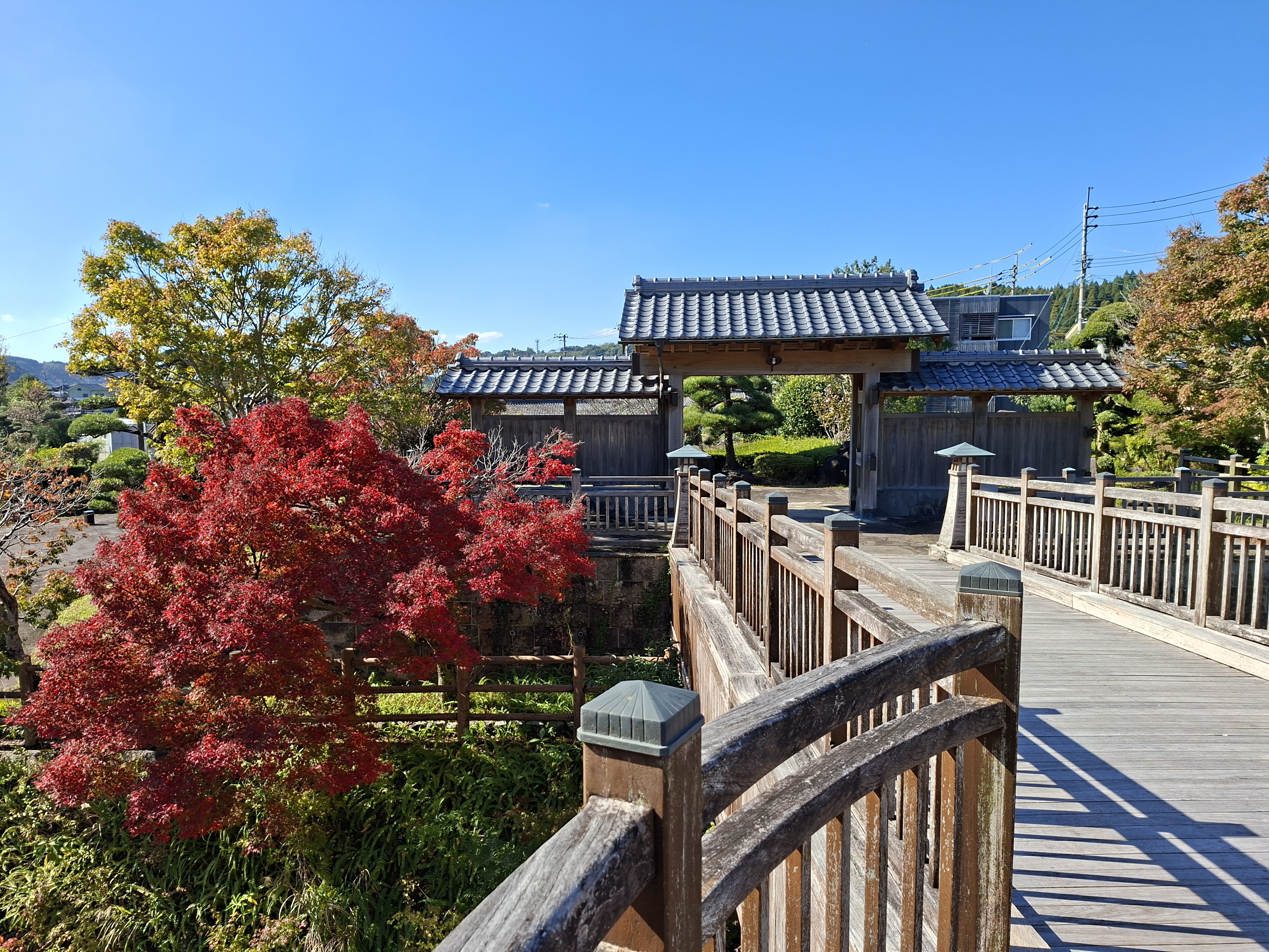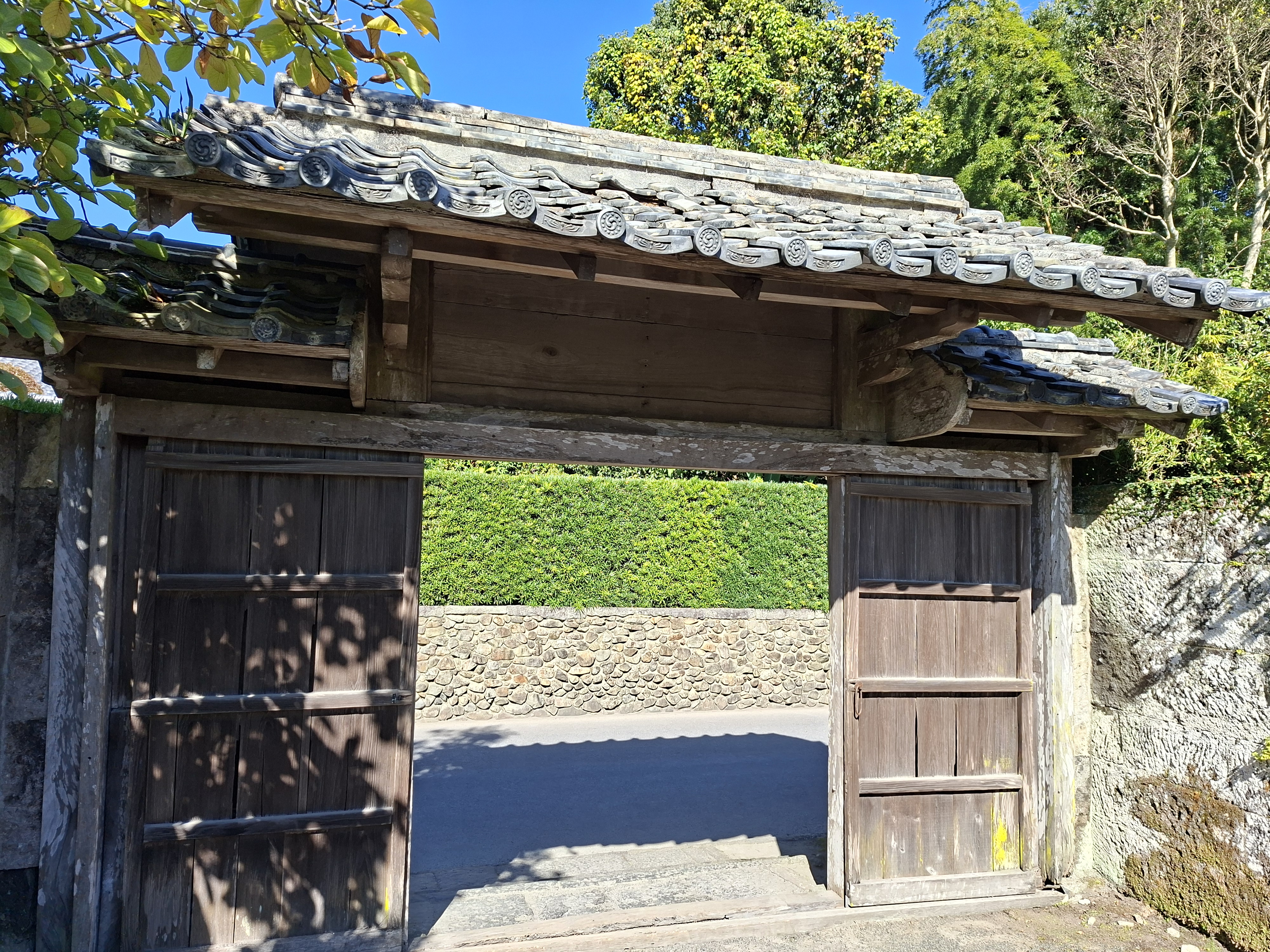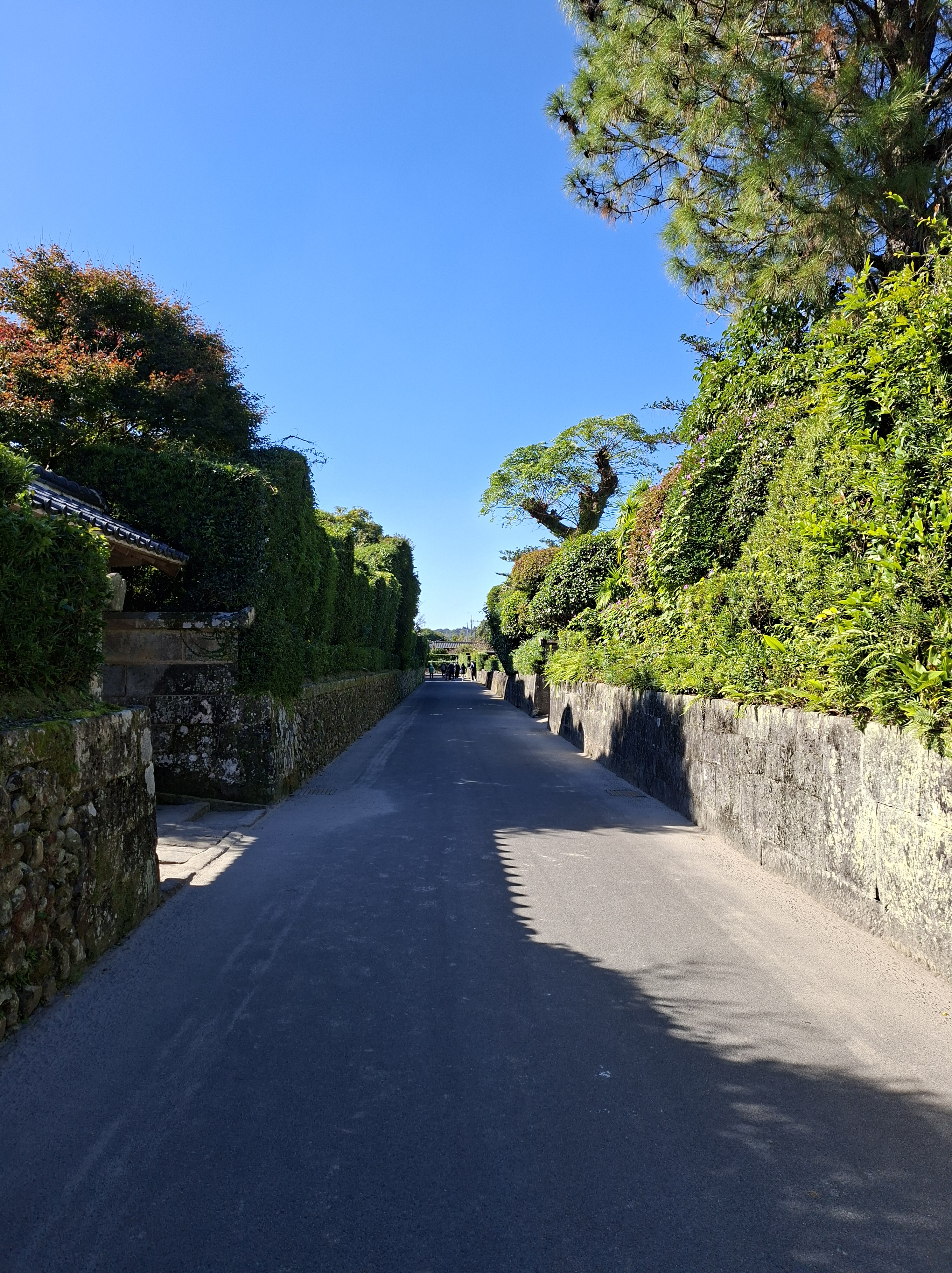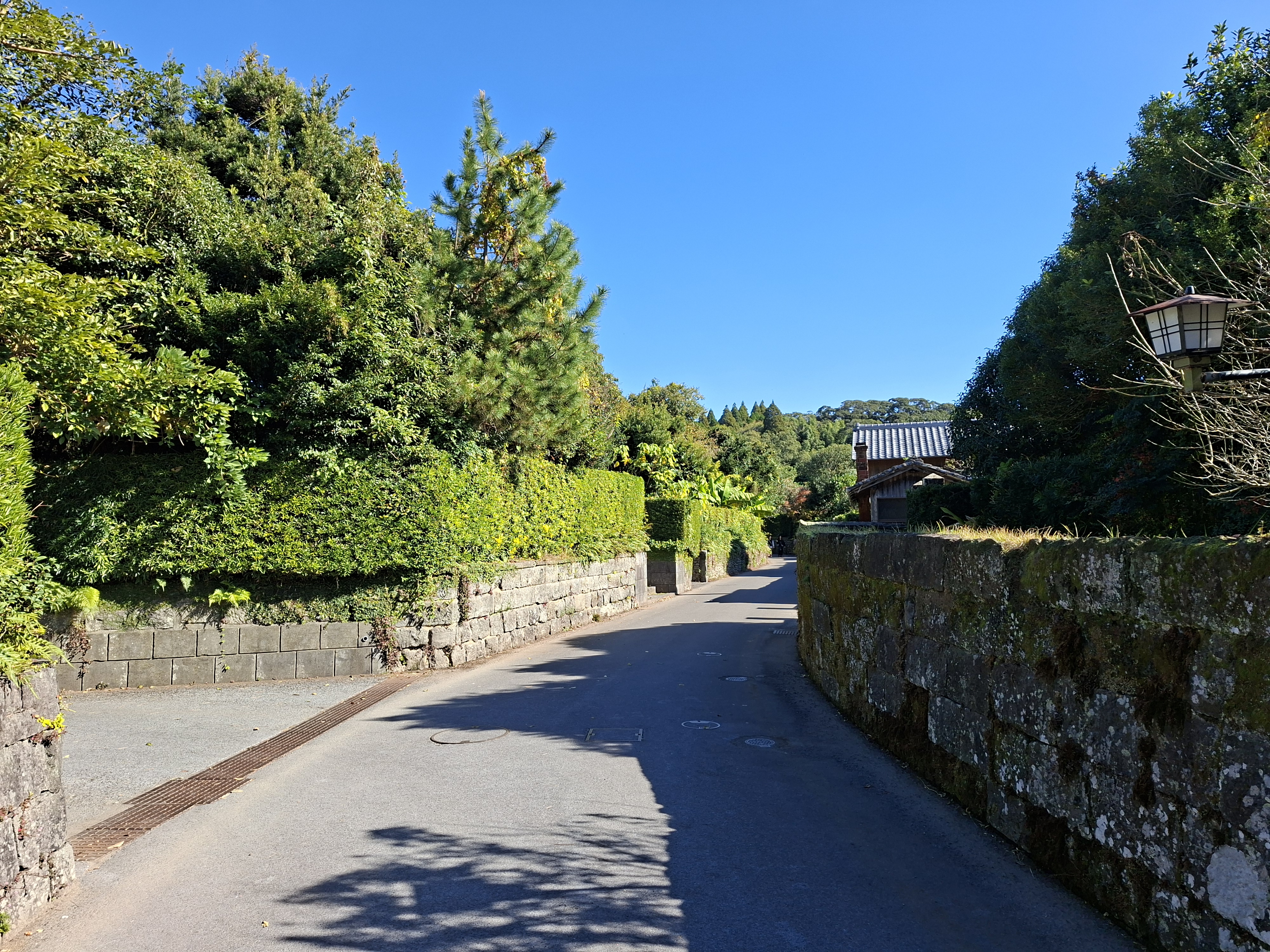Je m’arrête, comme de nombreux passagers, à l’arrêt Buke Yashiki Iriguchi-Mae -celui-là faut prendre sa respiration avant de le tenter- proche d’un quartier d’anciennes résidences de samurais. Sa rue principale, charmante et essentiellement piétonne, sépare des maisons d’époque. Elles possèdent de beaux jardins, parfois ouverts aux visiteurs. Cela me rappelle en plus vieux le quartier des bonsais à Saitama, que j’avais découvert avec ma reum il y a 2 ans.