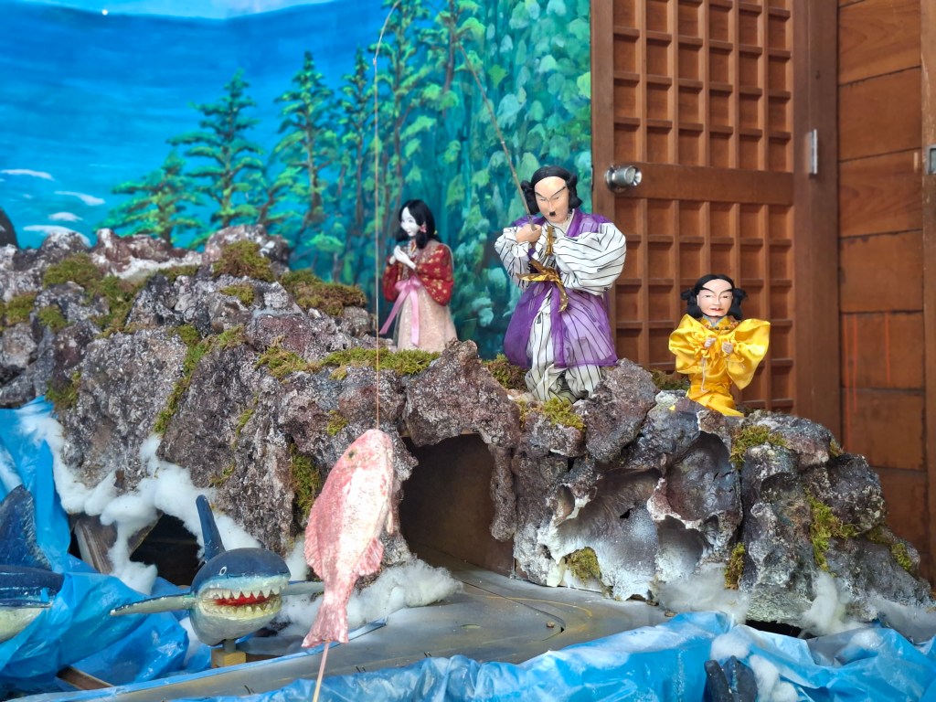 Je vais ensuite au Toyotama-Hime Jinja, un petit sanctuaire shintô avec dans son enceinte un théâtre de poupées mécaniques, appelées karakuri, qui sont utilisées à l’occasion de festivaux estivals. Ça a l’air formidable à voir dans ce cadre.