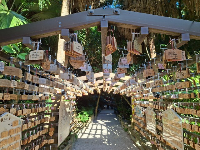 J’aime particulièrement une arche en bois à laquelle sont accrochées les plaquettes (Ema) customisées par les fidèles et ceux qui trouvent juste ça joli ou poétique.