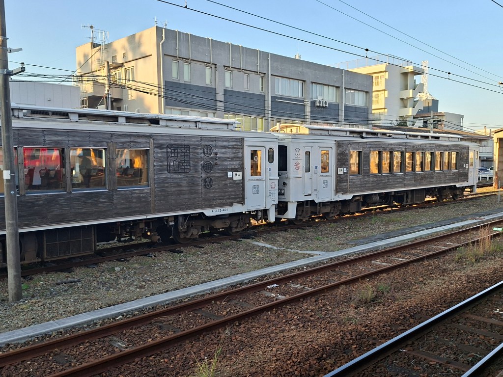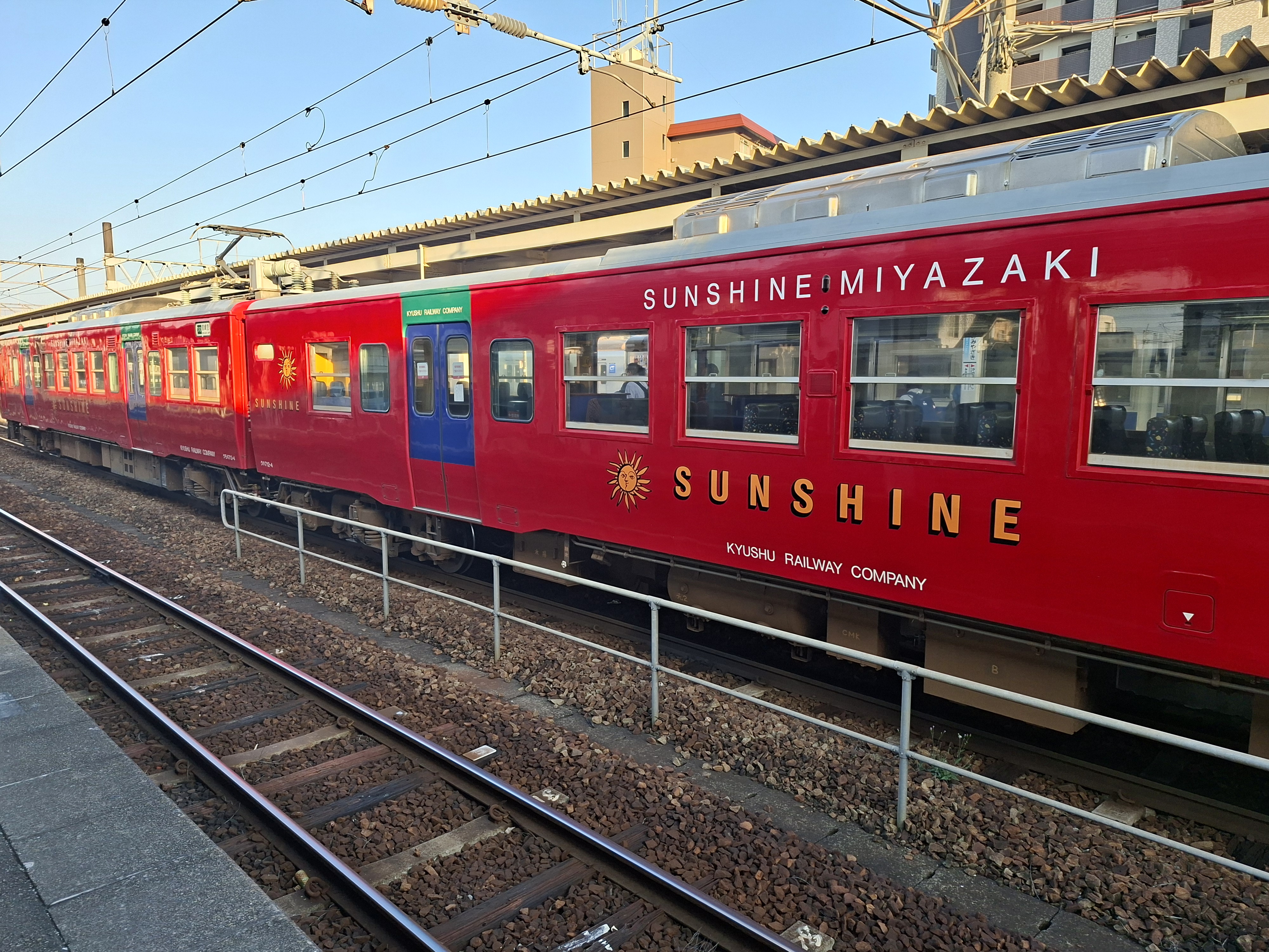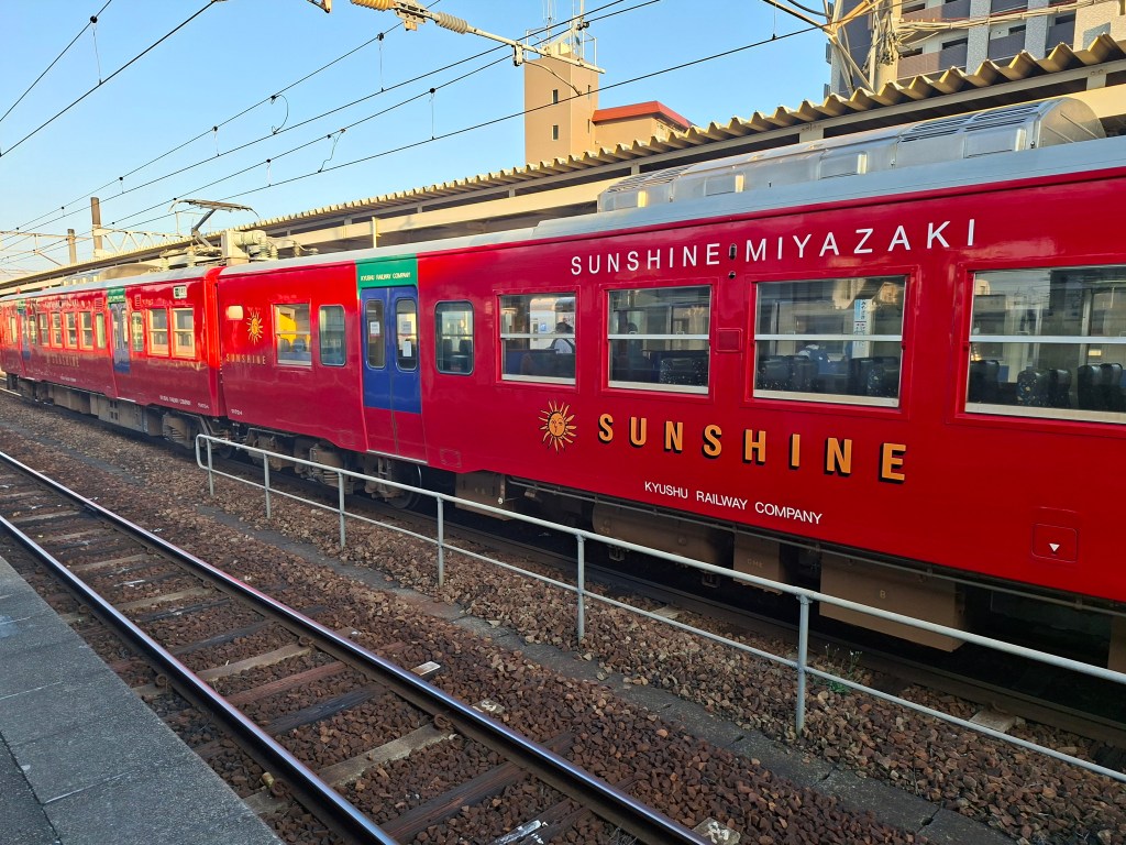 Une belle et originale première journée dans la préfecture de Miyazaki, remplie de soleil et de couleurs. Et de trains, car en passant par la gare de Minami-Miyazaki j’en vois d’originaux. Celui de ce matin aussi avait de la gueule, tout noir.