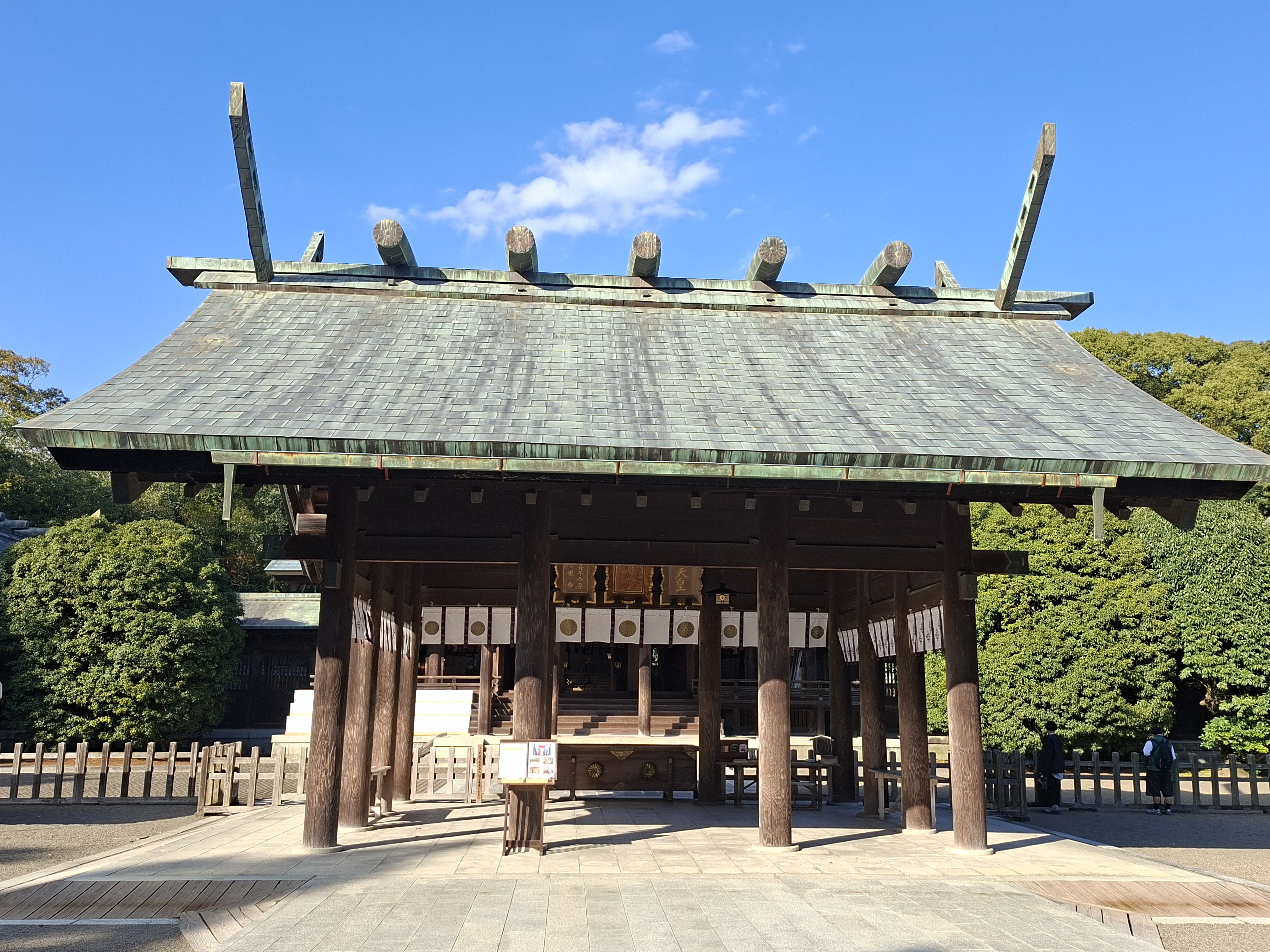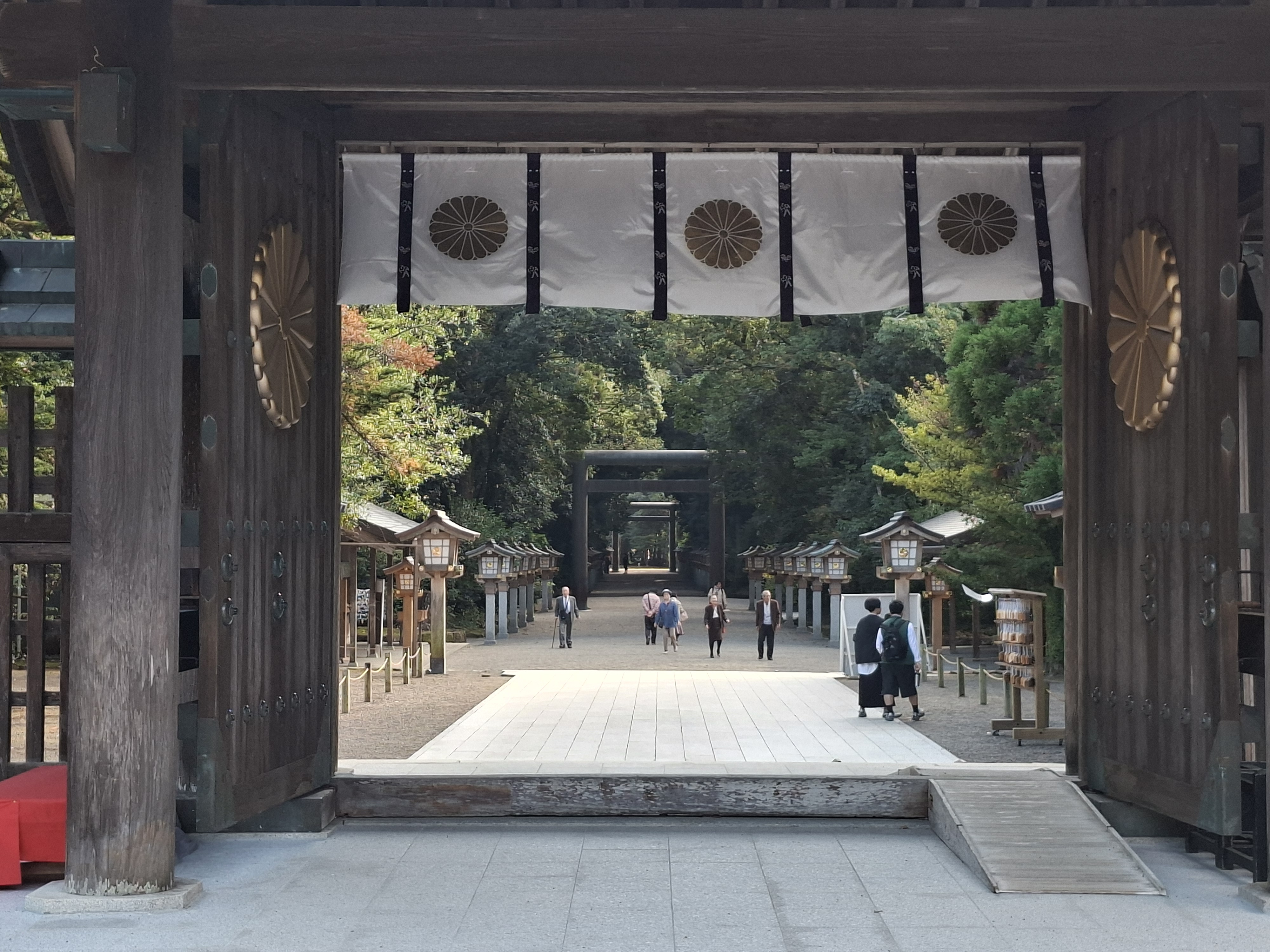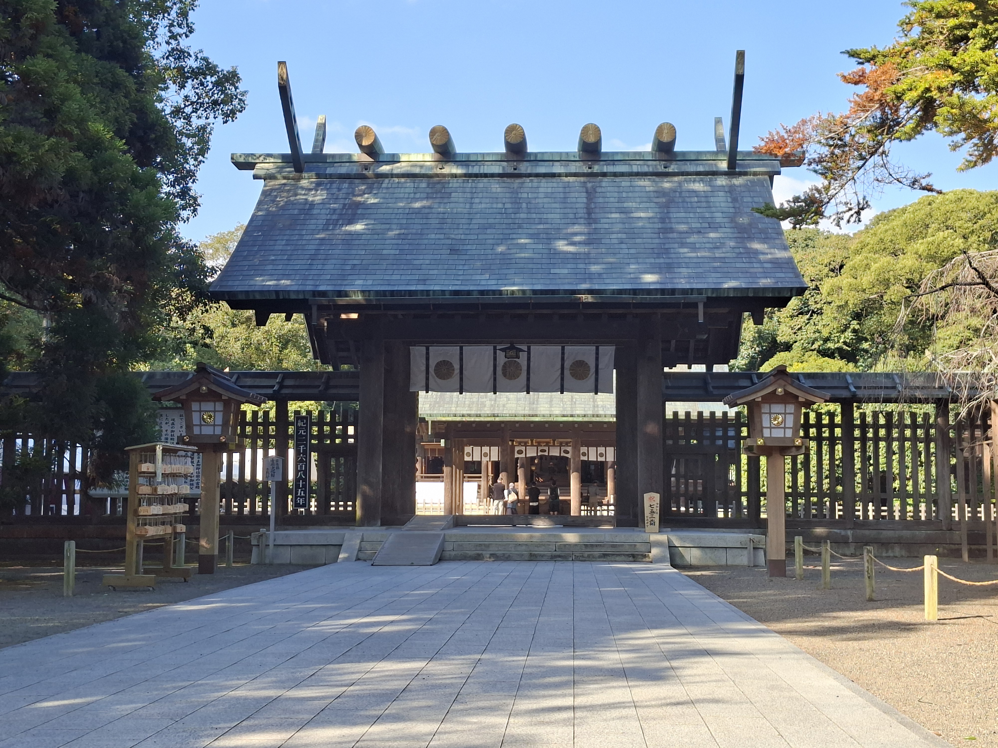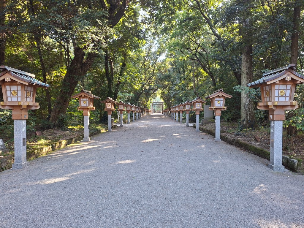 C’est un temple calme, dans un parc densément boisé isolant l’endroit des bruits de circulation. De grandes lanternes délimitent les allées, qui ont de grands toriis en point de fuite.