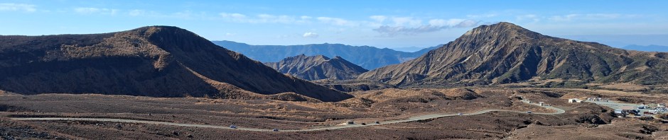 On a une impression assez vertigineuse en arrivant au Nakadake, visuellement on réalise que les montagnes distantes forment un cercle tout autour de nous, délimitant une zone qui s’est effondrée lors d’une éruption. C’est ça une caldeira (mais je ne suis pas un spécialiste du tout).