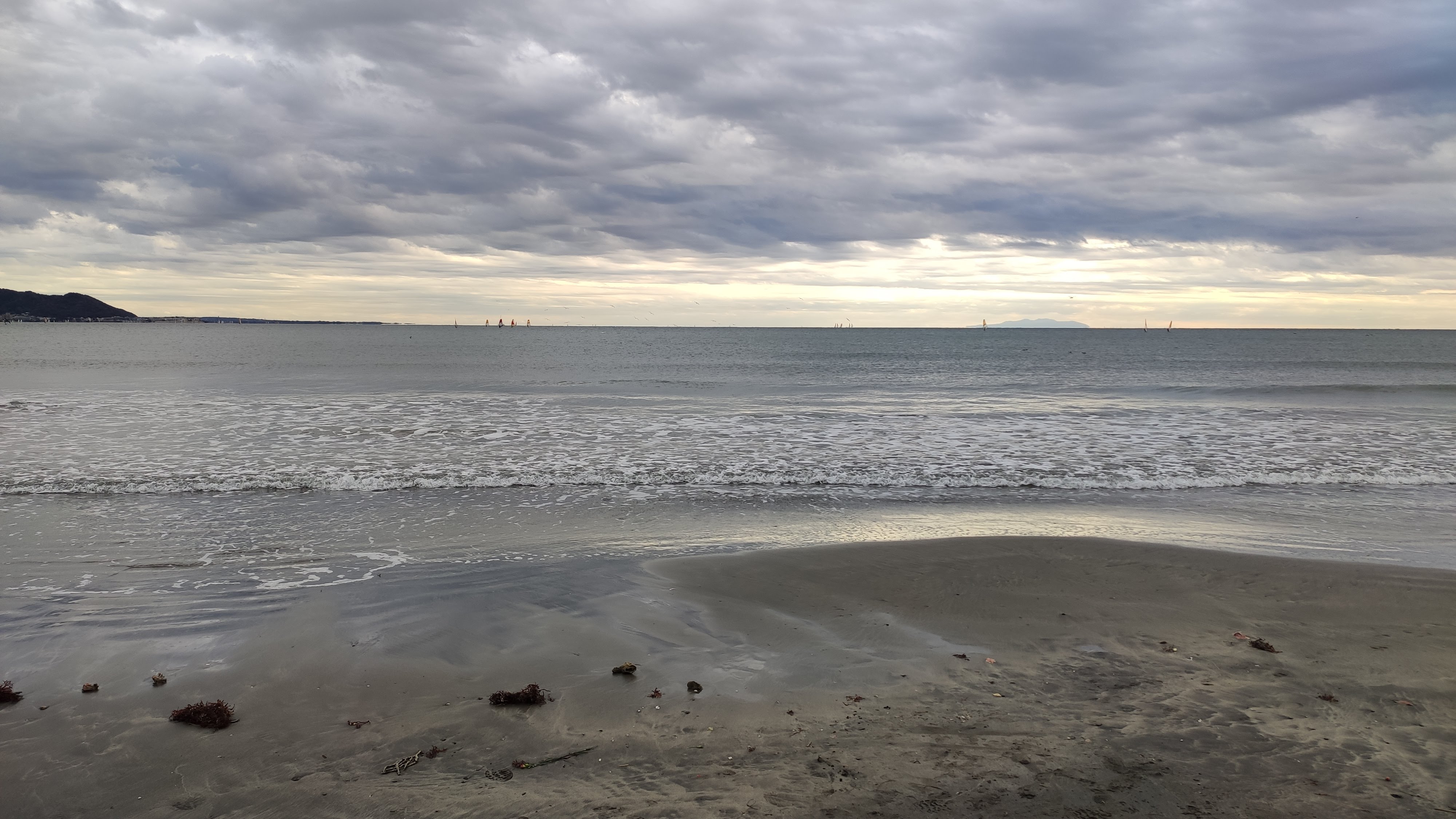La plage est bien moins fréquentée que cet été. Pas une serviette sur le sable, pas un baigneur. Uniquement, plus loin, des surfistes et des véliplancheurs.