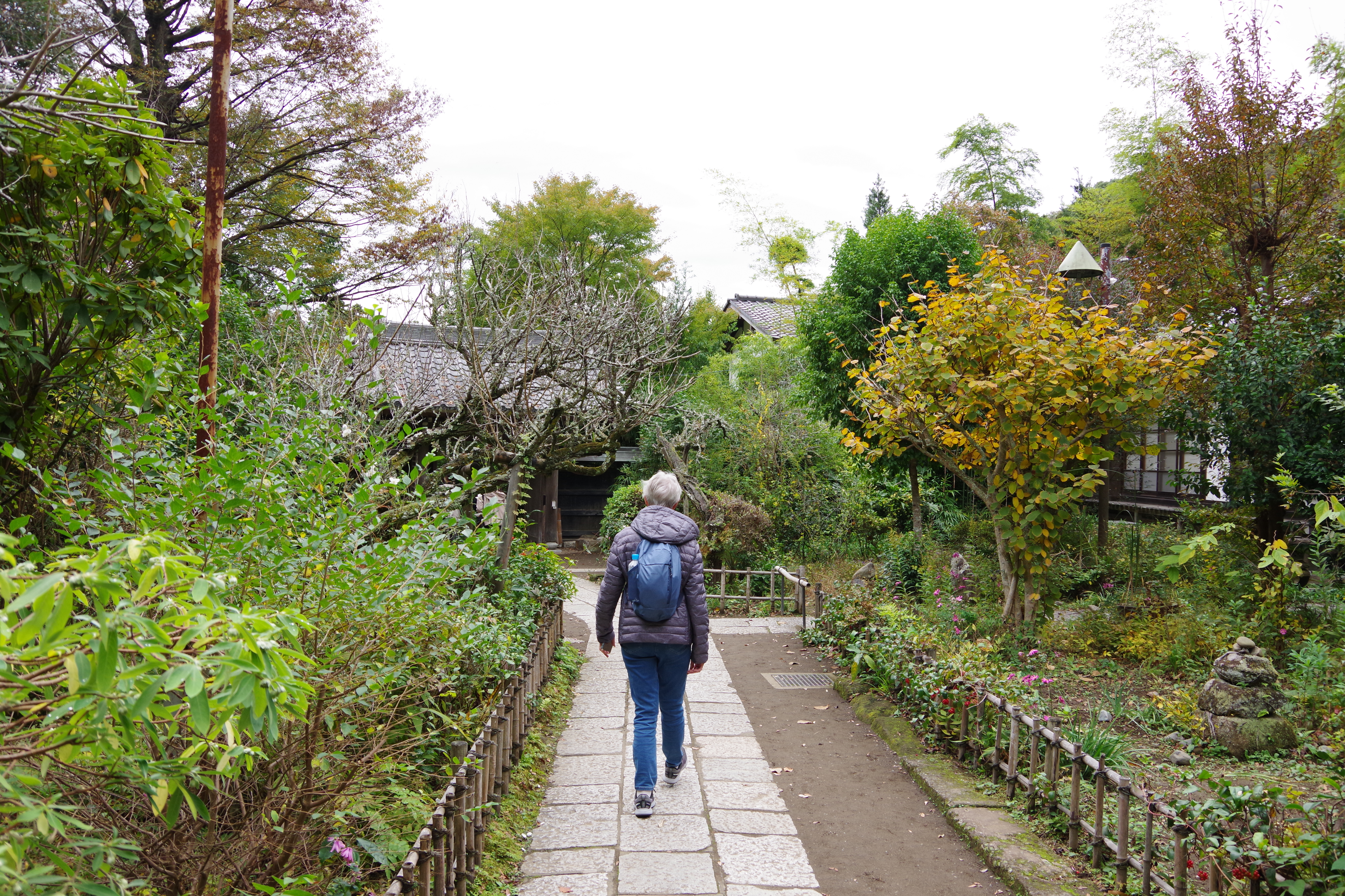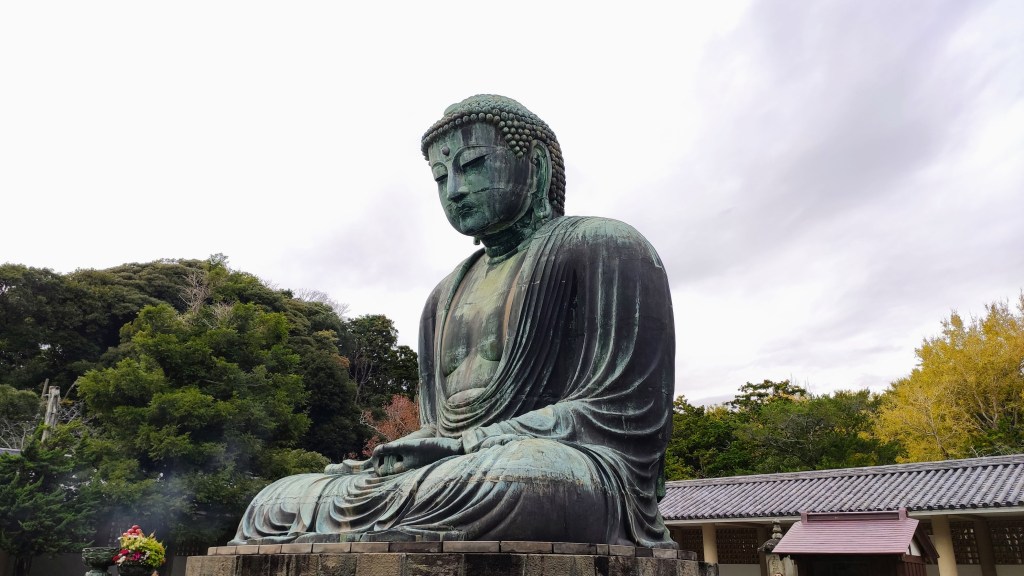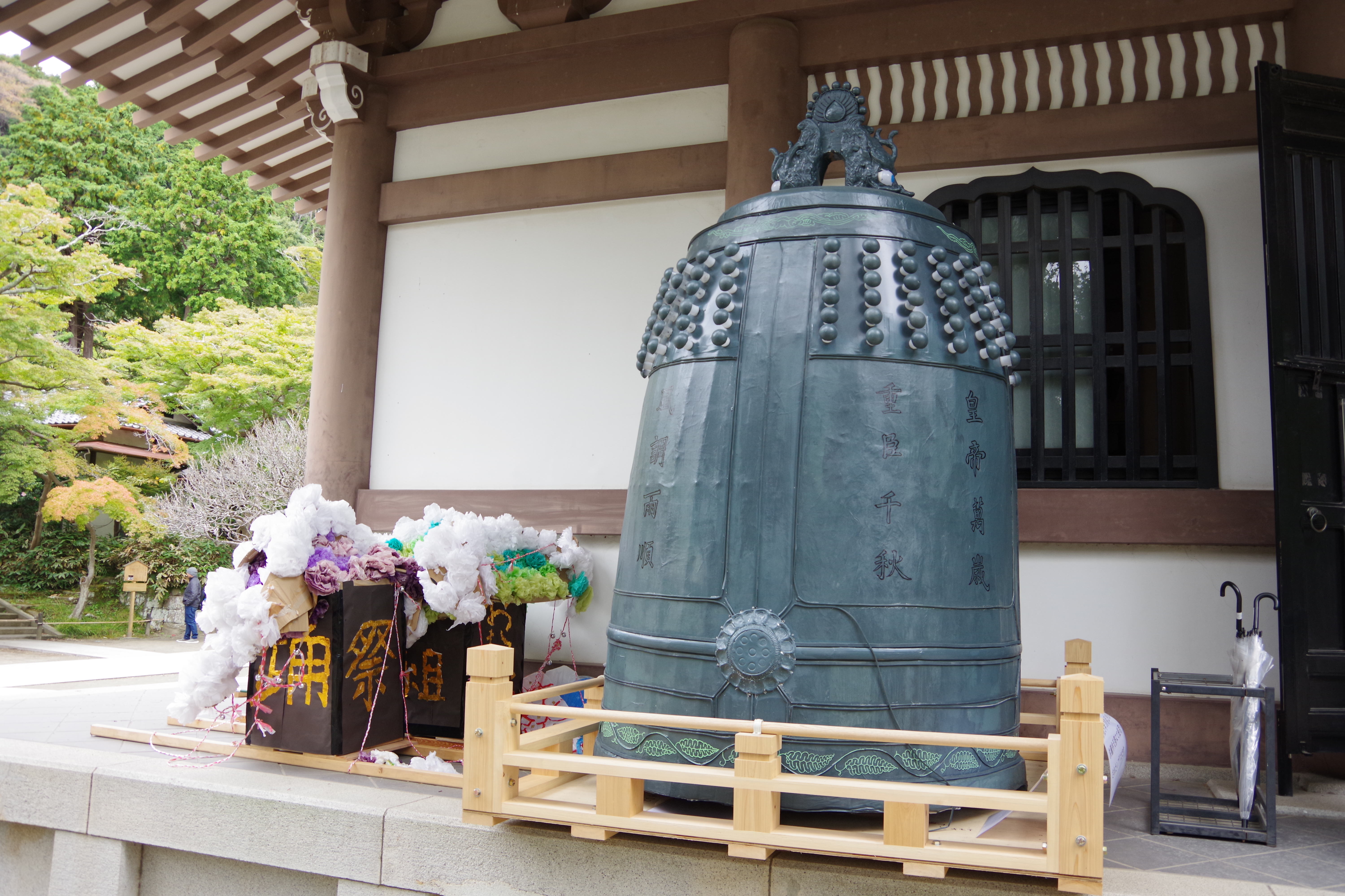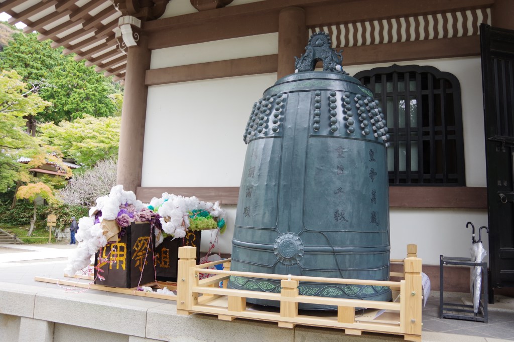 Nous descendons au nord de la ville, avant la gare principale, tout près du grand temple bouddhiste Engaku-ji. Une vieille et imposante porte en bois démarque comme d’habitude l’entrée du complexe. Il est composé de nombreux autels, jardins et bâtiments. Nous nous déchaussons temporairement, en empruntant des mules taille 36 mise à notre disposition, pour progresser sur le parquet en vieux bois.