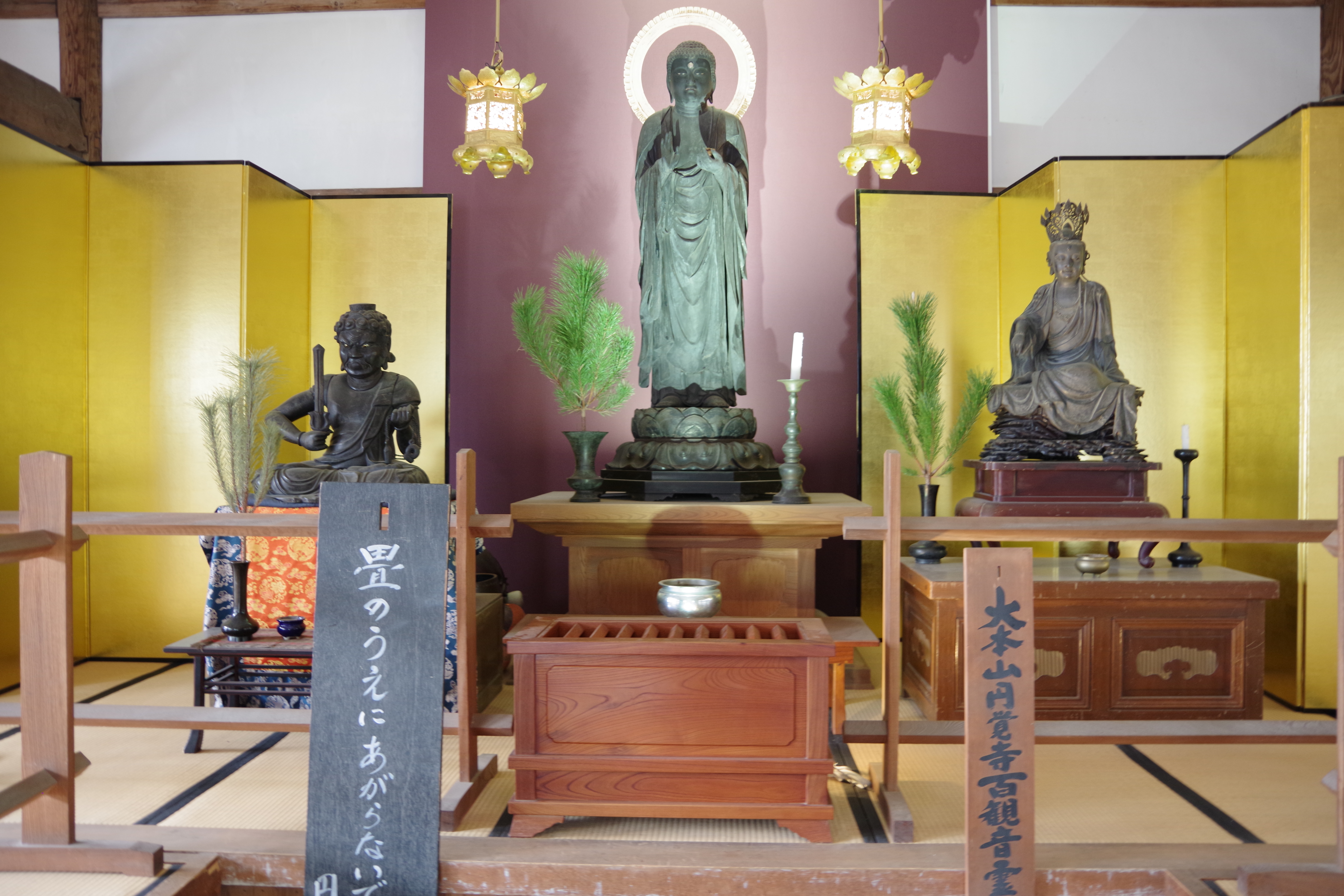 Une salle de prière est également ouverte au public, pour prier donc ou juste admirer l’autel. Il y a un salon de thé pour qui aurait envie de quelque chose de plus élaboré qu’une canette de soda ou d’eau plate. Une caverne expose d’autres statues, à la lueur de bougies. Il y en a 88, une pour chaque temple du pèlerinage sur l’île de Shikoku.