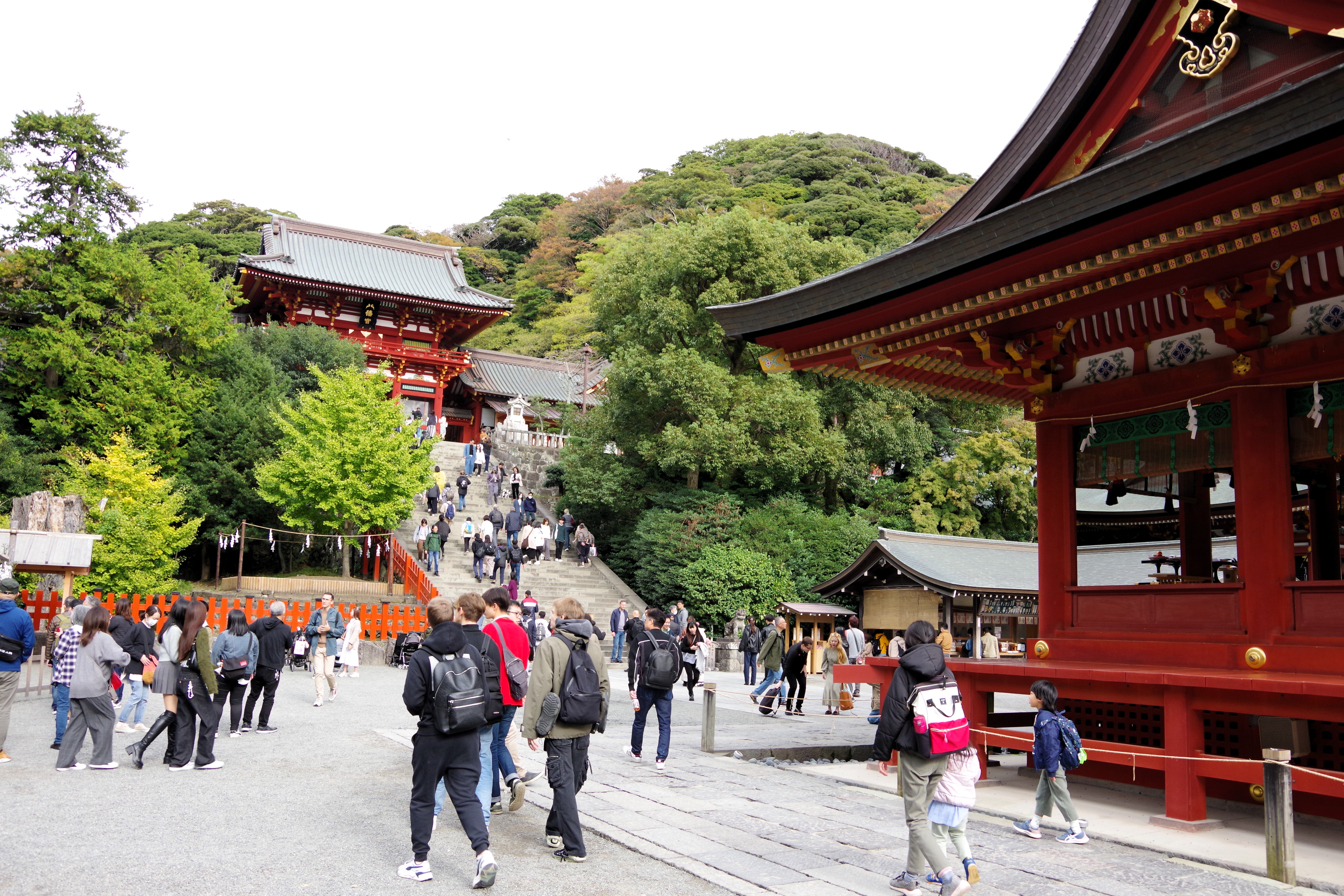 Nous traversons le Tsurugaoka Hachimangû, grand sanctuaire shintô. Un ilôt d’animisme en plein cœur de Kamakura, surtout connu pour ses nombreux temples bouddhistes. On l’appelle pas la petite Kyôto pour rien.